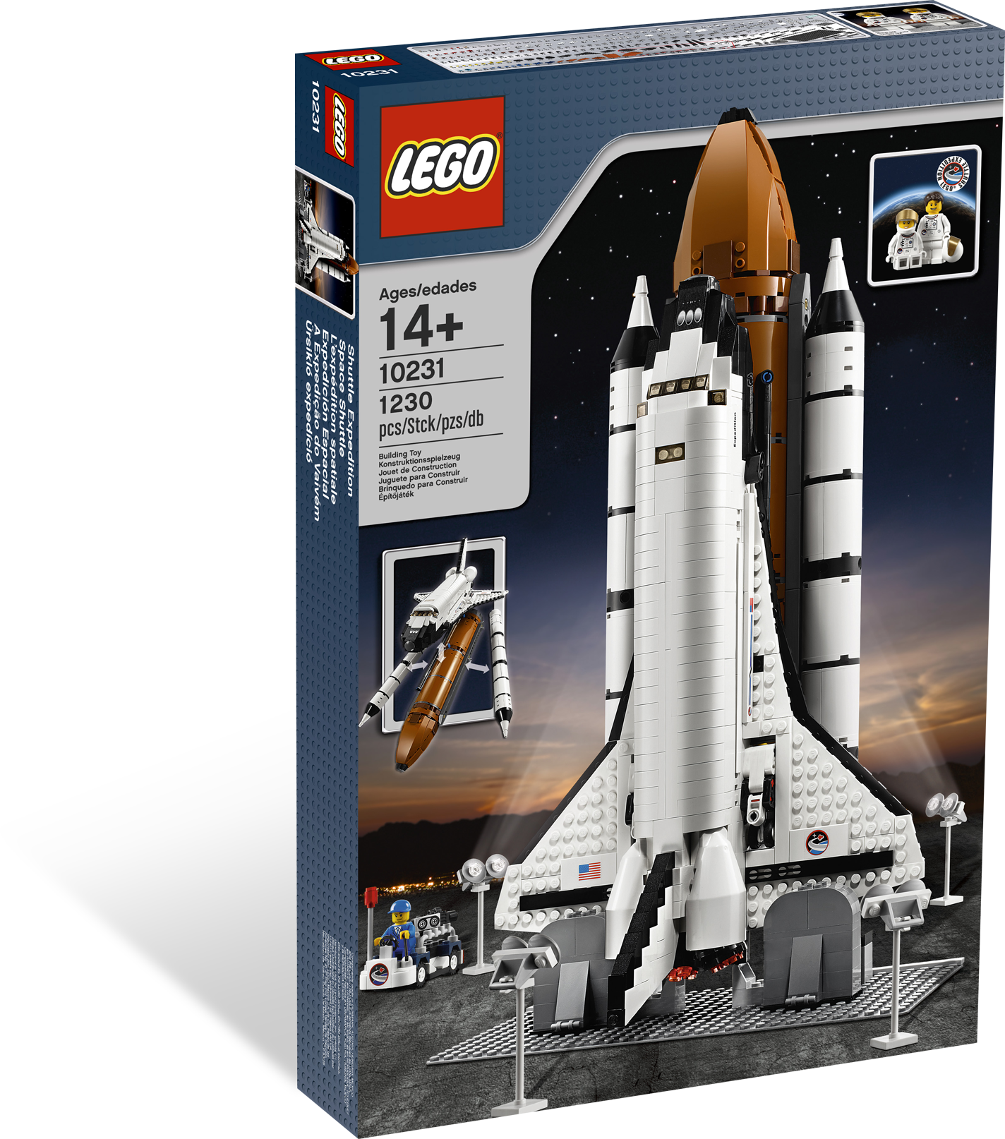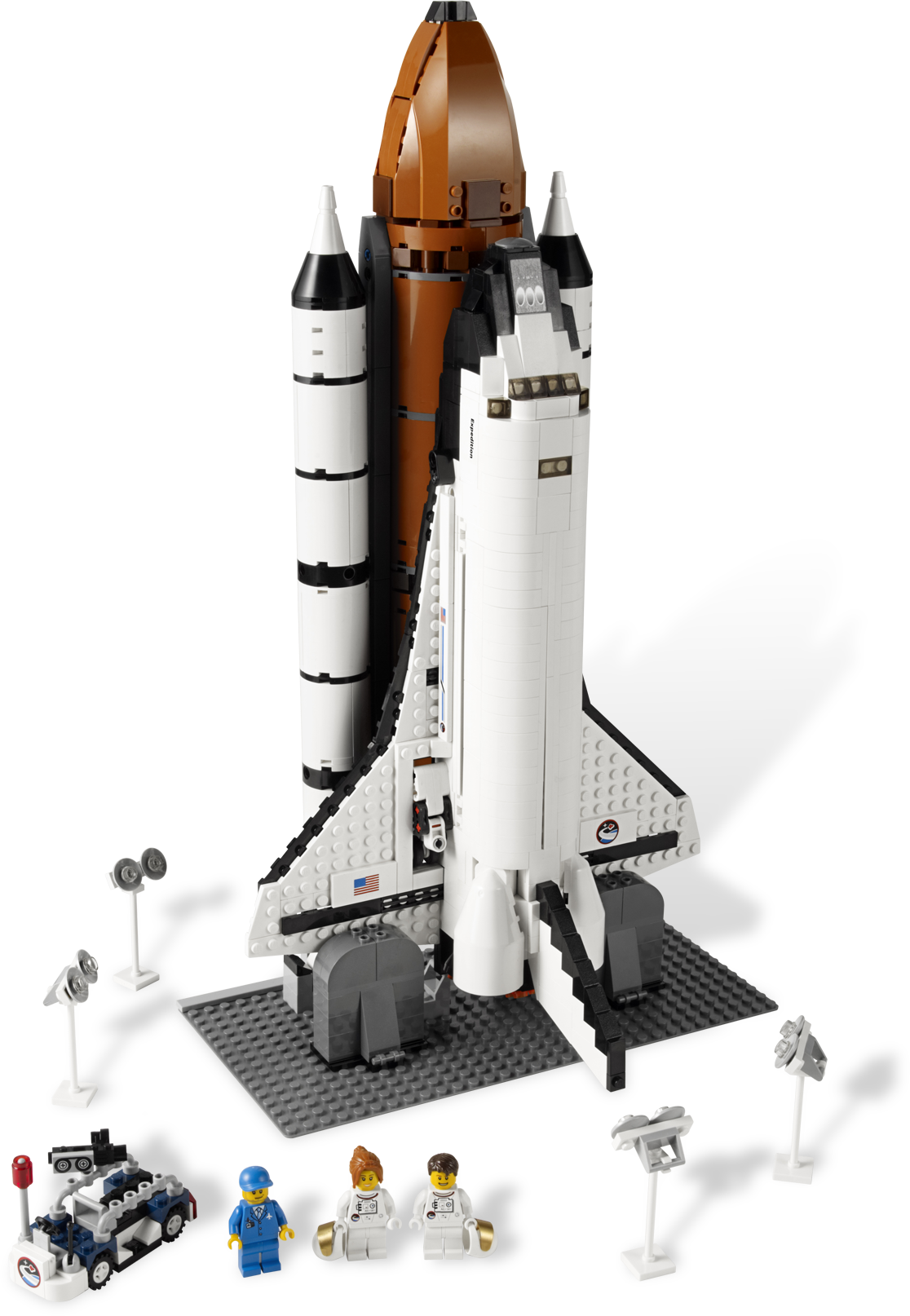 Blast off on an outer space mission! Standing 17.5" (44cm) tall and 10" (25.5cm) from wing tip to wing tip, this detailed and realistic space shuttle is ready to count down and blast off on its next exciting mission into space! You can take off from the launch pad, separate the detachable fuel tank and booster rockets, and deploy the satellite with unfolding antenna and solar cell panels. Shuttle model features realistic engines, retractable landing gear, an opening cockpit with seats for 2 astronauts, opening cargo compartment with a crane that can hold the satellite and a ground maintenance vehicle. Includes 3 minifigures: 1 male and 1 female astronaut, as well as 1 service crew member. Includes 3 minifigures: 1 male and 1 female astronaut as well as 1 service crew memberShuttle Adventure is ideal for building and display!Shuttle stands 17.5" (44cm) tall and measures 10" (25.5cm) from wing tip to wing tip Take off from the launch pad Separate the detachable fuel tank and booster rockets Deploy the satellite with unfolding antenna and solar cell panels Features realistic engines, retractable landing gear, opening cockpit with seats for 2 astronauts and even a ground maintenance vehicle Open the cargo compartment to reveal the crane that can hold the satellite