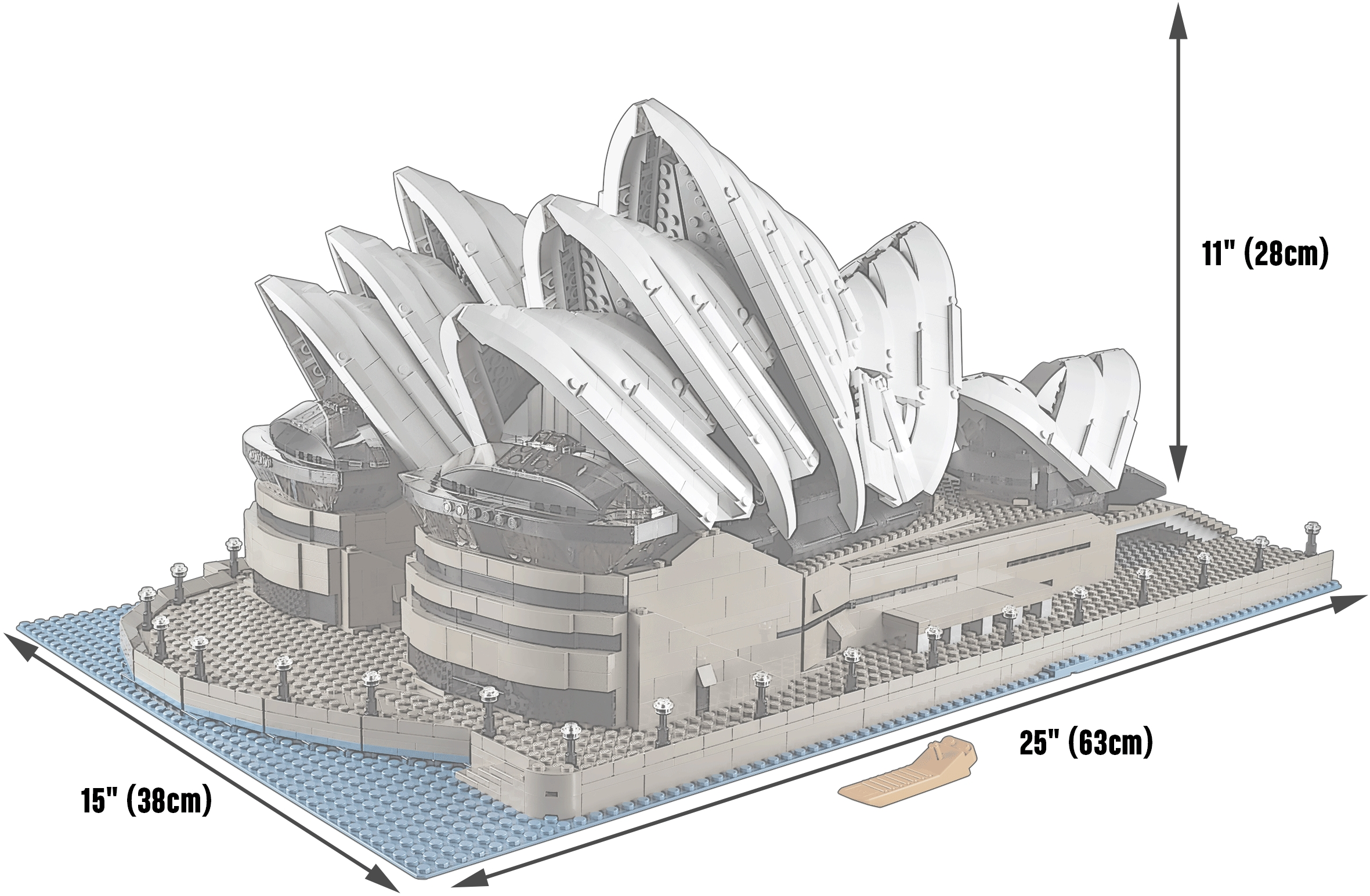 Recreate one of the most iconic buildings in the world! Recreate one of the 20th century’s most distinctive buildings with the Sydney Opera House™ model. Build the unmistakable shell roofline, waterfront forecourt and more with this authentic representation of Australia’s most iconic building. Employ a variety of new and advanced building techniques to recreate the complex forms, angled walls and subtle detailing of the real thing! Collect lots of dark tan LEGO® bricks including the rare 1x1x2/3 stud and 1x2x2/3 stud slopes, as well as a 48x48 stud baseplate in blue for the very first time!• Features advanced building techniques for complex forms, angled walls and subtle detailing• Includes hard-to-find dark tan LEGO® bricks, tiles and sloped bricks• Sturdy construction allows the model to be handled and moved• Build this model of a UNESCO World Heritage Site!• Collect the 48x48 stud baseplate, available in blue for the very first time• Recreate Australia’s architectural masterpiece!• Measures over 11" (28cm) high, 25" (63cm) wide and 15" (38cm) deep