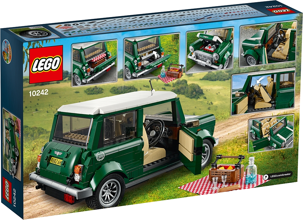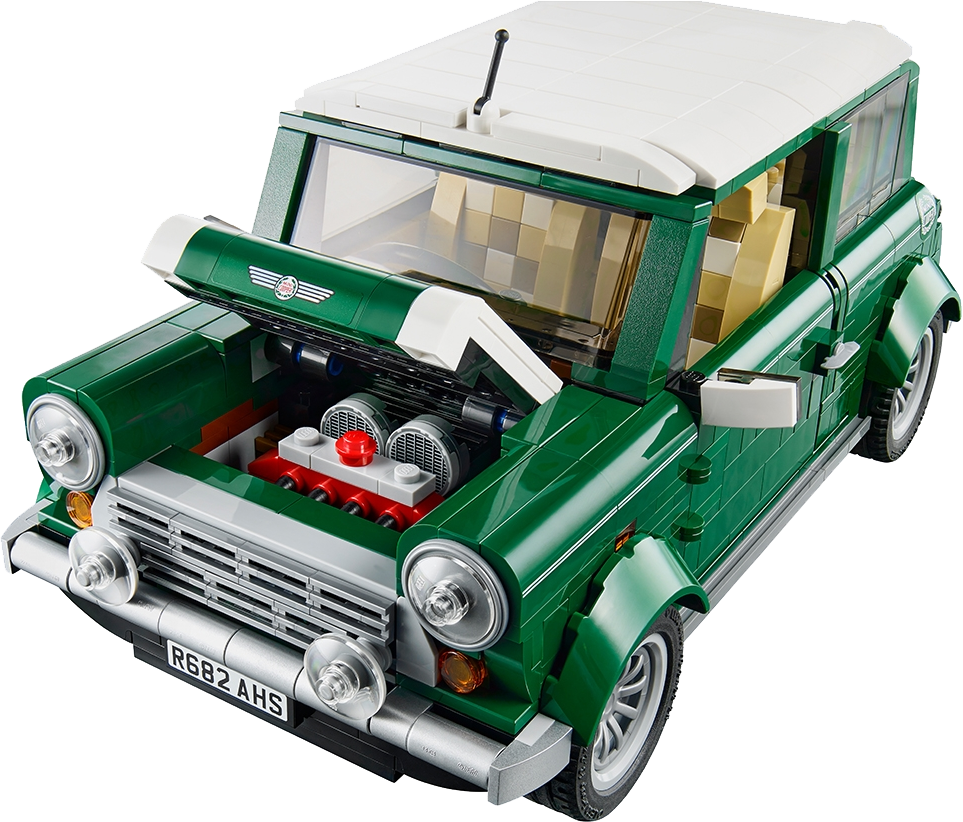 Take this MINI Cooper for a nostalgic drive down memory lane! Take the iconic MINI Cooper for a drive! This beautifully crafted LEGO® brick replica of the classic MINI Cooper Mk VII is full of authentic details, from the classic green and white colour scheme with white wing mirrors and racing stripes, to the opening doors, hood and trunk, sporty fog lights, detailed engine and separate spare tire compartment. You can even remove the roof to access a tan colored interior with patterned seats, veneer-style dashboard, turning steering wheel, and moving gearshift and handbrake. And of course, no MINI Cooper would be complete without a picnic basket and blanket, the perfect accessories for a fun day in the countryside!Features opening doors, hood and trunk, spare wheel in separate compartment, detailed engine and 2 fog lightsAccessories include a picnic basket, bottle and blanket for nostalgic picnic themeAuthentic replica of the MINI Cooper Mk VIIClassic green and white color theme with white wing mirrors and racing stripesLift the hood to reveal the detailed engineRemove the roof and access the detailed interiorGo on a countryside picnic with this iconic classic! MINI Cooper measures over 4” (11cm) high, 9” (25cm) long and 5” (14cm) wide