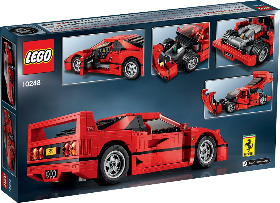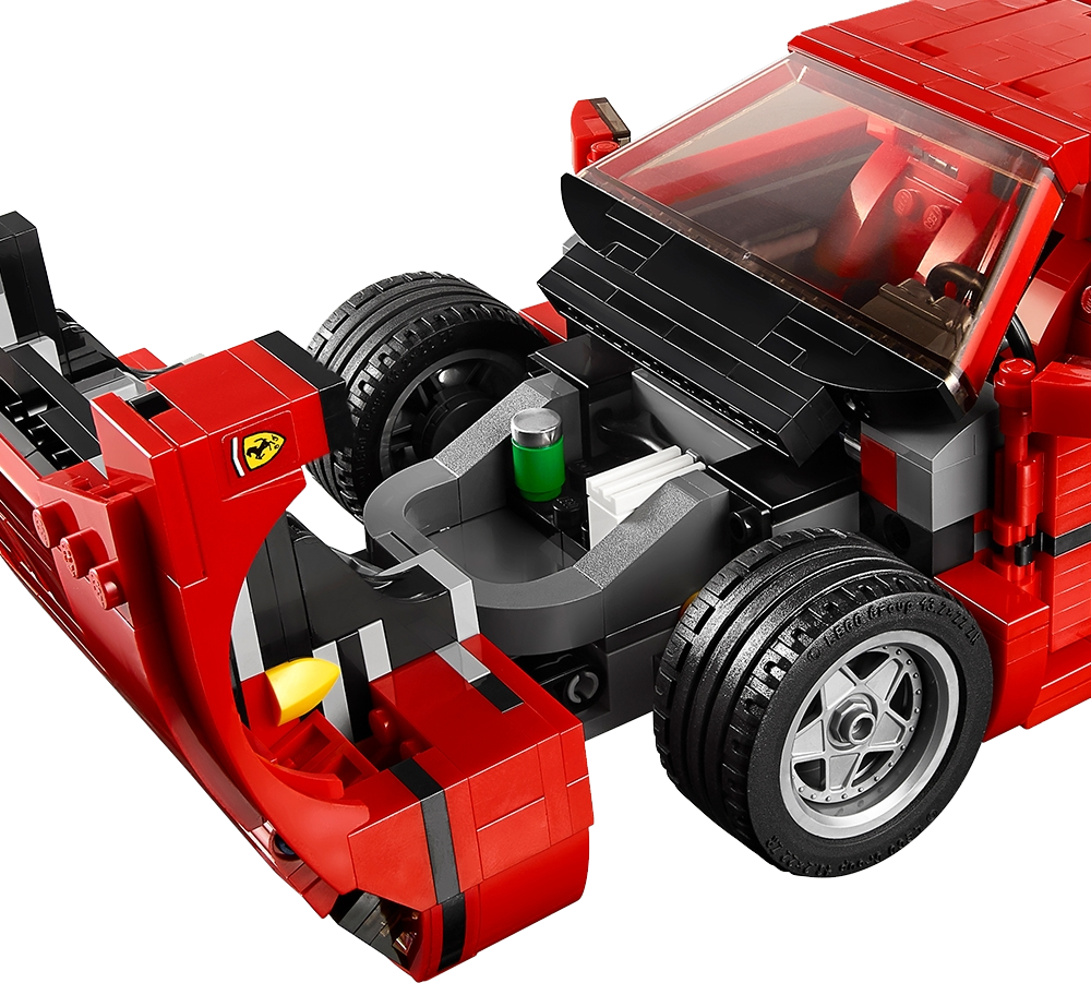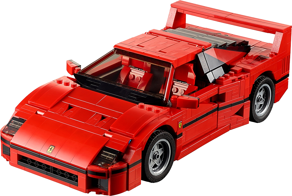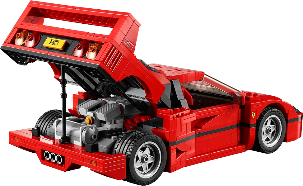 Build your very own Ferrari F40! Get up close to one of the world’s greatest supercars—the Ferrari F40! This awesome LEGO® Creator Expert replica of the iconic sports car with its sleek aerodynamic lines, distinctive rear spoiler and racing-red bodywork is packed with authentic brick-built details, including pop-up headlights, side air intakes and a vented rear hatch that opens to reveal a twin-turbocharged, 90-degree V8 engine! Open the doors and you’ll discover complete authenticity, right down to the crafted cabled door handles, steering wheel with Ferrari logo and 2 red racing seats, while under the hood you’ll find a luggage compartment and tools. A special windscreen element with printed A-pillars and custom-made, molded rim inserts with sturdy, road-gripping tires add the final touches to this intricately designed model, a must-have for all Ferrari fans!Features an array of brick-built details, including a hinged, vented rear hatch, detailed twin-turbocharged, 90 degree V8 engine with quick release function, opening doors and hood with luggage compartment and tools, pop-up headlights, cabled door handles, windscreen element with printed A-pillars, steering wheel with Ferrari logo, 2 red racing seats and custom-made, molded rim insertsIncludes 1158 assorted LEGO® elementsRacing-red color scheme!Build your very own Ferrari F40!Check out the awesome brick-built details!Lift the vented rear hatch to reveal the detailed V8 engineOpen the doors to access the detailed, authentic interiorTake this iconic sports car for a spin!Ferrari F40 measures over 3” (8cm) high, 10” (27cm) long and 5” (14cm) wide