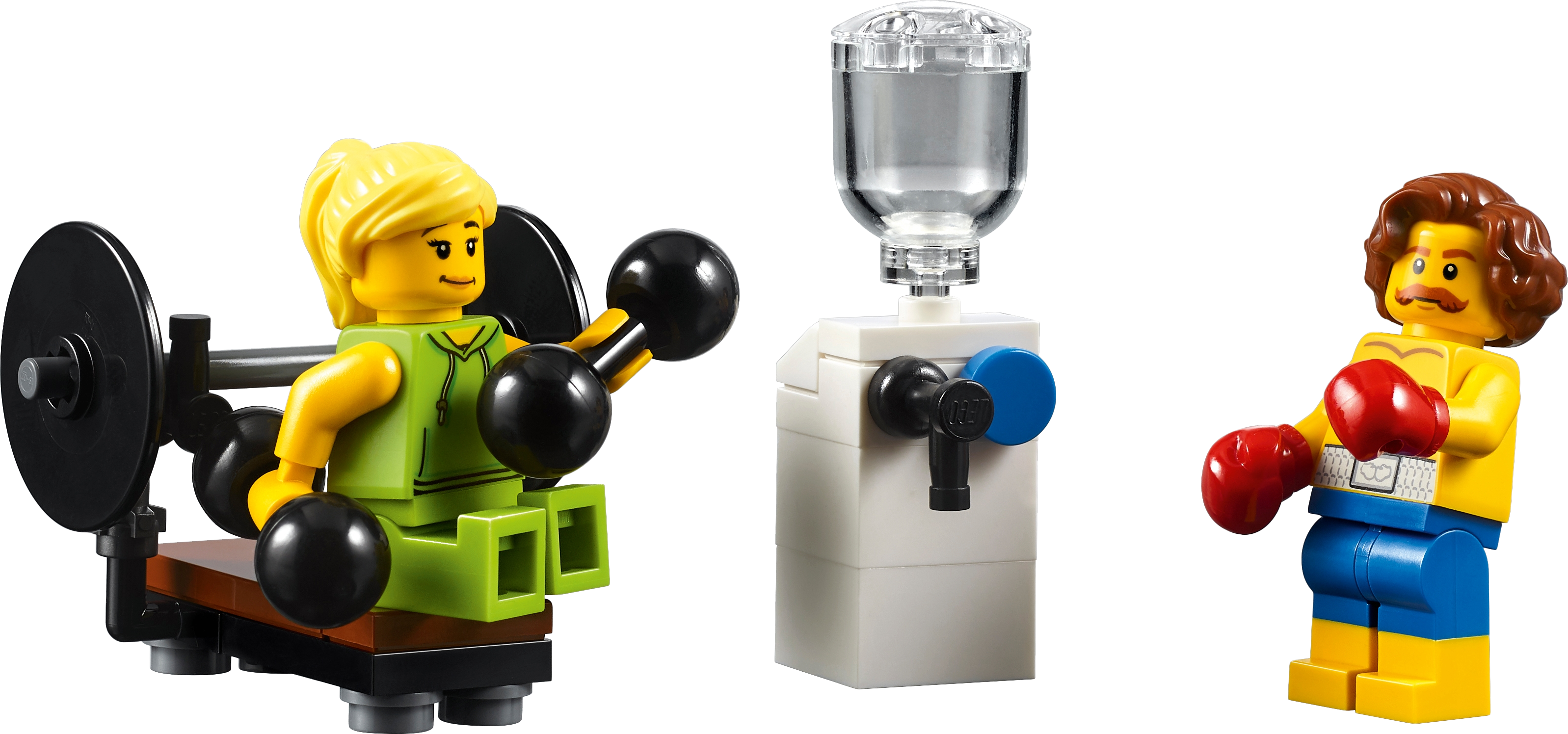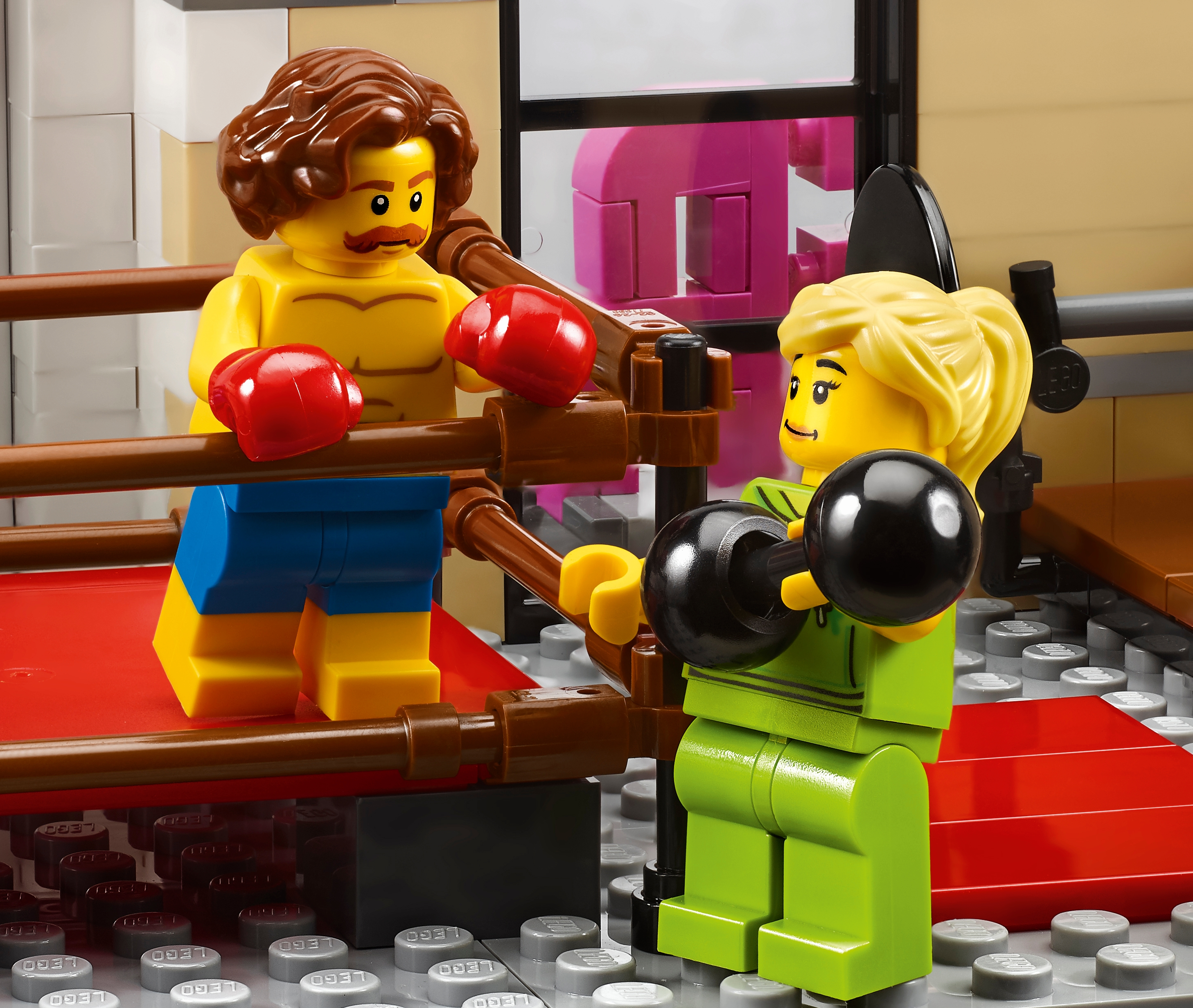 Includes 6 minifigures: a chef, waitress, boxer, rock star, manager and a bodybuilder.