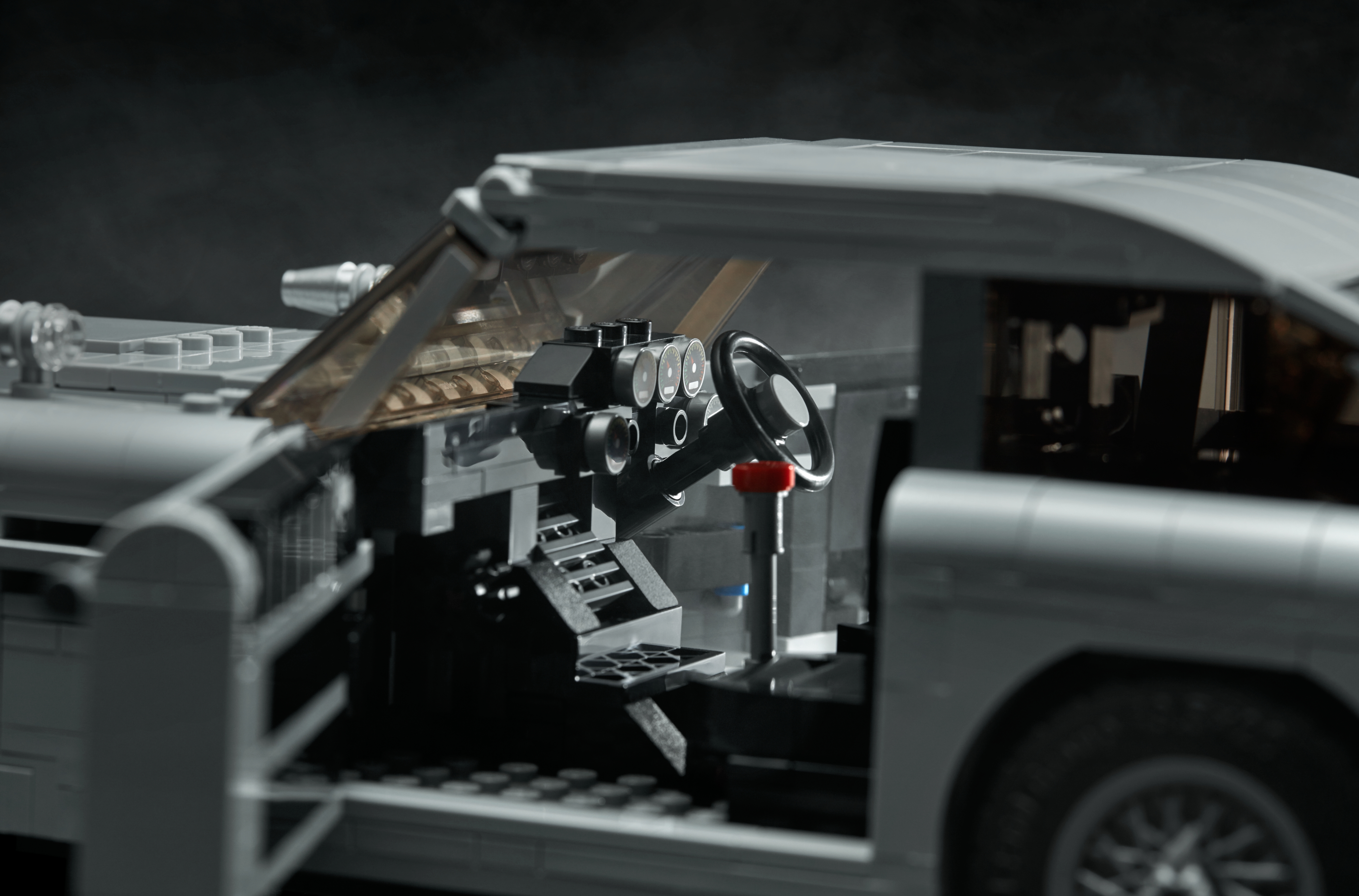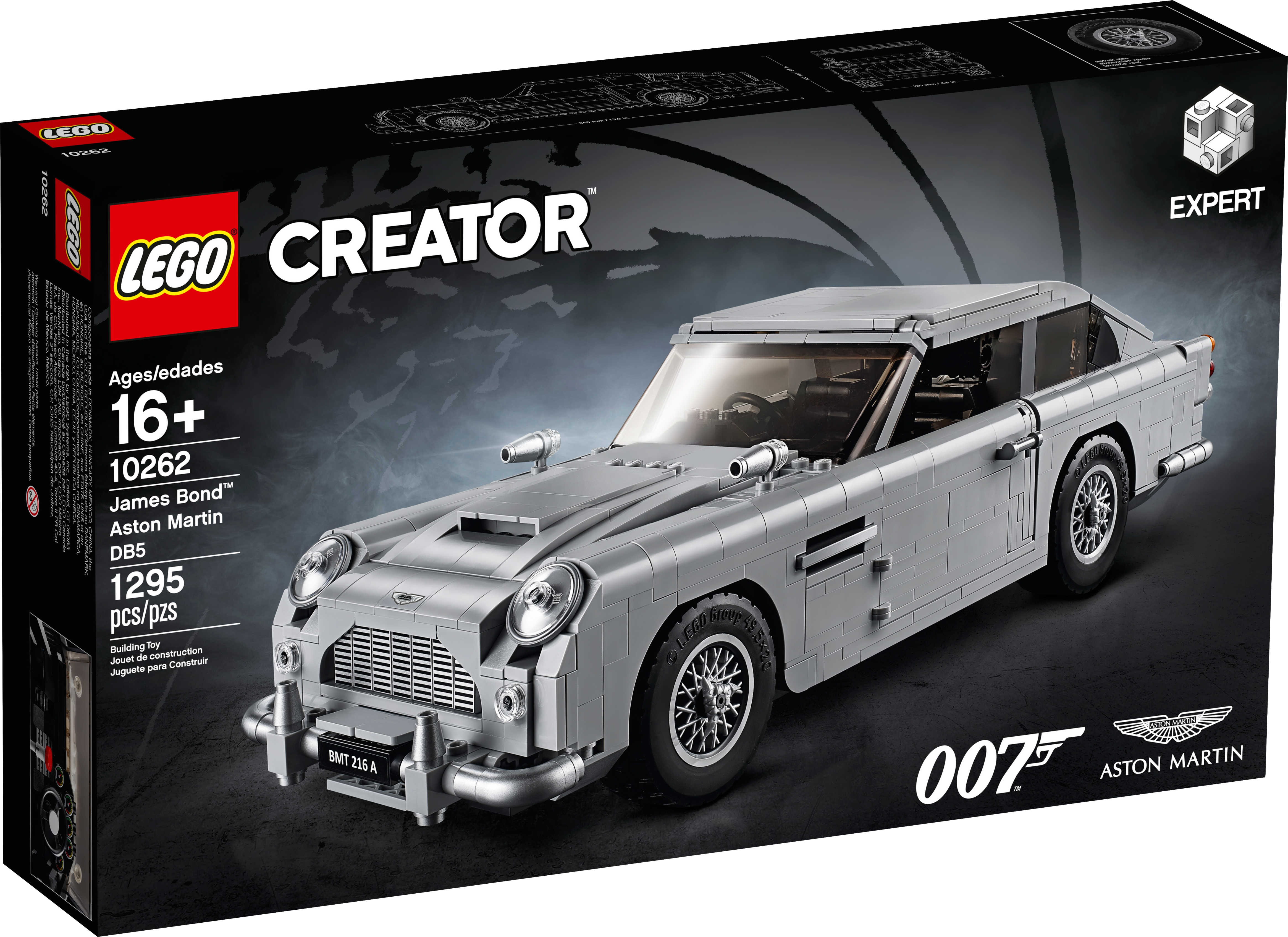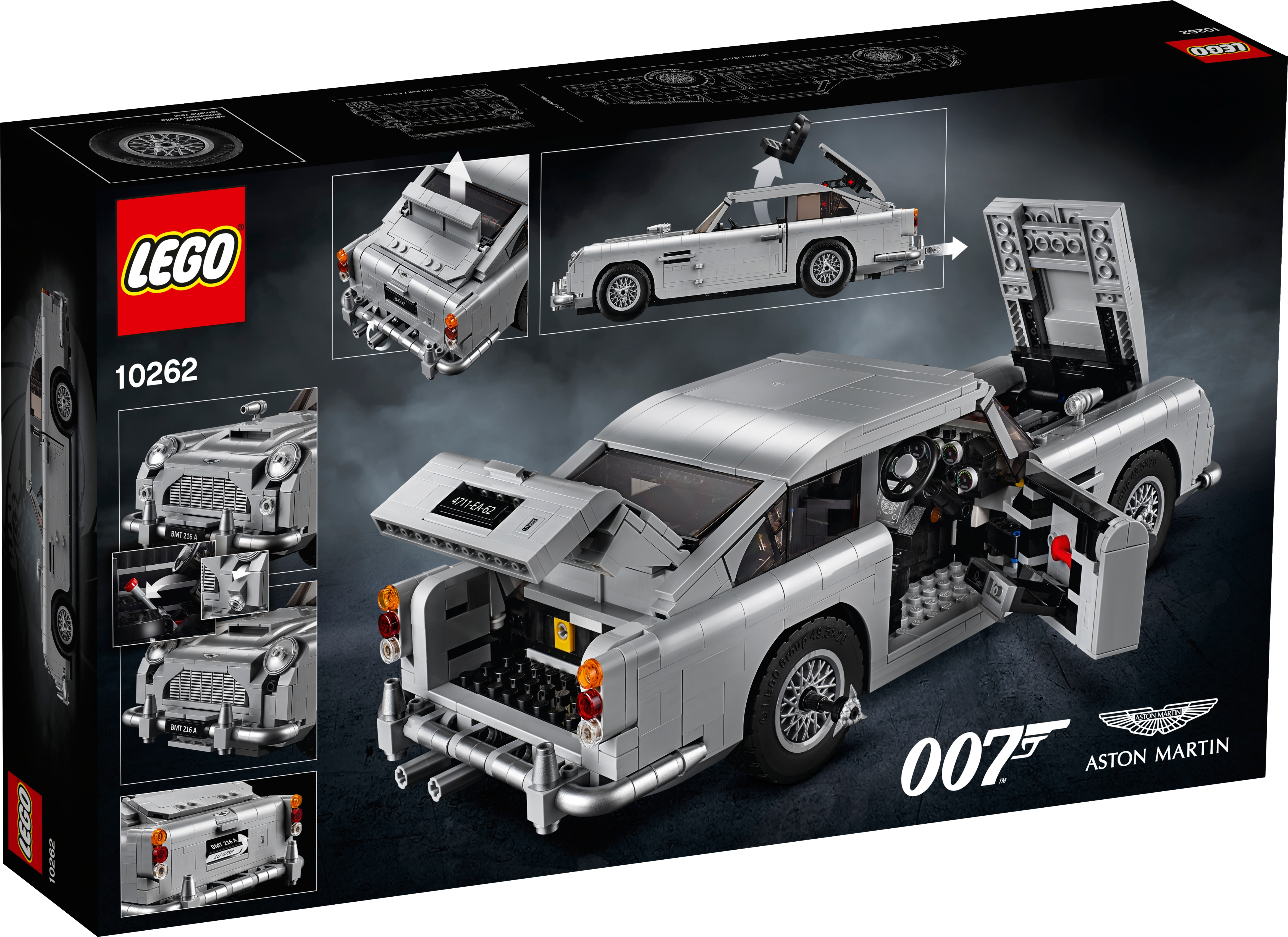 Get a license to build with the awesome LEGO® Creator Expert 10262 James Bond™ Aston Martin DB5. This impressive replica model captures the elegance and timeless sophistication of Agent 007’s iconic 1964 sports car, and comes with a wealth of authentic details and functioning gadgetry. Open the doors and you'll discover a detailed interior with a concealable radar tracker and a door compartment containing a telephone. And when it's time for action, activate the passenger ejector seat, turn the revolving number plates, raise the rear-window bulletproof screen, deploy the wheel-mounted tyre scythes and pull back the gearstick to reveal the front wing machine guns. This collectible model car also features a detailed straight-6 engine, drum-lacquered silver front and rear bumpers, moulded silver-coloured wire wheel rim inserts and front and rear Aston Martin logos. The model has been designed to provide a challenging and rewarding building experience full of nostalgia—a must-have for fans of the Aston Martin DB5, James Bond movies and LEGO building sets. Authentic replica of the world-famous 1964 Aston Martin DB5 sports car, featuring a classic design with drum-lacquered silver front and rear bumpers, moulded silver-coloured wire wheel rim inserts, opening boot, bonnet and doors, and a wealth of James Bond™ gadgetry, including a working ejector seat, revolving number plates, rear-window bulletproof screen, front wing machine guns and wheel-mounted tyre scythes. This LEGO® James Bond™ Aston Martin DB5 model also features opening doors and a detailed interior with a concealable radar tracker and door compartment with telephone. Lift the bonnet to check out the straight-6 engine detailing. Pull back the rear bumper to eject unwelcome passengers. Revolve the number plates, raise the rear-window bulletproof screen and deploy the wheel-mounted tyre scythes. Pull back the gearstick to reveal the front wing machine guns. Own this collectible replica of the Aston Martin DB5, as featured in the classic James Bond™ Goldfinger movie. This set includes over 1,290 pieces and is suitable for ages 16+. New-for-August-2018 special elements include a drum-lacquered macaroni connector, 2x4 tile and 1M beam, plus a printed 1x2 tile with grille pattern. Measures over 3” (10cm) high, 13” (34cm) long and 4” (12cm) wide.