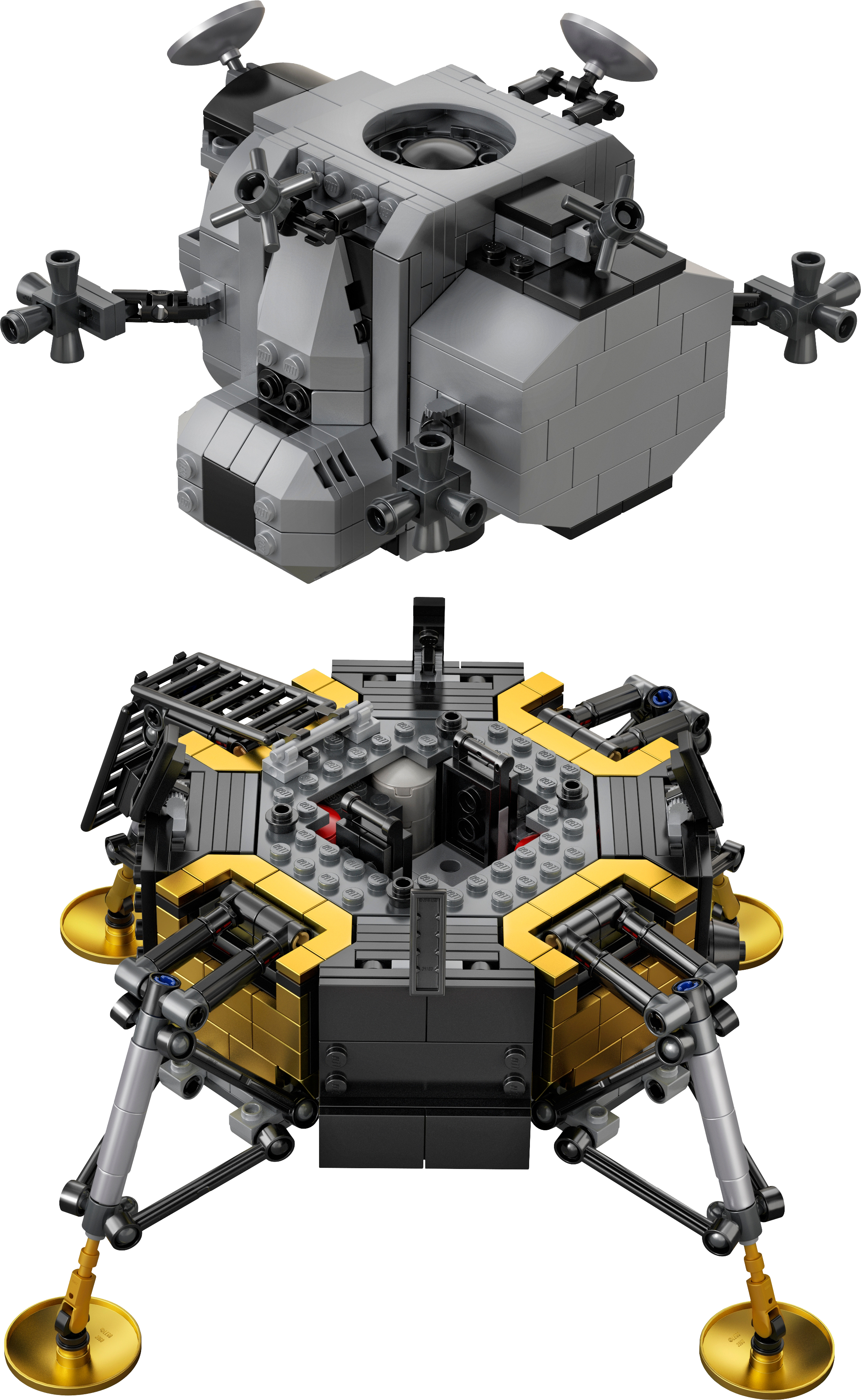 Ascent stage features a detailed interior with room for 2 astronaut minifigures.