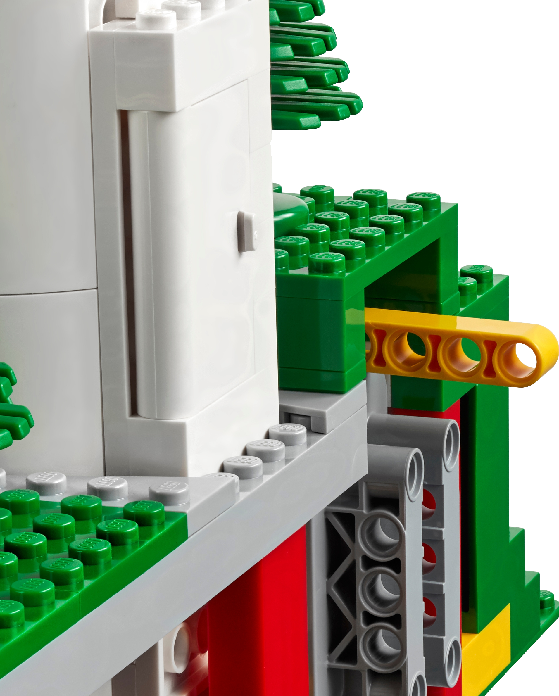 Turn the nacelle left or right and switch on the included Power Functions motor to activate the adjustable wind turbine blades and working porch light.