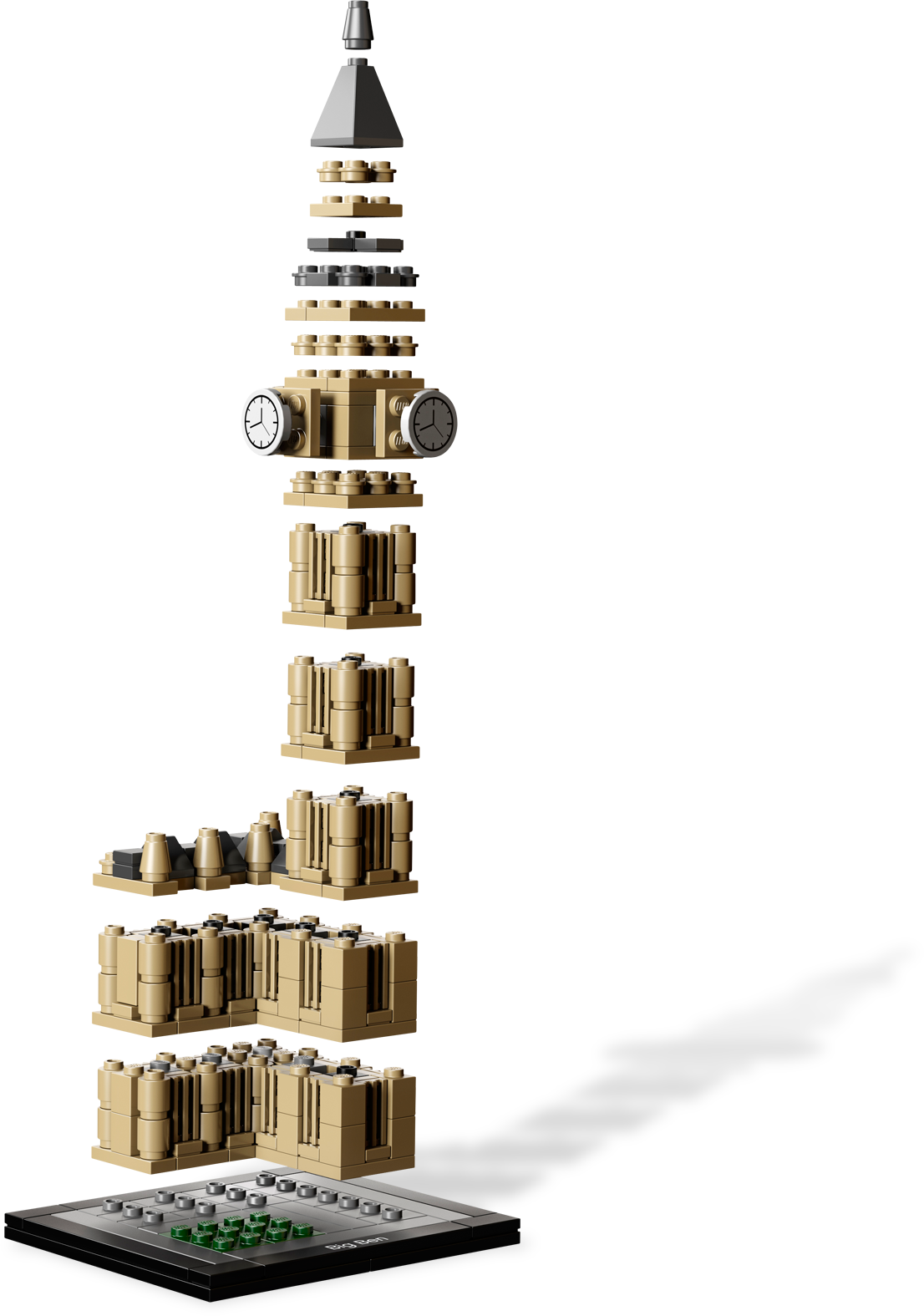 Recreate the world's most iconic timepieces – the Big Ben Clock Tower! Presenting the Big Ben Clock Tower, one of the world's most instantly recognizable landmarks. Standing at the northeast corner of the Palace of Westminster in London, England, the Big Ben Clock Tower was erected from 1843–1859 following a fire that burned down much of the original palace. The clock tower features classical design with a distinct gothic influence. The clockwork itself was designed by Edward John Dent shortly after construction of the tower began. This LEGO® Architecture series interpretation of the Big Ben Clock Tower was designed by Slovenian architect Roc Z. Kobe in collaboration with the LEGO design team.Interpretation of real-world architectural landmark, the Big Ben Clock TowerBooklet included with details on design and history (English language only. Other languages available for download.)Collect the entire landmark series!LEGO® Architecture inspires future architects, engineers and designers as well as architecture fans around the world using the LEGO brick as a medium for reproducing esteemed structuresMeasures 7.7” (19.4cm) tall, 3.8” (9.6cm) wide and 3.1” (8cm) deep