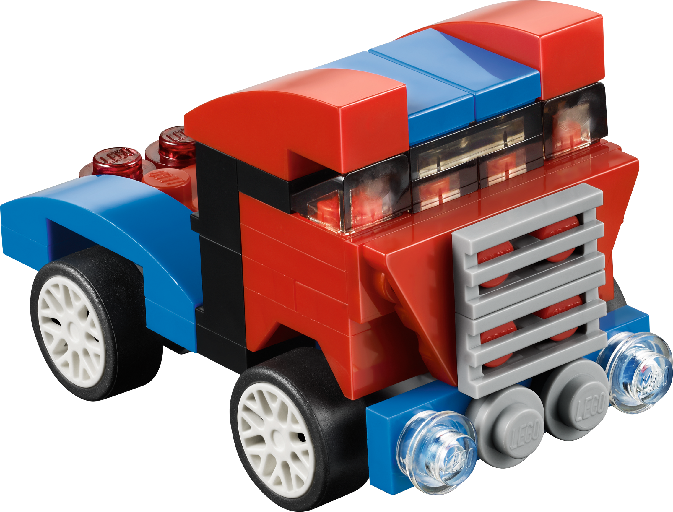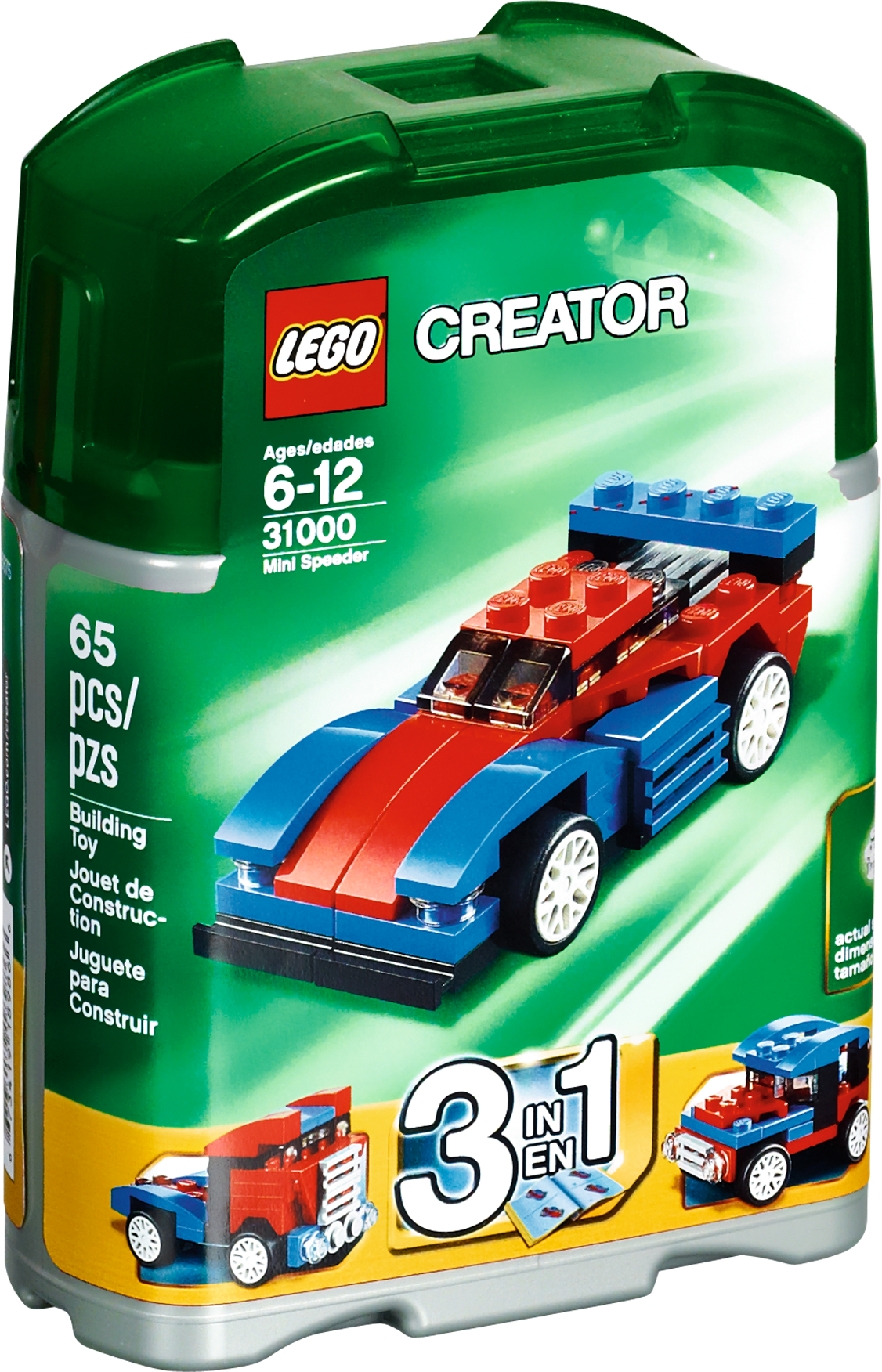 Cruise the streets with the super 3-in-1 Mini Speeder! Shift into high gear and cruise in the Mini Speeder! Cause a scene on any street with the bright red and blue design, contrasted with big white wheels and real rubber tires! Rebuild it into a rugged offroader or powerful truck, both with headlights and taillights! Comes in a sturdy reusable storage can.•3-in-1 model: rebuilds into a rugged offroader or powerful truck•Features 4 real rubber tires, white wheels and bright red and blue design•Store your creation in the sturdy reusable storage can!•Rebuild into 2 more models!•Mini Speeder measures over 0.5" (2cm) high, 2" (6cm) long and 1" (3cm) wide•Offroader measures over 1" (3cm) high, 2" (6cm) long and 1" (3cm) wide•Truck measures over 1" (4cm) high, 2" (6cm) long and 1" (3cm) wide