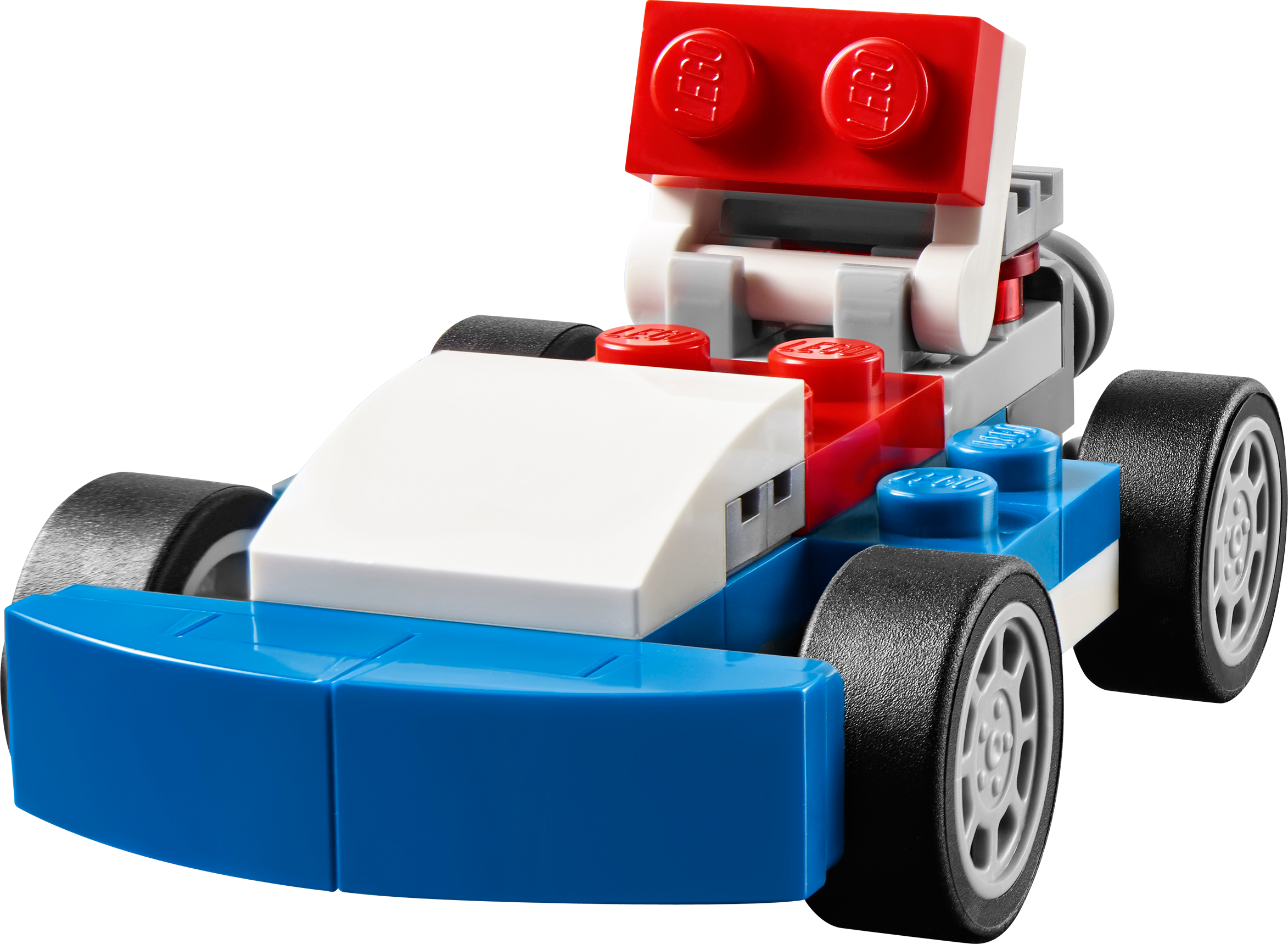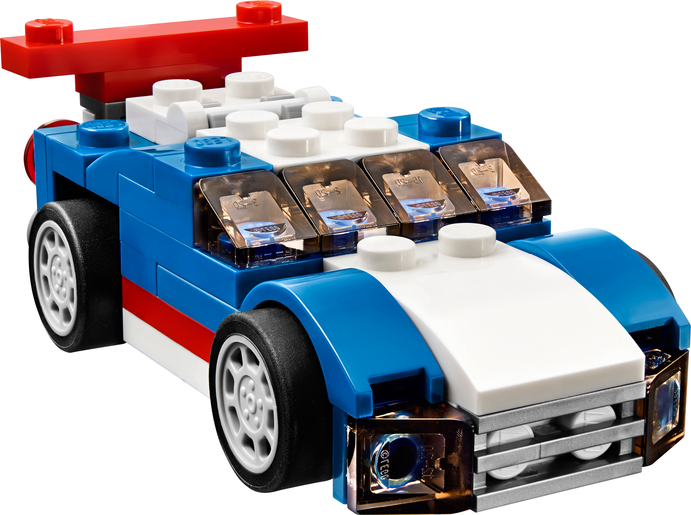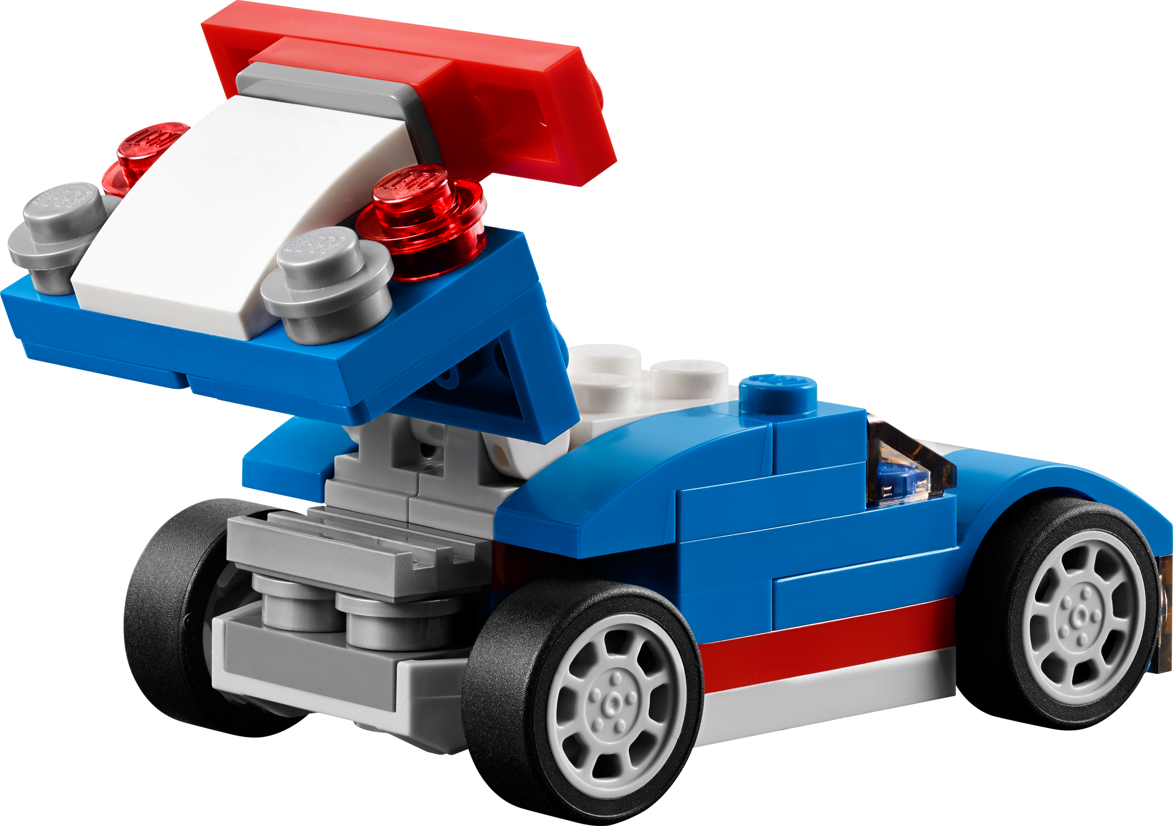 Test your driving skills with the super-cool 3-in-1 Blue Racer! Take the sleek 3-in-1 Blue Racer for a spin. Test your driving skills as you weave through the orange traffic cones at high speed. Features a sporty blue, white and red color scheme, beefy exhausts, cool alloy-look rims and a smart rear spoiler panel that opens to reveal a detailed engine. When you’re done racing, rebuild it into a powerful snowplow with movable snow shovel or a cool buggy with awesome rear engine detailing. Features hinged rear spoiler panel, detailed engine, 4 orange traffic cones and alloy-look rims Check out the sporty blue, white and red color scheme! Weave through the orange traffic cones! 3-in-1 model: rebuilds into a smart snowplow or a cool buggy Buggy can accommodate a minifigure Blue Racer measures over 2” (7cm) long, 1” (3cm) wide and under 1” (2cm) high Snowplow measures over 1” (4cm) high, 2” (7cm) long and 1” (3cm) wide Buggy measures over 1” (3cm) high, 2” (6cm) longand 1” (3cm) wide Combine with the 31029 Cargo Heli and 31033 Vehicle Transporter for even more action