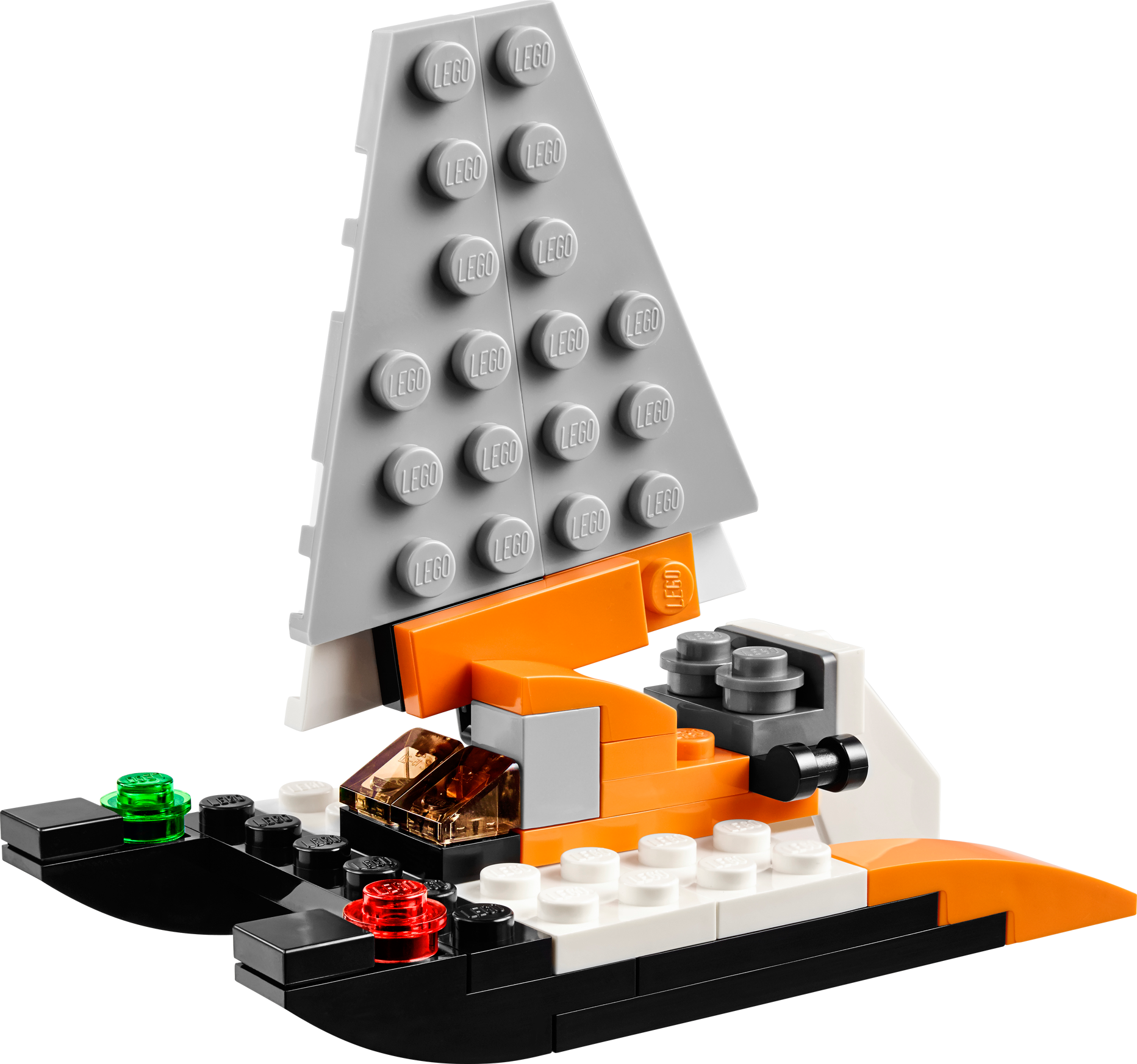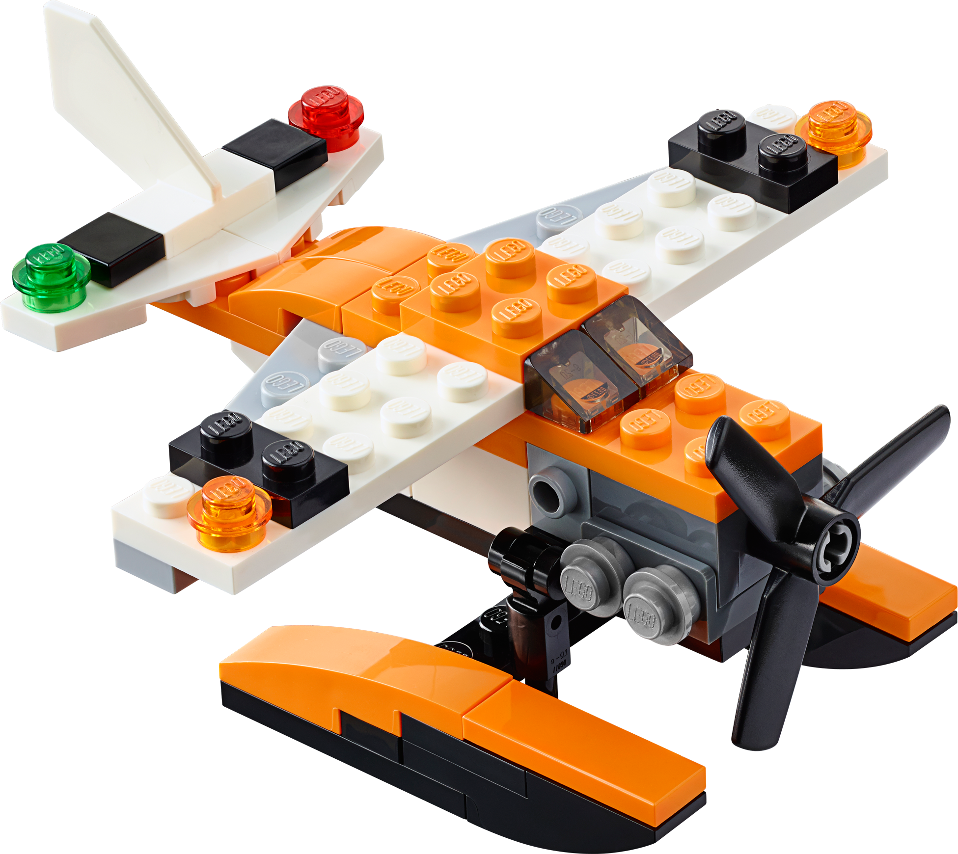 Skim the waves at high speed with the 3-in-1 Sea Plane! Skim the waves with the 3-in-1 Sea Plane! This cool aircraft features an orange, black and white color scheme, large propeller, engine detailing, navigation lights, tinted windshield and large pontoons for landing on water. Spin the propeller and apply the power. Thunder over the ocean surface and soar into the sky to perform cool aerial maneuvers and ocean landings. When you’re done flying, rebuild the Sea Plane into a powerful swamp boat or a super-fast catamaran. Features a large propeller, engine detailing, navigation lights, tinted windshield and big pontoons Check out the cool orange, black and white color scheme Skim over the waves Perform ocean landings! 3-in-1 model: rebuilds into a super-fast catamaran or a cool swamp boat Swamp boat can accommodate a minifigure Sea Plane measures over 1” (5cm) high, 3” (10cm) long and 3” (9cm) wide Swamp boat measures over 1” (5cm) high, 3” (8cm) long and 1” (4cm) wide Catamaran measuresover 3”(8cm) high, 3” (8cm) long and 1” (4cm) wide