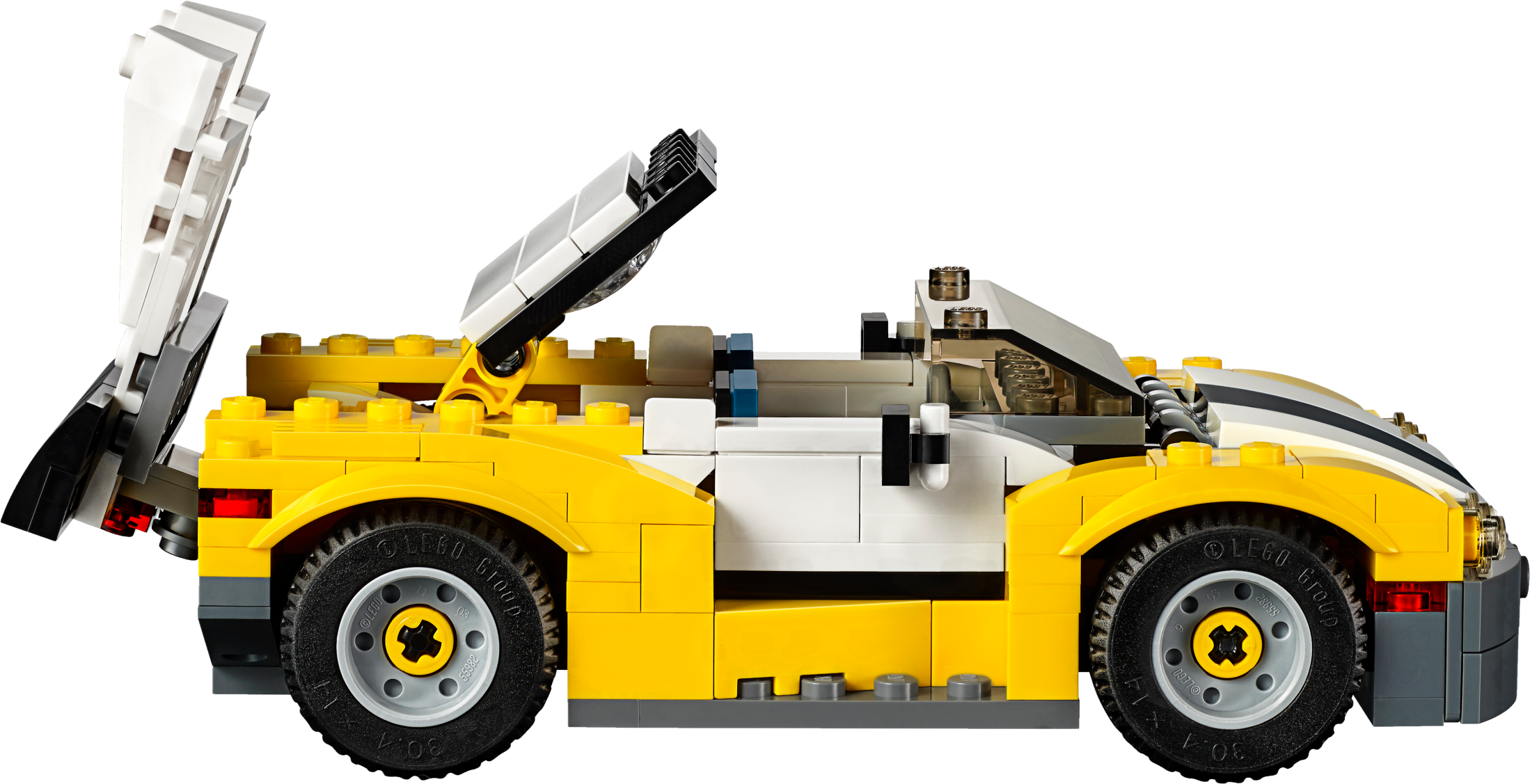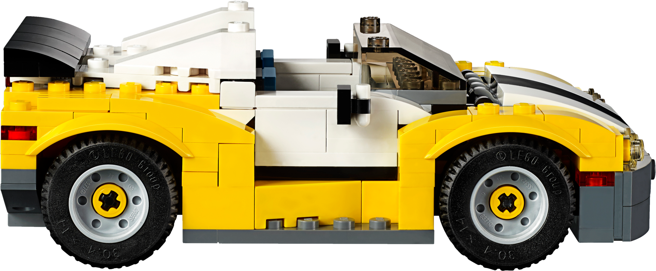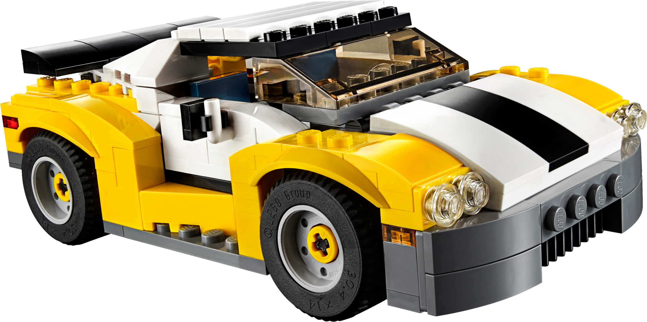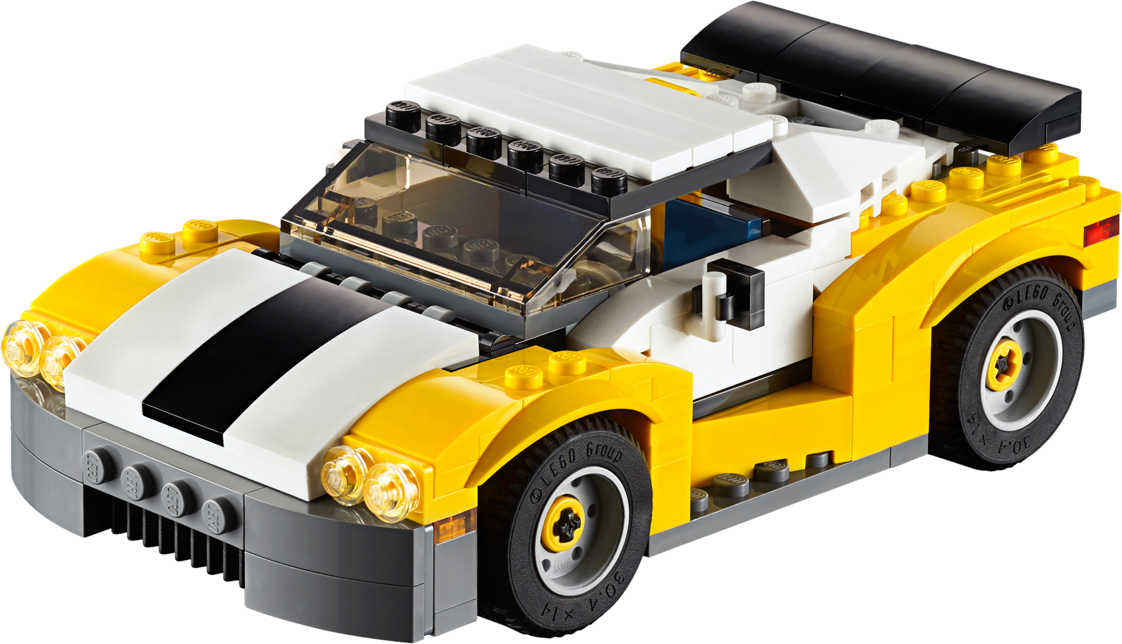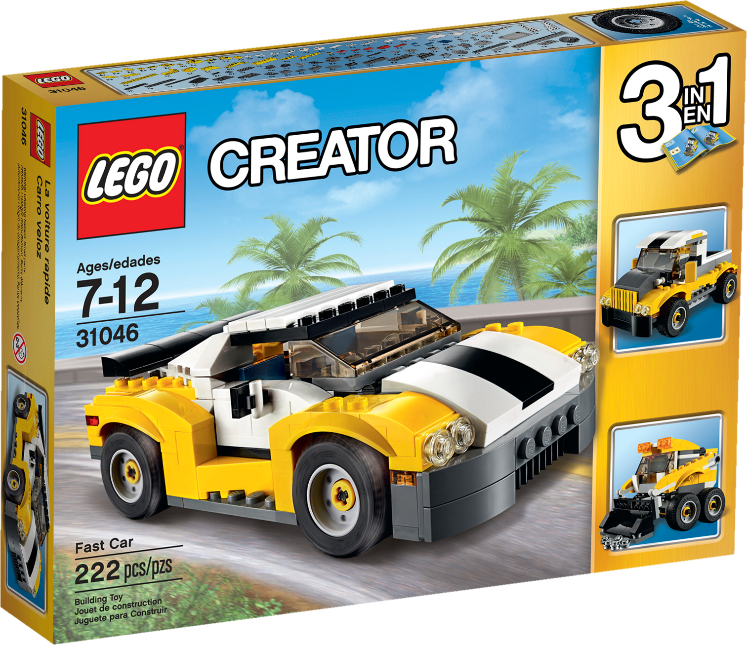 Get ready for the ultra-cool 3-in-1 Fast Car! Hit the open road with this awesome sports car, featuring a cool yellow, white and black color scheme, huge spoiler, stylish rims with low-profile tires, opening hood and a detailed engine. Open the scissor doors, get behind the wheel, fold down the roof and enjoy the sunshine while you put this amazing vehicle through its paces! Rebuild it into a pickup truck or a skid loader. Features a large spoiler, alloy–look rims with low-profile tires, opening hood with detailed engine, opening scissor doors, fold-down roof and a large driver’s cab with space for 2 minifigures (not included). Check out the yellow, white and black color scheme. Open the scissor doors, fold down the roof and hit the open road. This set offers an age-appropriate building experience for ages 7-12. Includes more than 220 LEGO® bricks. 3-in-1 model: rebuilds into a pickup truck or a skid loader. Fast Car measures over 1” (5cm) high, 5” (15cm) long and 3” (8cm) wide. Pickup truck measures over 2” (7cm) high, 5” (14cm) long and 3” (8cm) wide. Skid loader measures over 2” (7cm) high, 3” (9cm) long and 3” (8cm) wide.