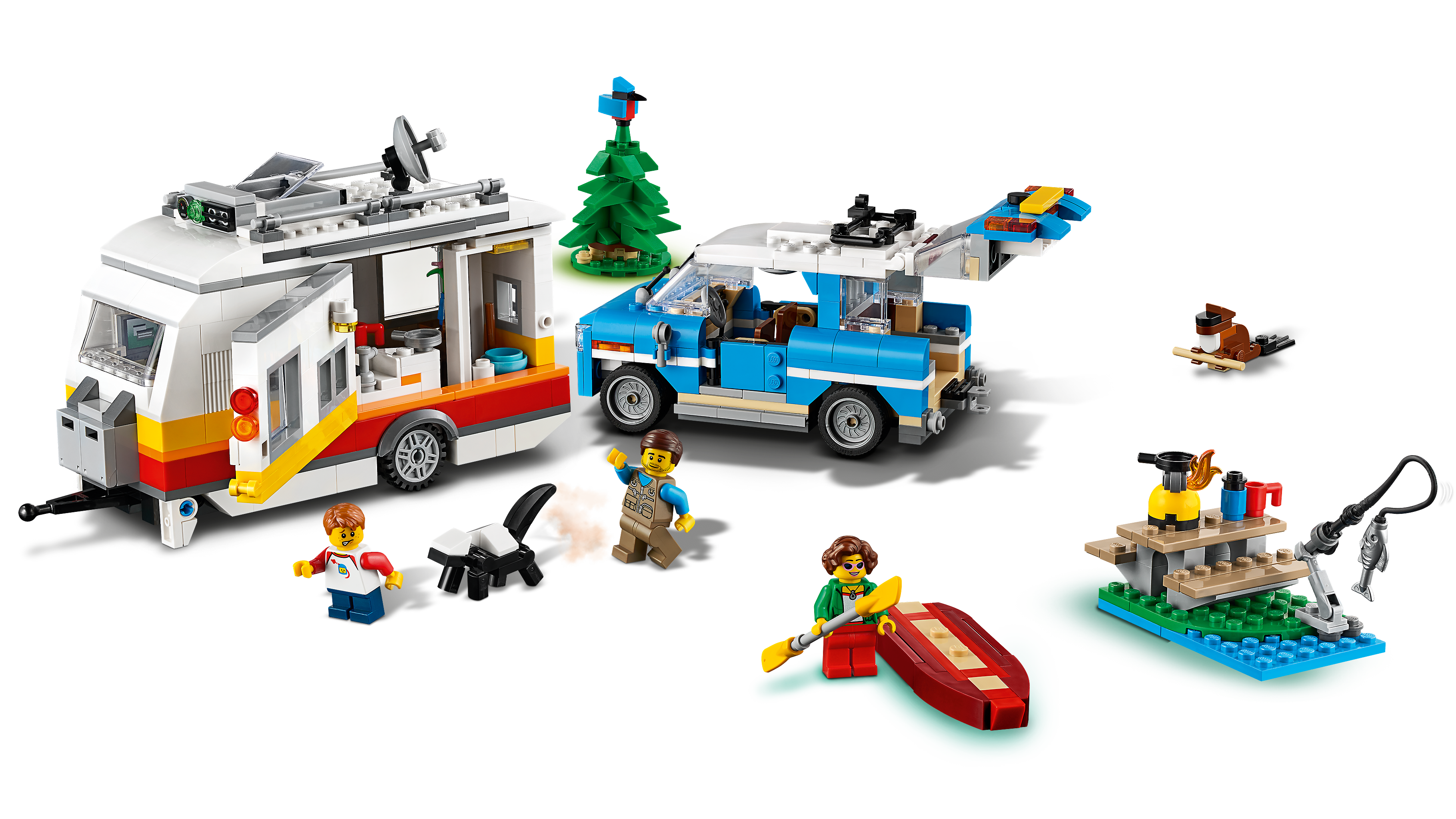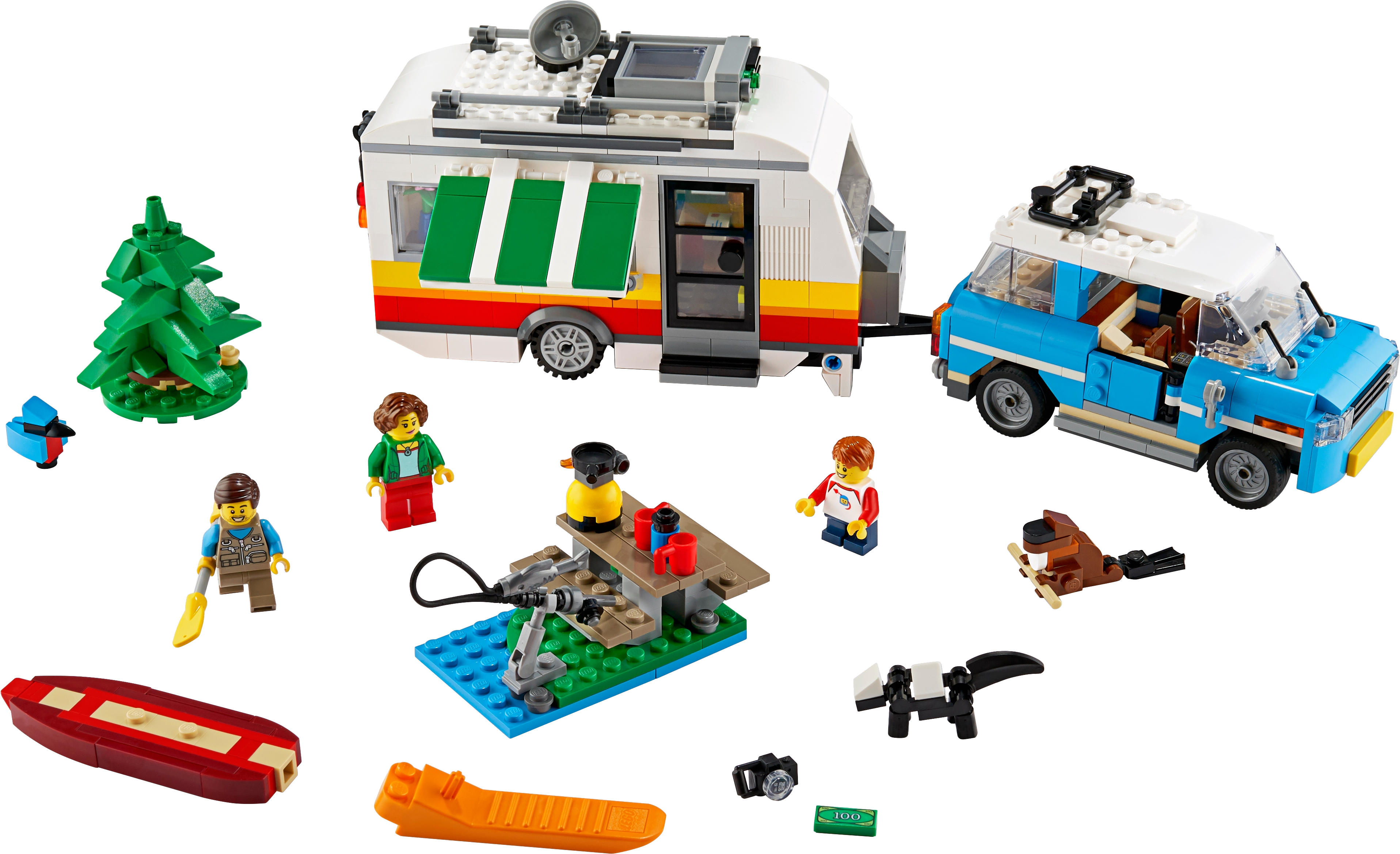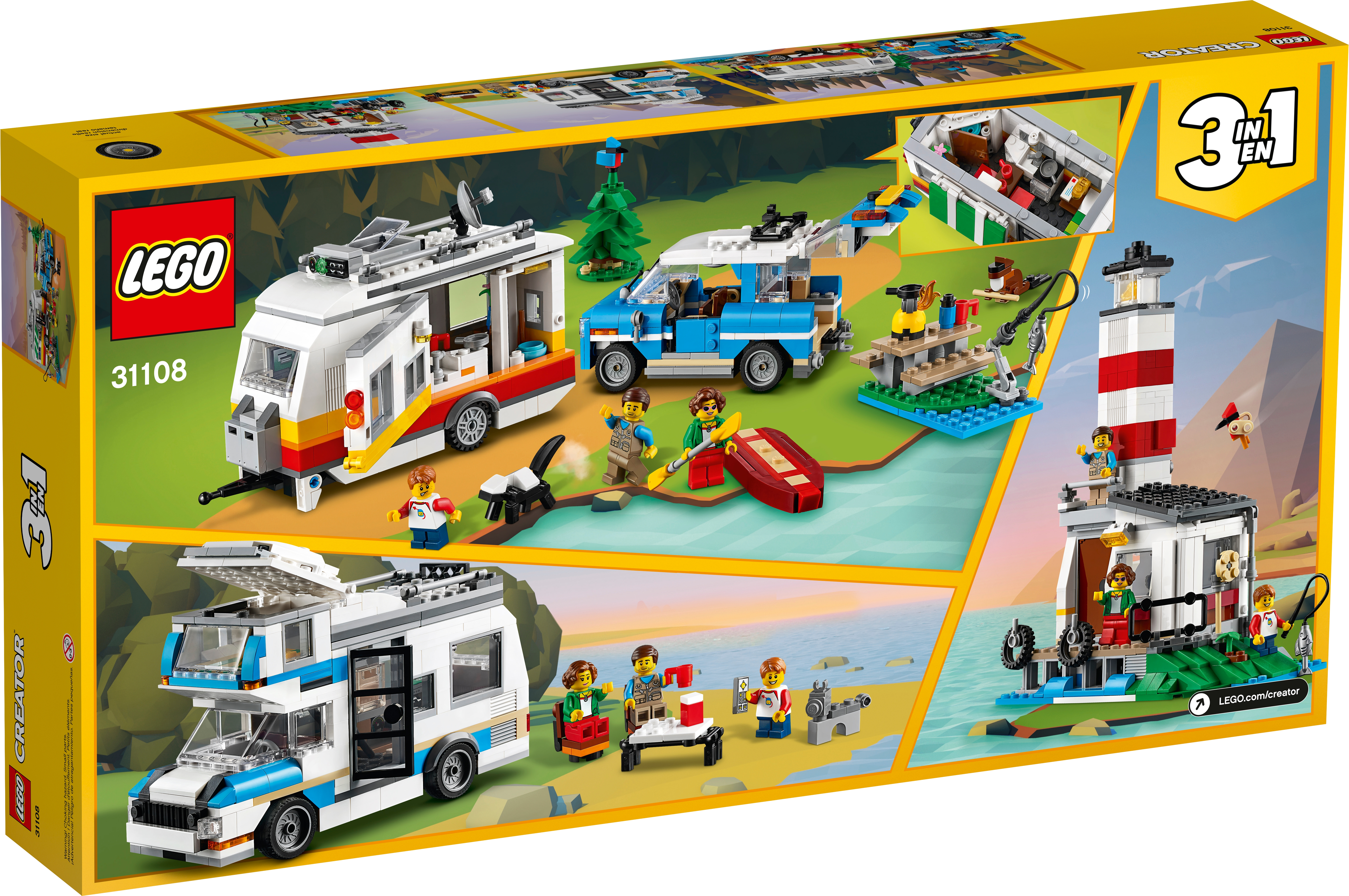 Creative camping adventures and fun are waiting for outdoor fans in the LEGO Creator 3in1 Caravan Family Holiday (31108) playset. The set has a retro car and caravan toy and features a kitchen, toilet, removable roof and opening side. Packed with accessories and features, the set also includes 3 minifigures to jump-start play. Limitless building creativityAt least 3 different build-and-play experiences are possible with this great LEGO Creator 3in1 toy set. Kids can build a caravan with aretro car model, then rebuild it into a camper van or a detailed lighthouse. Or they can free their creativity, tap into different passions and build something new. Stand-alone models free imaginationLEGO Creator 3in1 sets offer kids different models that are realistic and encourage imaginative play. The models give endless building and play opportunities while helping to spark creativity in children of all ages. The awesome toy sets also make great Christmas gifts or birthday presents forkids.