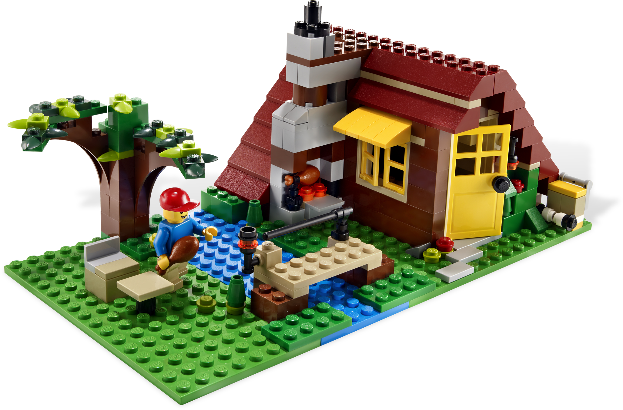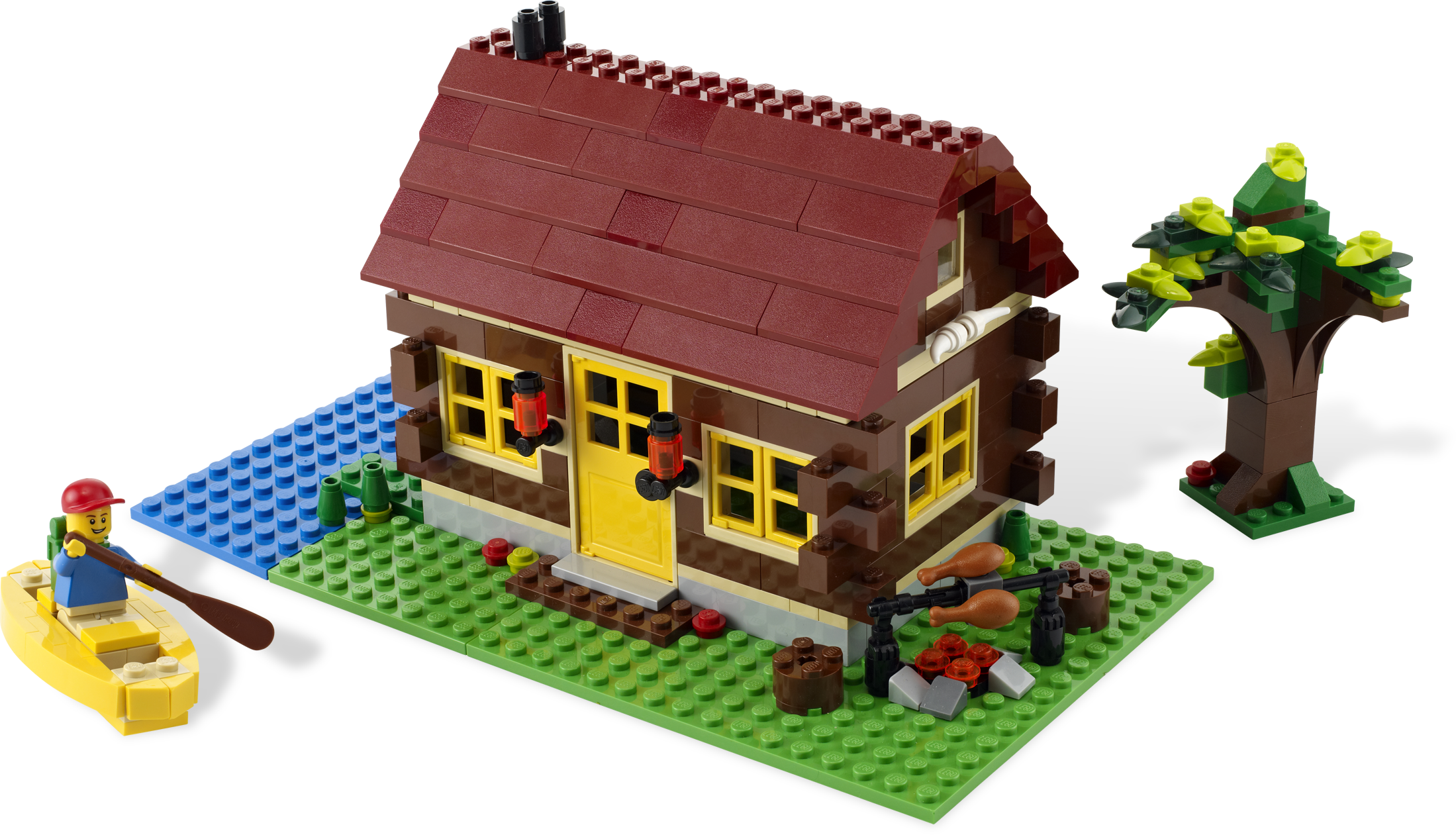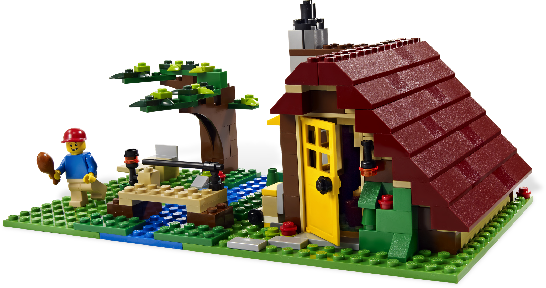 Escape to the LEGO® countryside in this 3-in-1 Log Cabin! Packed with great details, including an open fire with rotisserie, wooden logs, tree and opening doors and windows, this log cabin is an ideal wilderness getaway. Minifigure included and ready for backwoods adventure, with backpack, paddle and canoe. Rebuild into a country retreat or a river hut. Includes 1 minifigure with backpack Features open fire with chicken on rotisserie, wooden logs, tree, opening doors and windows, canoe with paddle, and horn ornament Unique dark red roof Remove the roof and hinging wall section to play inside! The first LEGO® Creator set to include a minifigure! 3 models in 1: Rebuilds into a country retreat and a river hut River Hut features a brook, bridge, outdoor stove and furniture Country Retreat features a garden, street lamp and porch light Cabin measures over 5” (12cm) wide and 5” (12cm) tall.
