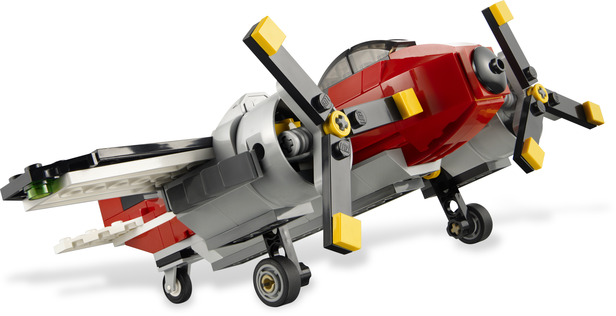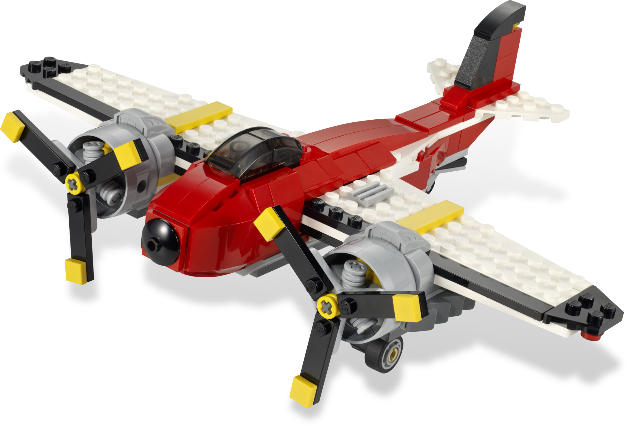 Zip through the air with this 3-in-1 plane! Dominate the skies with this immense twin propeller plane! Featuring rotating propellers, moveable landing gear and two powerful engines. Rebuild it into a sleek jet or a hovercraft with two turning fans.3 models in 1: rebuilds into a sleek jet or a hovercraft with 2 turning fansFeatures rotating propellers, moveable landing gear and two detailed enginesDeploy the landing gear!Rotate the propellers!Rebuild into a Verticle Take-Off Aircraft using instructions on Creator.LEGO.com!Measures over 8” (21cm) long and 10” (25cm) wideJet measures over 8” (20cm) longHovercraft measures over 4” (11cm) long