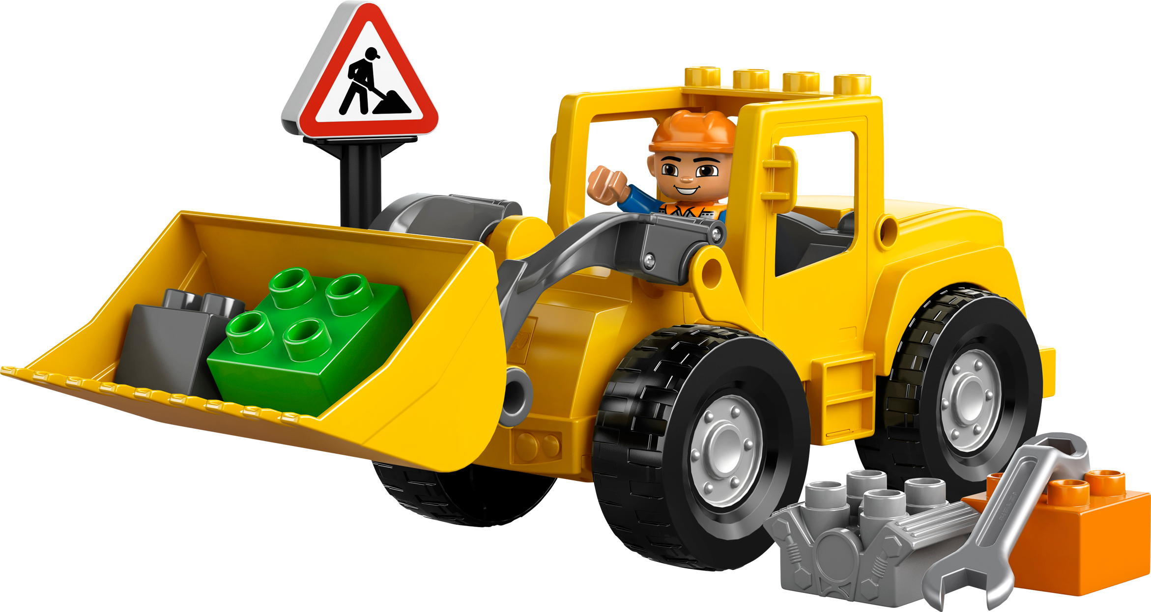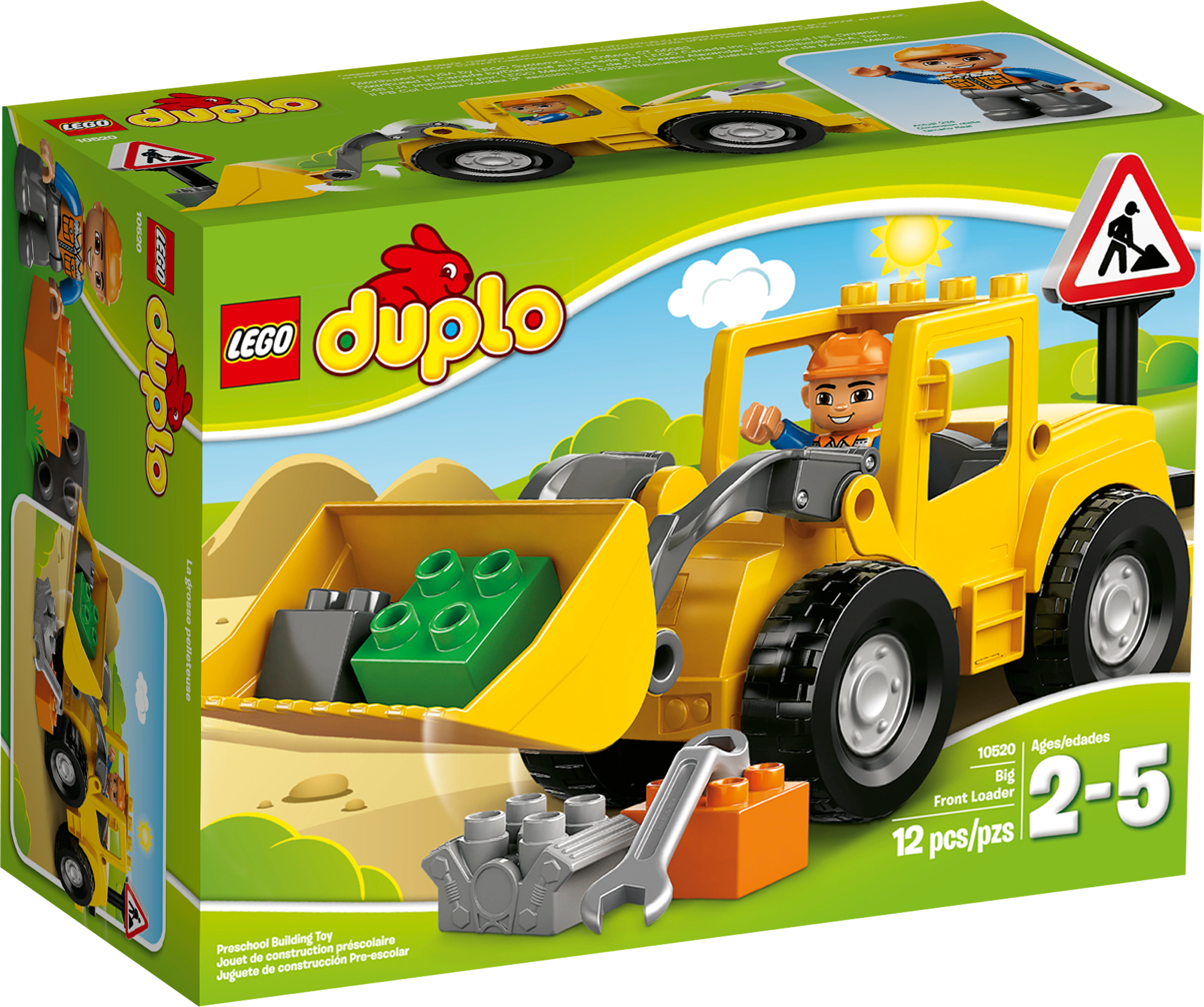 Lift lots of LEGO® DUPLO bricks with the Big Loader! Help the men at work! Set out the sign to keep the workman safe! Climb into the Big Loader and get ready to start the day! The Big Loader's rugged wheels and loading function make it easy for the workman to lift even the heaviest bricks! Includes workman LEGO® DUPLO® figure.•Includes LEGO® DUPLO® workman figure•Features lifting function, big wheels, road sign and assorted DUPLO bricks and spanner•Set out the sign and create a work zone!•Lift DUPLO bricks with the loader!•DUPLO products are fun and safe for younger hands•Big Loader measures over 4" (11cm) high, 10" (27cm) long and 3" (9cm) wide