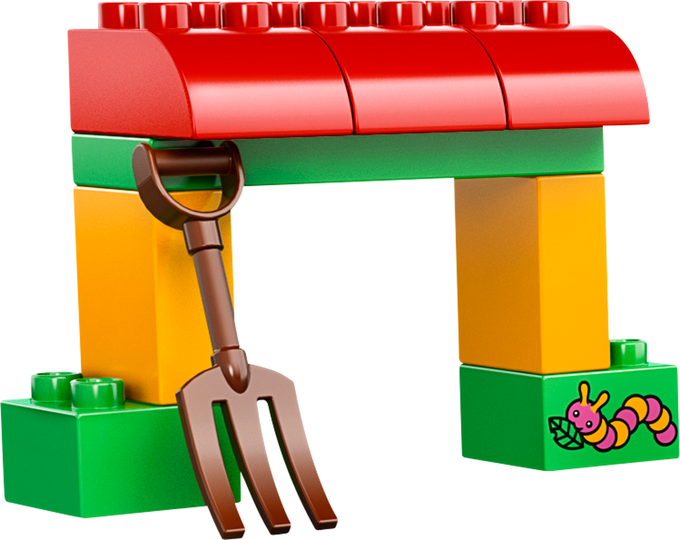 Deliver the food to the hungry cow with the Farm Tractor and trailer! Climb aboard the Farm Tractor and drive out to the shelter where the friendly cow is waiting to be fed. Lift the trailer bucket, offload the food and help the old farmer to give the cow a tasty meal before it settles down for a nap. And if the Tractor breaks down, fix it once more with the oil can and wrench. This fun set also includes a fence and a selection of bright, colorful LEGO® DUPLO® bricks. Includes an old farmer LEGO® DUPLO® figure.Includes an old farmer LEGO® DUPLO® figureFeatures a buildable DUPLO Tractor and trailer with tipping function, shelter and a fenceAccessories include an oil can, wrench, pitchfork, feeding trough and flower elementsAlso includes worm- and berry-decorated bricks and additional classic DUPLO bricksRaise the tipping trailer and offload the foodFix the Tractor with the oil can and wrenchFeed the cow to keep it happyHelp your child master basic building skillsEnjoy role playing with your child to learn about life on the farmLEGO® DUPLO® products are fun and safe for younger handsMakes an ideal addition to any DUPLO town collectionShelter measures over 3” (9cm) high, 5” (13cm) wide and 1” (5cm) deepTractor measures over 3” (9cm) high, 4” (12cm) long and 2” (7cm) wideTrailer measures over 2” (7cm) high, 5” (13cm) long and 2” (7cm) wideCow stands over 1” (5cm) tall
