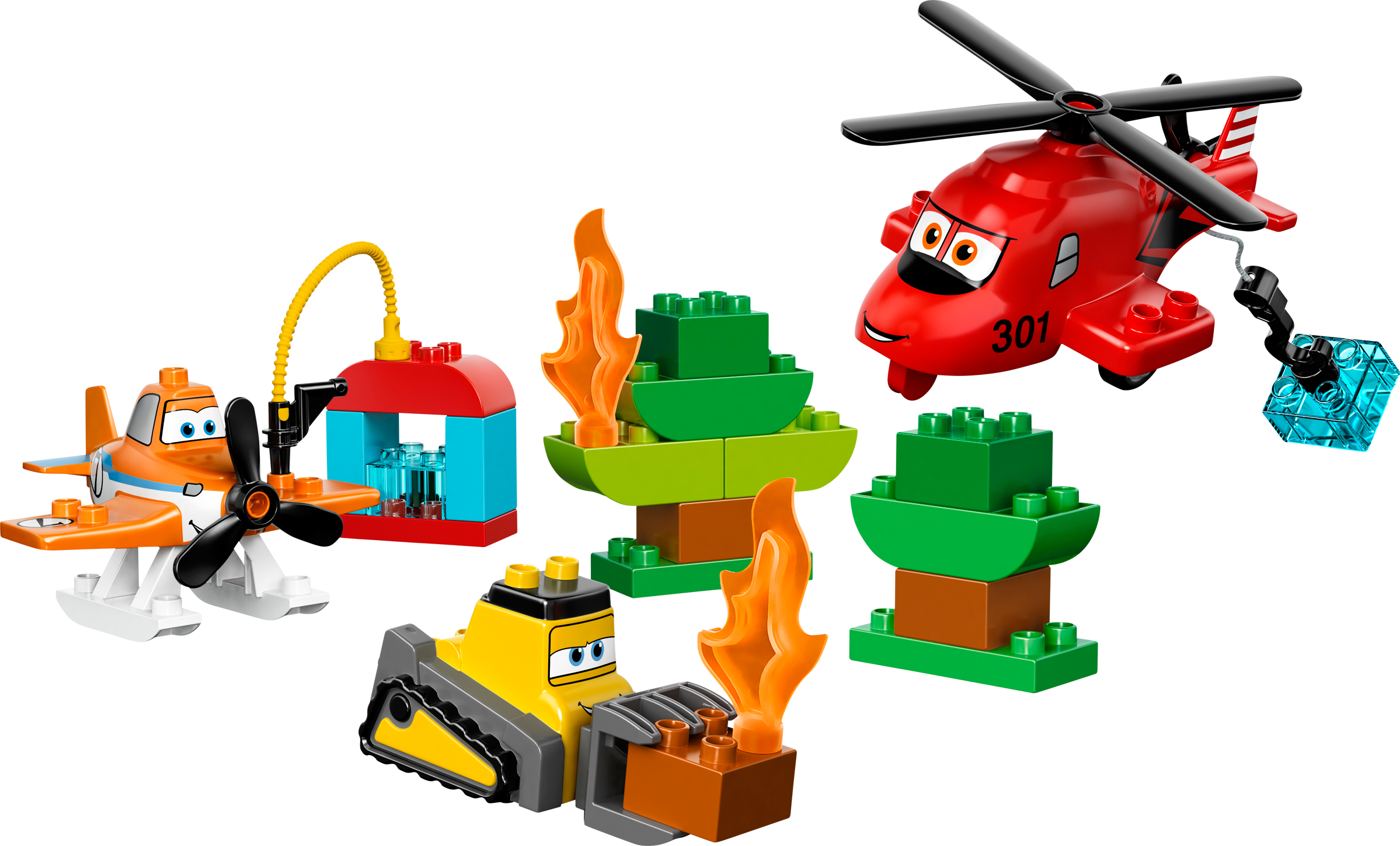 Help Dusty, Blade Ranger and Drip put out the forest fire! Join Dusty and his friends from Disney Planes: Fire and Rescue for exciting new adventures! The forest is on fire and Dusty, Blade Ranger and Drip must do everything they can to put it out. Fill up at the water station, then help Dusty and Blade extinguish the flames with the water bricks. Your child will love creating endless action-packed role play with this easy-to-build LEGO® DUPLO® set featuring familiar characters from the Disney Planes: Fire and Rescue animated movie.Includes plane Dusty, helicopter Blade Ranger and bulldozer Drip characters from Disney Planes: Fire and RescueFeatures a water station and buildable treesAccessories include 2 fire flames and 2 water bricksFill up with water at the station Swoop into action and put out the forest fireEasy-to-build models offer just the right level of building challengeCreate exciting stories around the iconic Disney Planes: Fire and Rescue charactersLEGO® DUPLO® products are specially designed to be fun and easy for younger handsDusty measures over 3" (9cm) high, 3" (10cm) long and 4" (12cm) wideBlade measures over 3" (9cm) high, 7" (18cm) long and 4" (12cm) wideDrip measures over 2" (6cm) high, 5" (14cm) long and 2" (6cm) wide