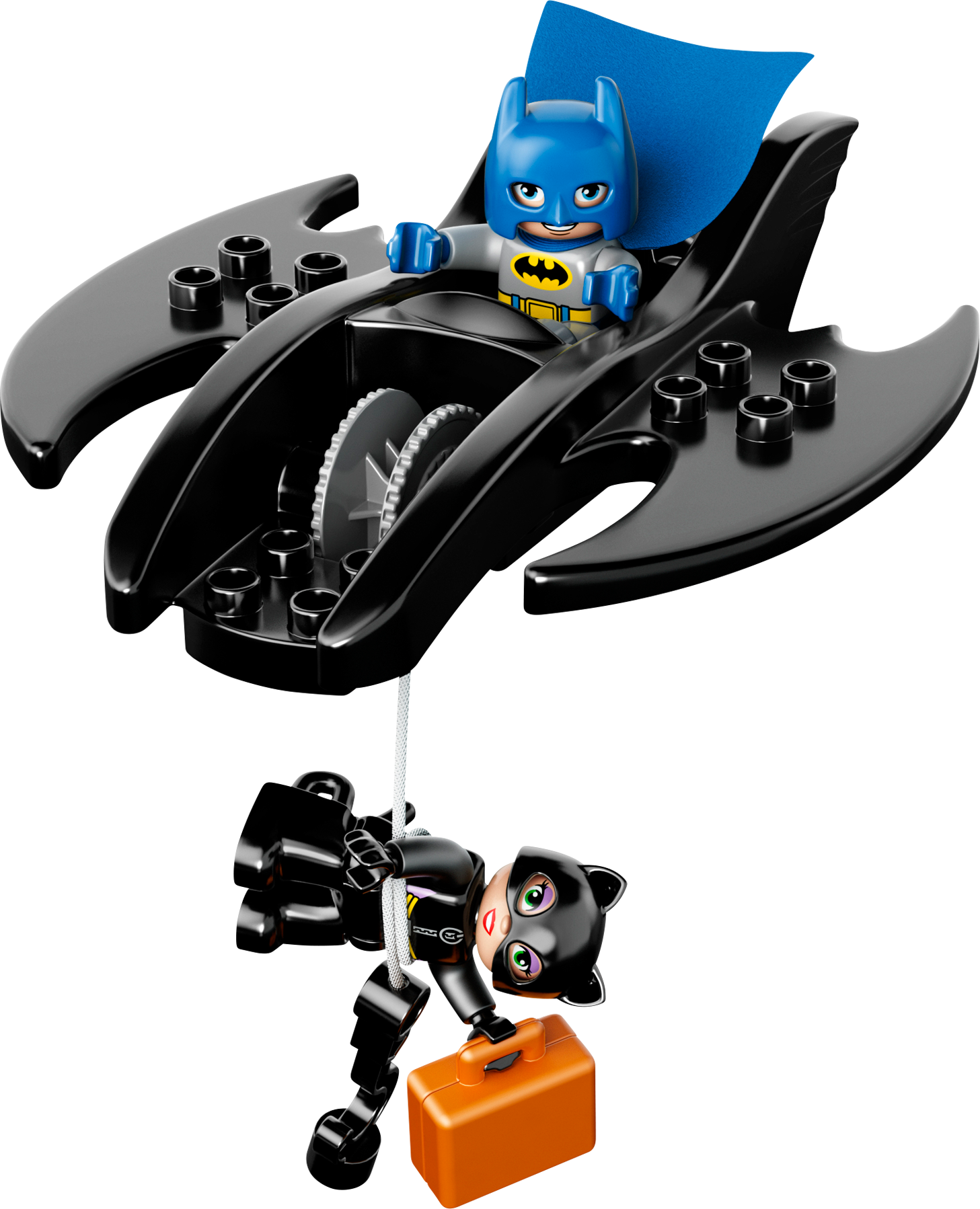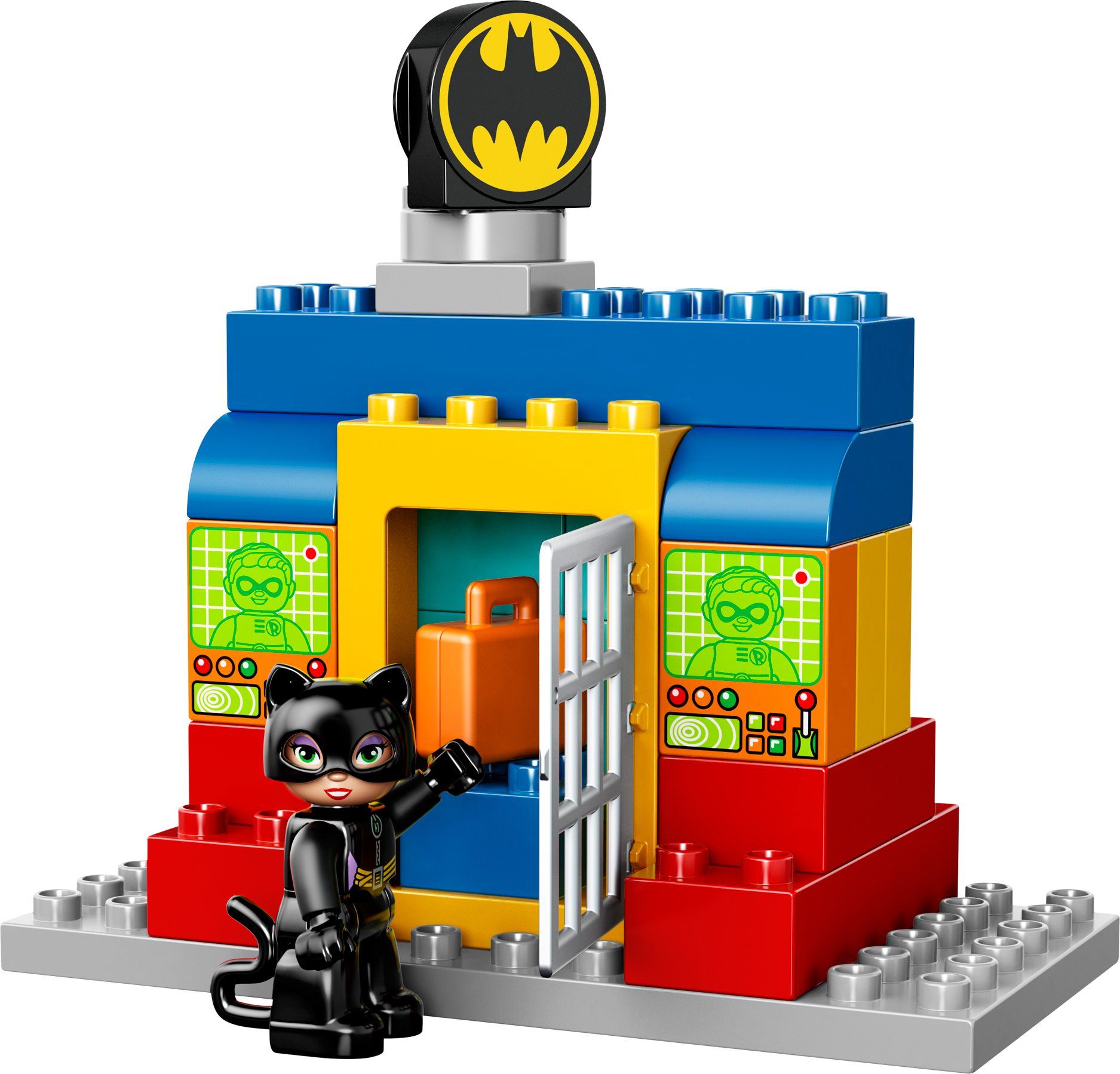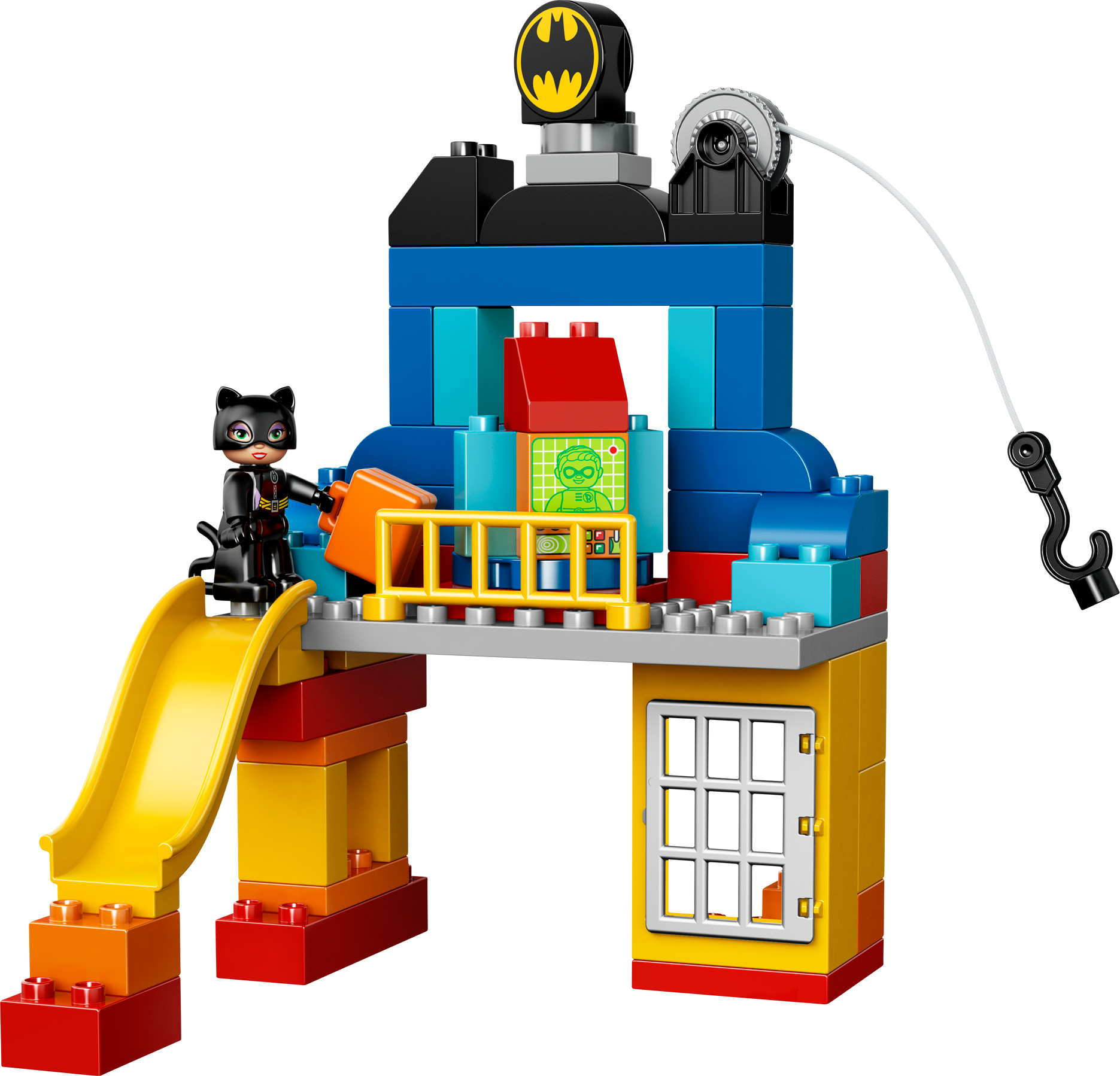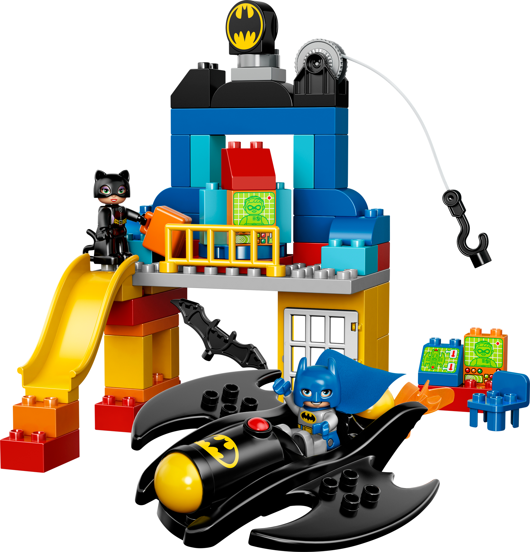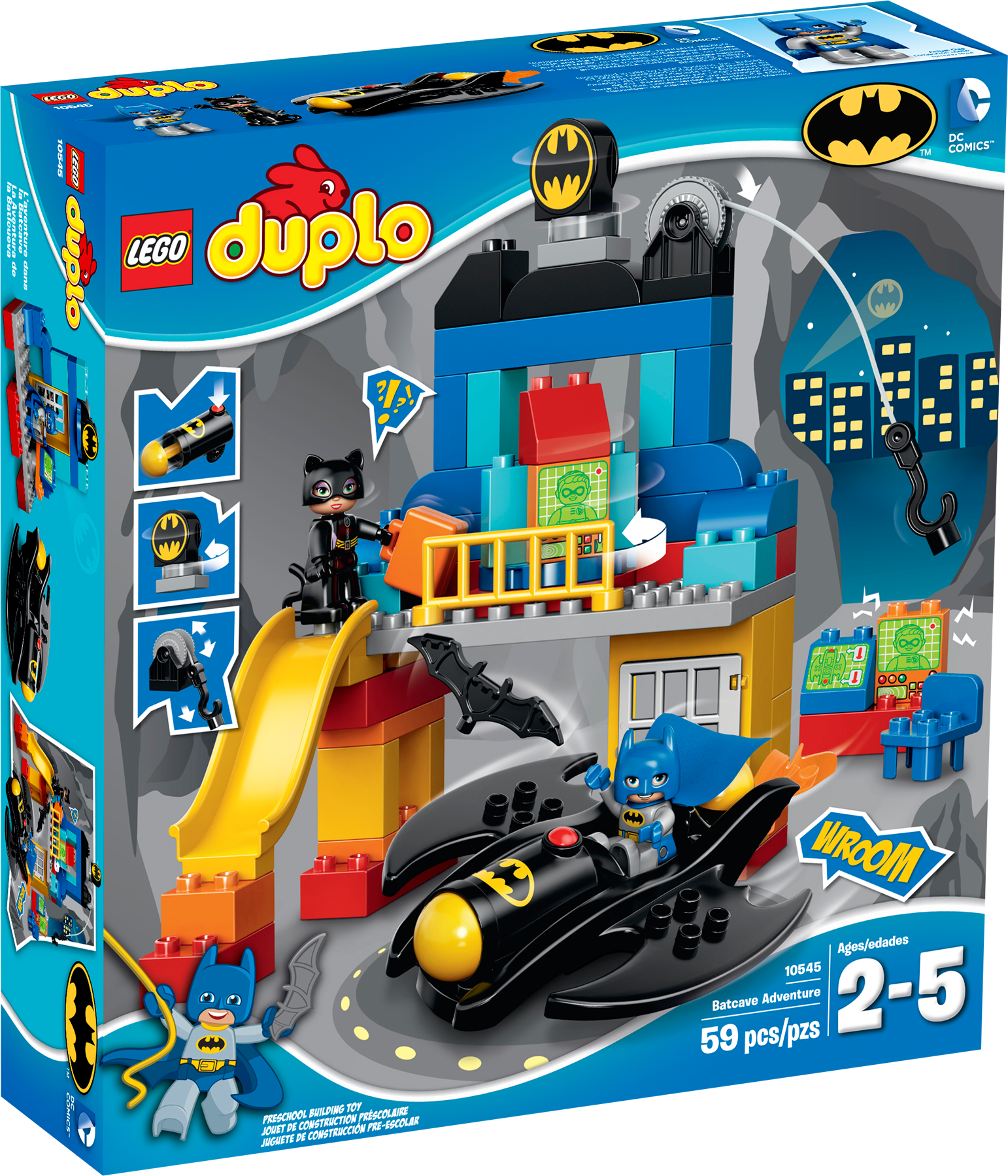 Catch Catwoman before she discovers Batman’s secrets in the Batcave! Enter the Batcave and get ready for some exciting adventures! Park the Batwing and get to work with all of the amazing Batman™ gadgets, but watch out – Catwoman is sneaking about! Help Batman™ quickly down the slide to capture her. Your child will develop creativity and building skills with this iconic, easy-to-build set featuring lots of extra bricks for extended play. Fire the imagination with endless super hero role play opportunities. Includes LEGO® DUPLO® Batman™ and Catwoman figuresFeatures buildable Batcave, Batwing and a cannonBatcave features an opening window, slide and a ropeAccessories include a Batarang, briefcase, fire element, and TV and computer screen decorated bricks to act as story starters Jump in the Batwing and fly Batman™ to the rescue!Find Catwoman sneaking aroundUse the rope to capture CatwomanWatch your child create endless adventures with these iconic DC Super Hero charactersHelp your child master building skills with this great modelLEGO® DUPLO® products are specially designed to be fun and safe for younger handsBatwing measures over 1" (5cm) high, 9" (25cm) long and 6" (16cm) wideBatcave measures over 11" (28cm) high, 7" (19cm) wide and 8" (21cm) deepTM & © DC Comics.(s14)