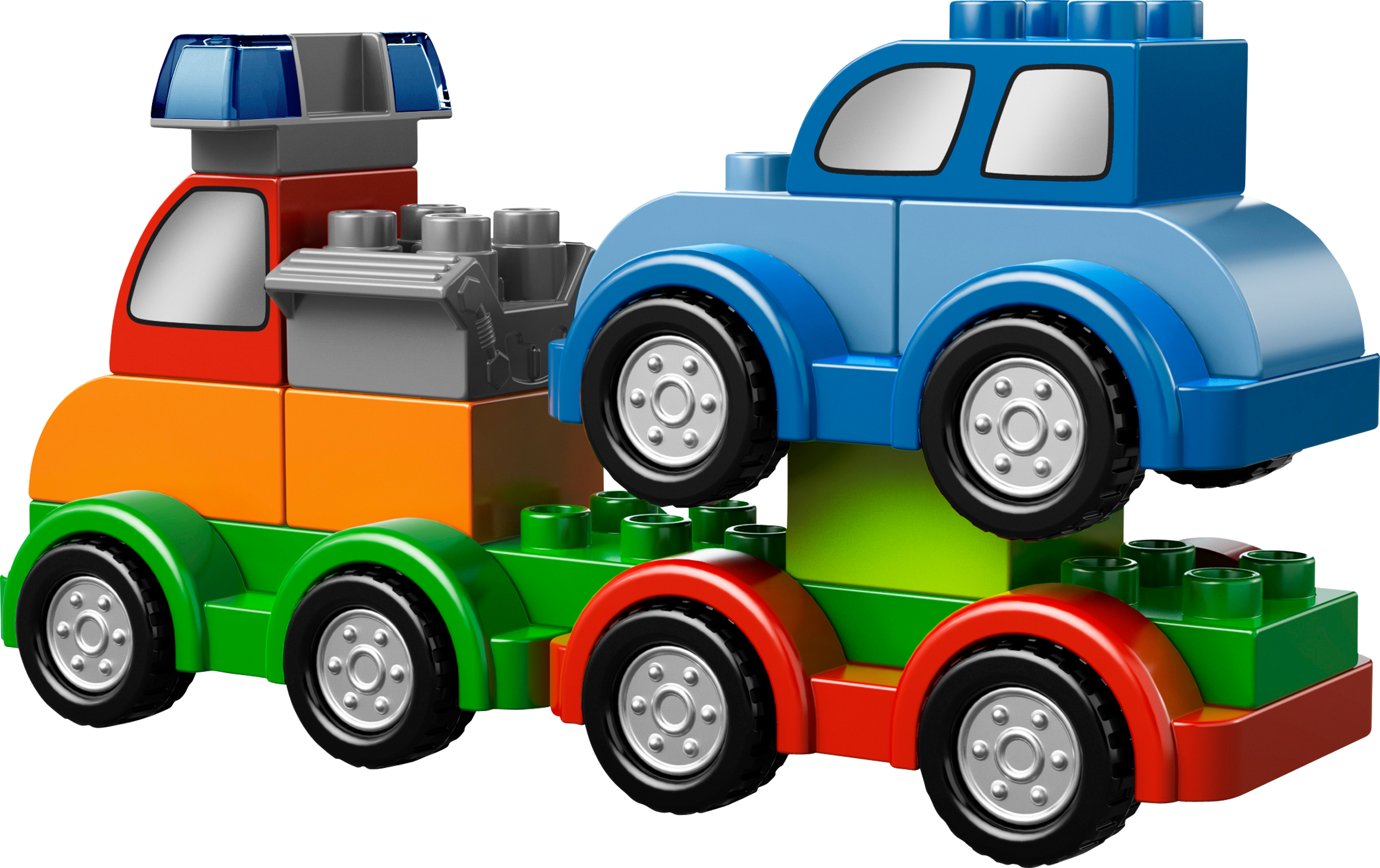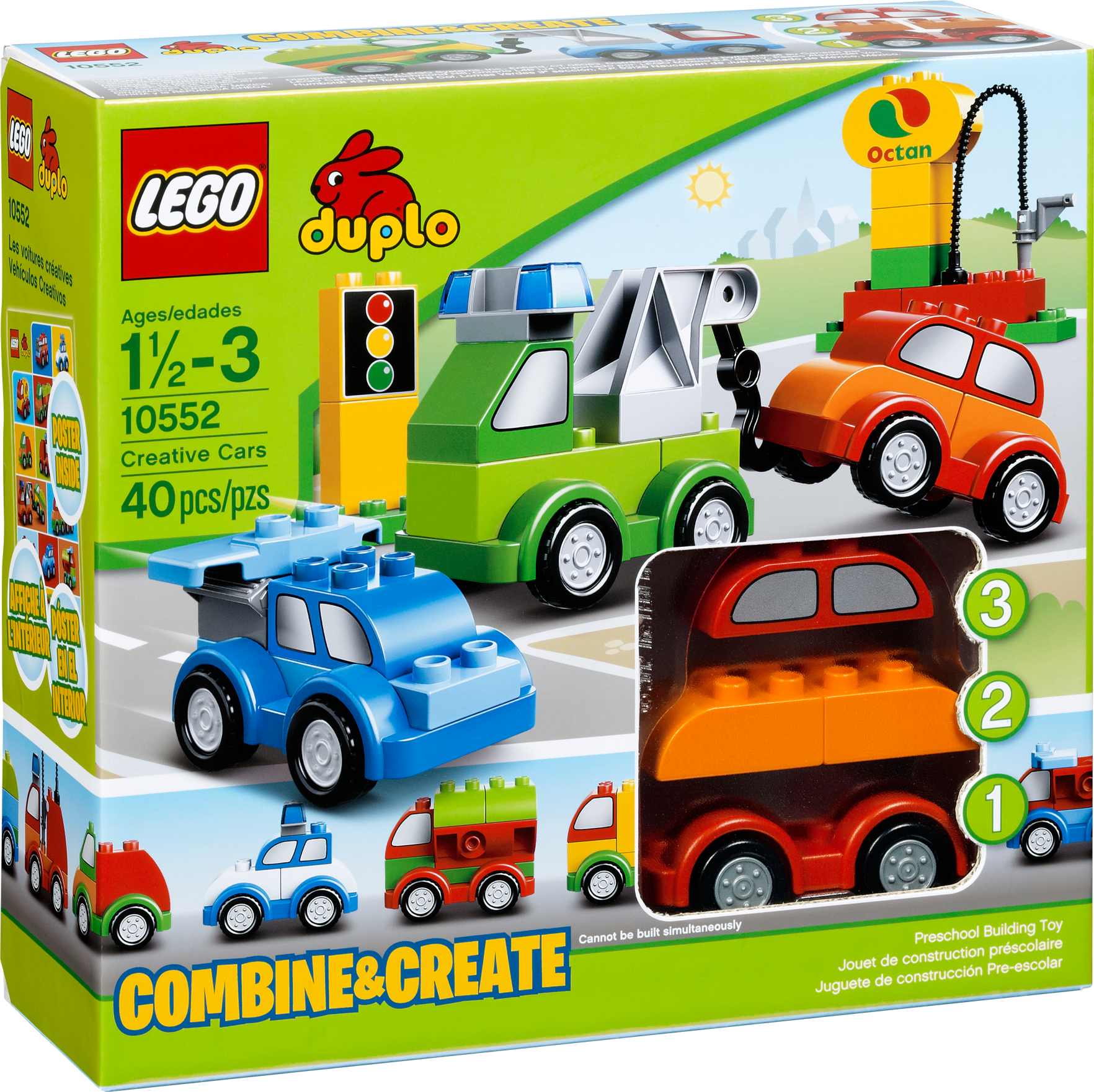 Combine and create cool vehicles! Zoom around town with the LEGO® DUPLO® Creative Cars set featuring over 40 colorful, vehicle-themed DUPLO bricks to build and rebuild the coolest cars! With the special Combine & Create concept, your child can create vehicles of all shapes and sizes by combining just a few colorful bricks. This great set includes 3 wagon bases, decorated window, traffic and gas station logo bricks, a hose, engine, crane, truck body, spoiler elements and other assorted bricks. A colorful building inspiration poster is also included.Features 3 wagon bases, decorated windows, traffic and gas station logo decorated LEGO® DUPLO® bricks, hose, engine, crane, truck body, a spoiler element and assorted DUPLO bricksCreate the coolest vehicles with just a few bricks!Combine and Create concept makes building easy!Includes building inspiration posterDUPLO products are fun and safe for younger hands