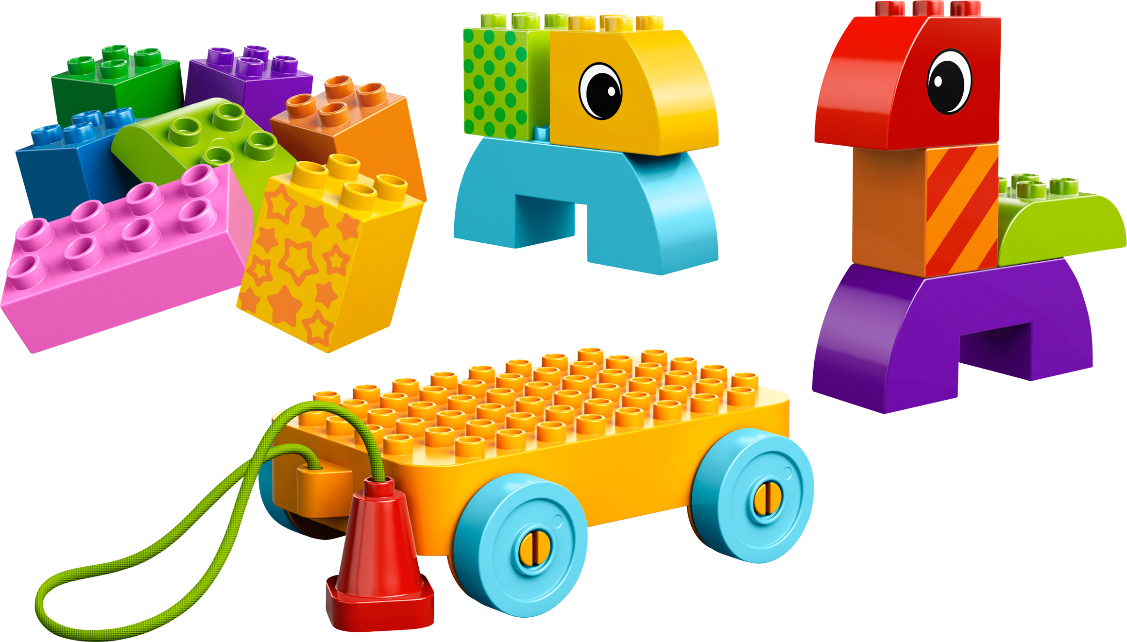 Construct and create a pull-along wagon! Let your young child explore, play and create with the all-new Toddler Build and Pull Along. Extra-large LEGO® DUPLO® bricks are the perfect introduction to creative building for toddlers. This collection of 15 brightly colored bricks and elements includes a pull-along wagon, decals and assorted extra-large bricks. All extra-large elements are fully compatible with standard DUPLO bricks and elements.Features pull-along wagonIncludes pattern, eye-decorated and assorted LEGO® DUPLO® bricks in bright colorsExtra-large DUPLO bricks are fully compatible with standard DUPLO bricks and elementsConnect, create and pull along!Build big DUPLO brick animals!DUPLO products are fun and safe for younger hands