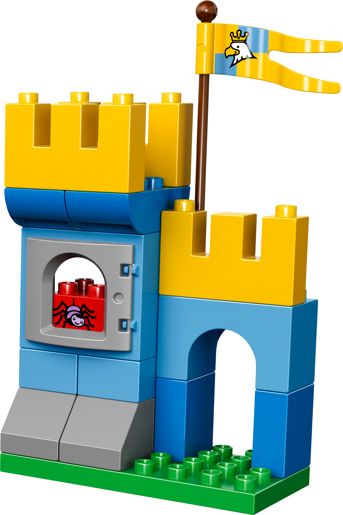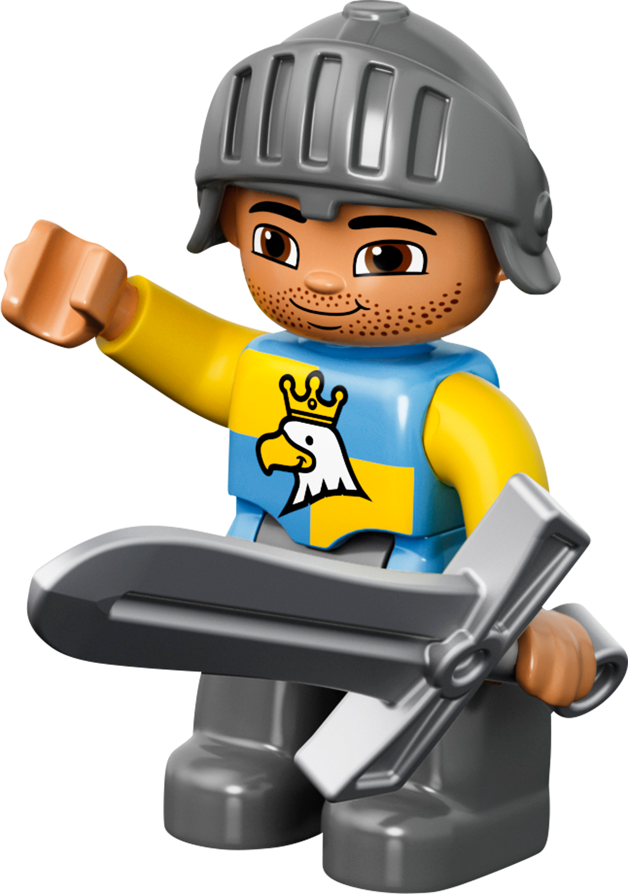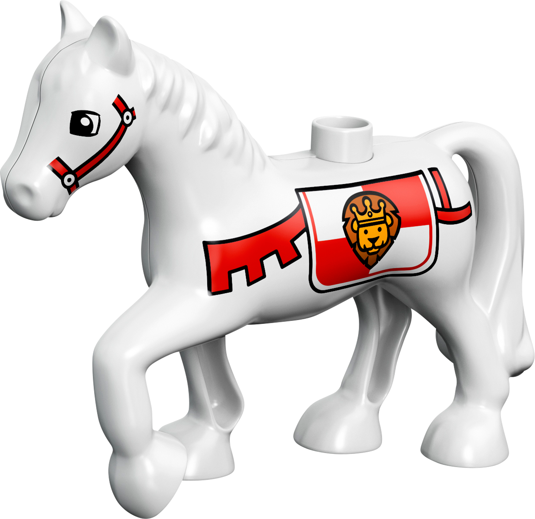 Launch an attack from the castle to steal the traveling knight’s treasure! Hide in the tree and launch apples from the catapult to seize the treasure from the traveling knight and his horse-drawn carriage! Then rush back to the castle tower to keep it safe and look out for intruders. Introduce young children to history and role-playing with this exciting, knight-themed set. They will love creating endless medieval stories and will master basic construction skills as they build and rebuild this model. Includes 3 knight LEGO® DUPLO® figures.Includes 3 knight LEGO® DUPLO® figuresFeatures a horse-drawn carriage, castle tower and an apple treeCastle tower features an opening windowAccessories include a catapult, flag, 2 swords, axe, apples and a treasure elementDecorated bricks with a spider and coins act as excellent story startersHide out in the apple tree and wait for the traveling knight to approachLaunch the apples from the catapult and steal the treasureClimb the castle tower to look out for intrudersHelp your child create imaginative play with a historical themeLEGO® DUPLO® products are specially designed to be fun and safe for younger handsHorse with carriage measures over 4" (11cm) high, 10" (27cm) long and 2" (6cm) wideCastle tower measures over 6" (17cm) high, 4" (12cm) wide and 2" (6cm) deepApple tree measures over 7" (19cm) high, 3" (10cm) wide and 3" (9cm) deepMakes an ideal addition to any LEGO® DUPLO® town collection