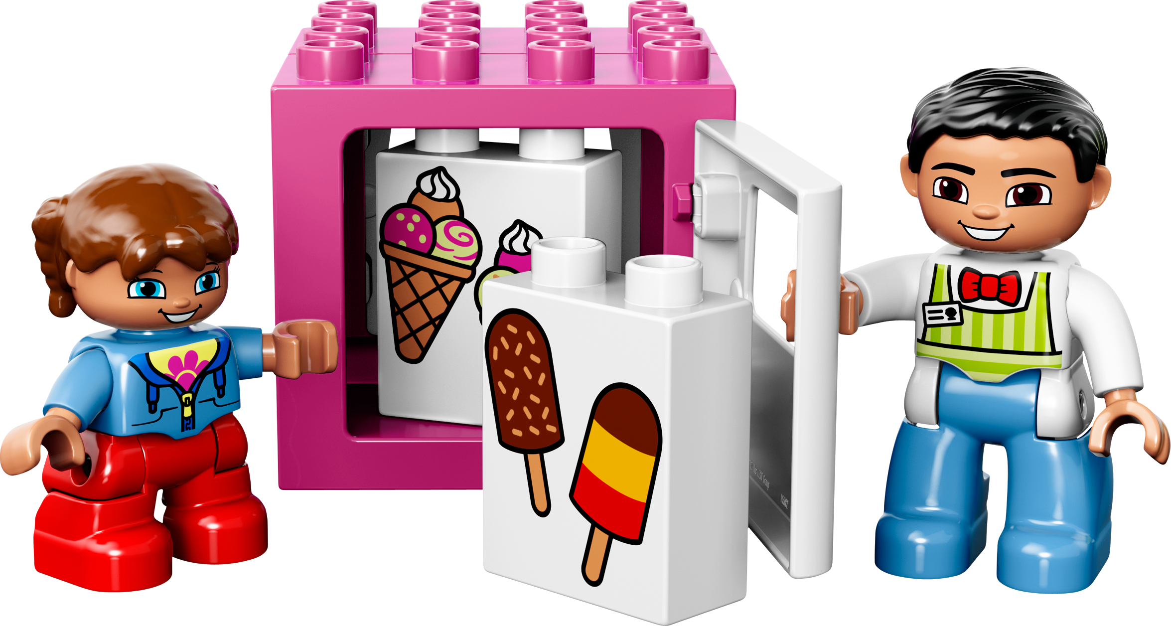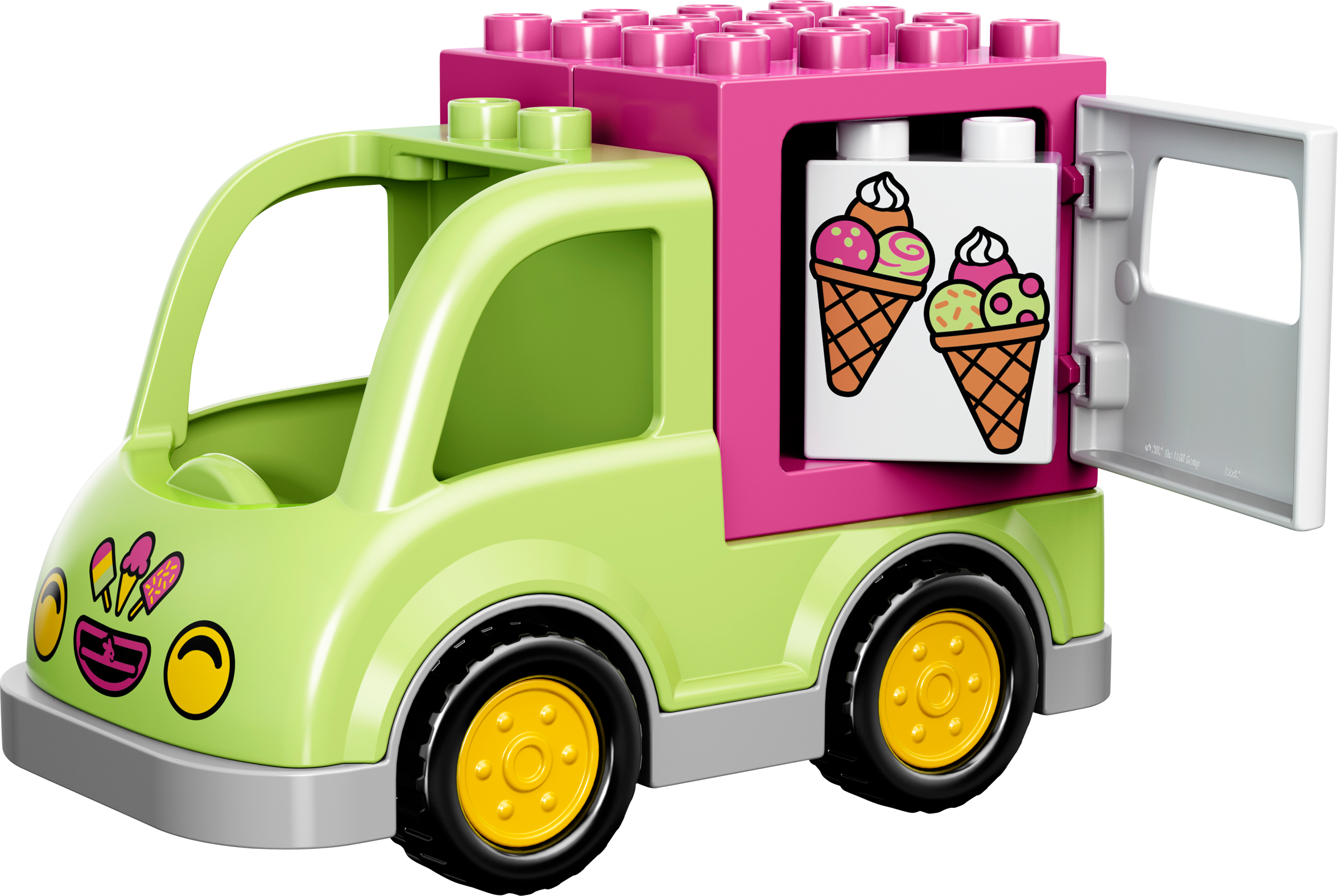 Run to catch the LEGO® DUPLO® Ice Cream Truck! Choose a delicious treat from the LEGO® DUPLO® Ice Cream Truck. Build the Ice Cream Truck and help the ice cream seller drive around looking for customers. Then serve the children with the delicious ice creams and popsicles as they pay, using the decorated bricks. Young children will love starting new stories as they learn basic building skills with the colorful LEGO DUPLO pieces, which are designed especially to be safe for little hands. Includes 2 LEGO DUPLO figures: an ice cream seller and achild. Includes 2 LEGO® DUPLO® figures: an ice cream seller and a child Features a buildable Ice Cream Truck in pink and pastel green Accessories include decorated bricks featuring money, ice creams and popsicles Create fun role play scenarios as children decide which delicious ice cream or popsicle they would like Teach young children about buying and selling, using the money decorated brick LEGO® DUPLO® products are specially designed to be fun and safe for younger hands Ice CreamTruck measures over 3" (10cm) high, 5" (14cm) long and 2" (7cm) wide Makes an ideal addition to any LEGO® DUPLO® Town collection