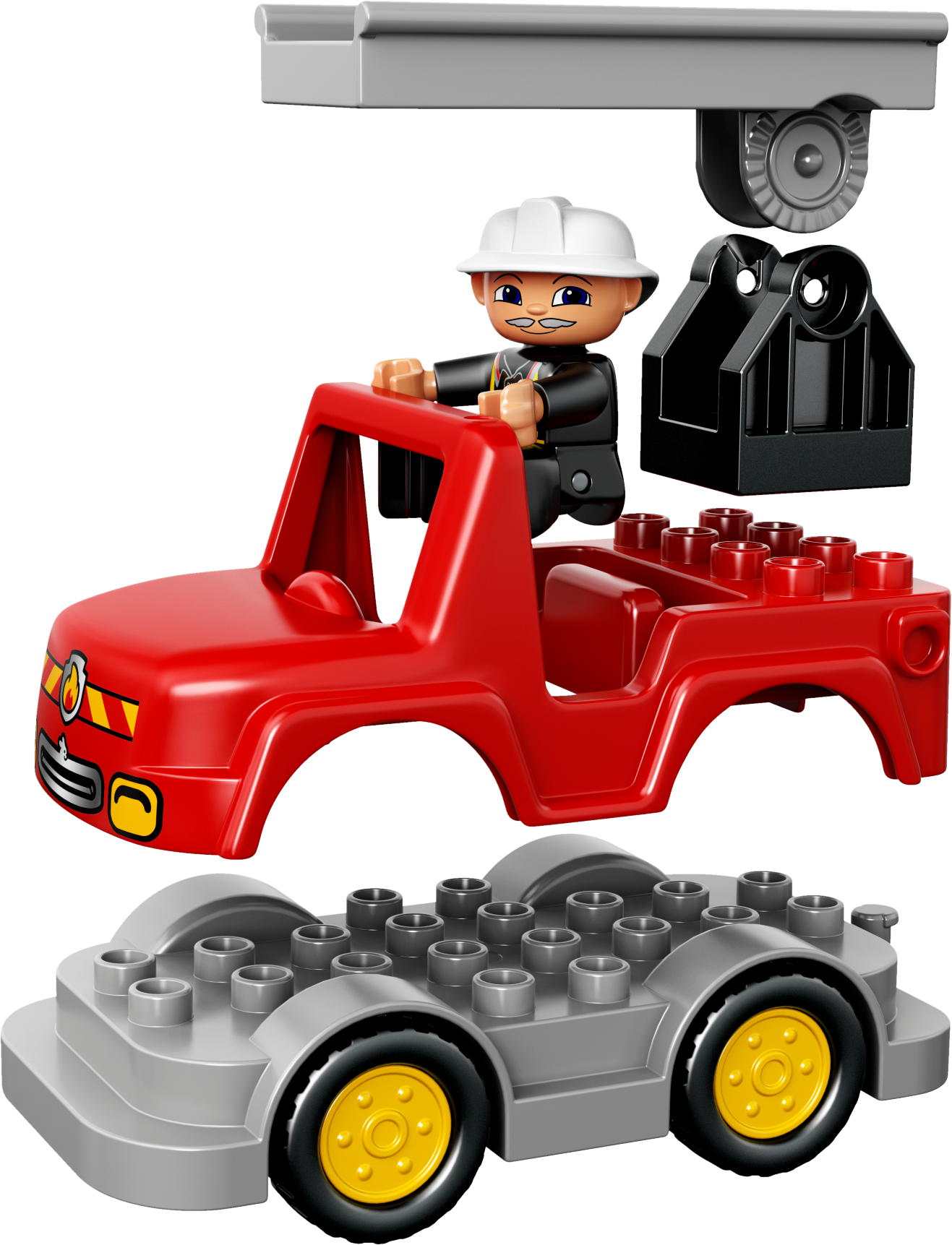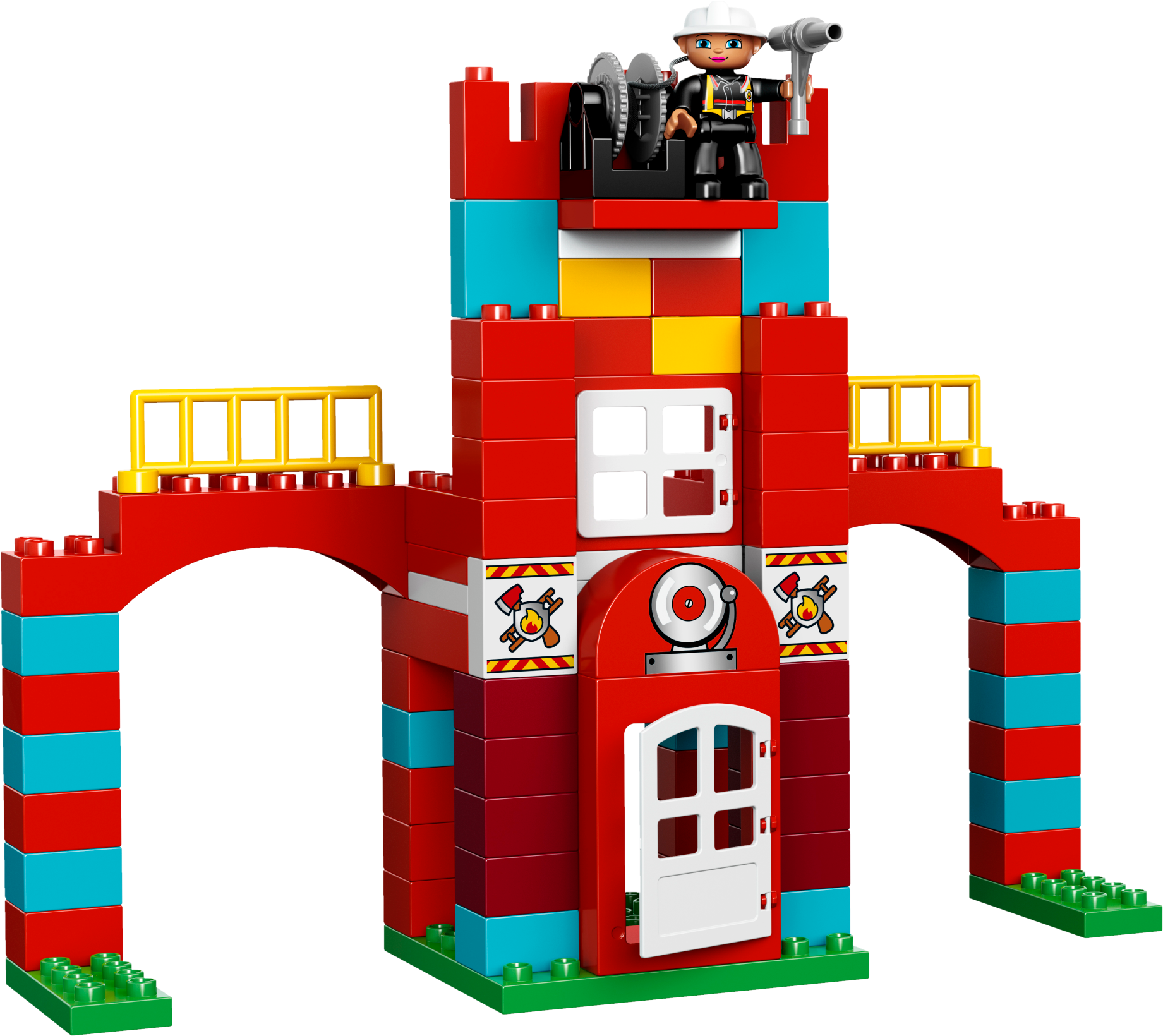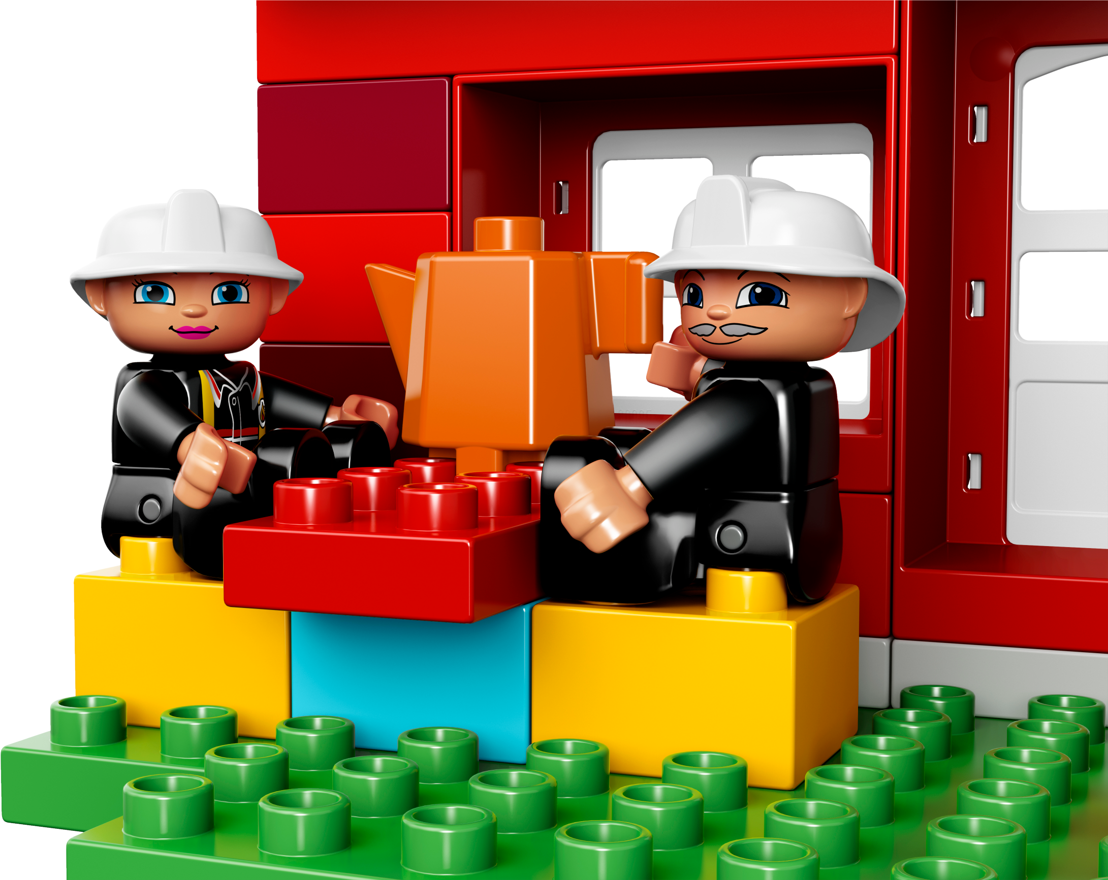 Join the firefighters on duty at the LEGO® DUPLO® Fire Station! Get set for action at the LEGO® DUPLO® Fire Station! Build the station and park the shiny red fire vehicles in their places, ready to go. Do a practice drill and put out the small fire in the station yard. When the fire bell rings, help the firefighters jump into the fire truck and fire car and speed to the rescue! This set will keep any little firefighter entertained as they master early building skills and enjoy exciting vehicle and role play. Use this set to talk to your child about what firefighters do, and the importance of fire safety. DUPLO bricks are brightly colored and designed especially to be safe for smaller hands. Includes 2 firefighter LEGO DUPLO figures. Combine with the 10591 Fire Boat and 10592 Fire Truck for even more fire rescue adventures. Includes 2 firefighter LEGO® DUPLO® figures Features a Fire Station building with garages and opening window and door Features 2 vehicles: a fire truck with retractable hose and a fire car with moving ladder Accessories include a fire-bell-decorated brick, wrench, flame, axe and a water hydrant Get the fire vehicles ready for their next rescue Practice putting out a fire in the station yard Create endless role play action at the Fire Station with this exciting new set Helpyoungchildren master basic building skills Use this set to talk to your child about fire safety LEGO® DUPLO® products are specially designed to be fun and safe for younger hands Makes an ideal addition to any LEGO® DUPLO® Town collection Combine with 10591 Fire Boat and 10592 Fire Truck for even more fire rescue adventures Fire station building measures over 7" (19cm) high, 17" (44cm) wide and 3" (9cm) deep Fire truck measures over 4" (12cm) high, 5" (14cm) long and 2" (7cm) wide Fire car measures over 3" (10cm) high, 5" (14cm) long and 2" (7cm) wide