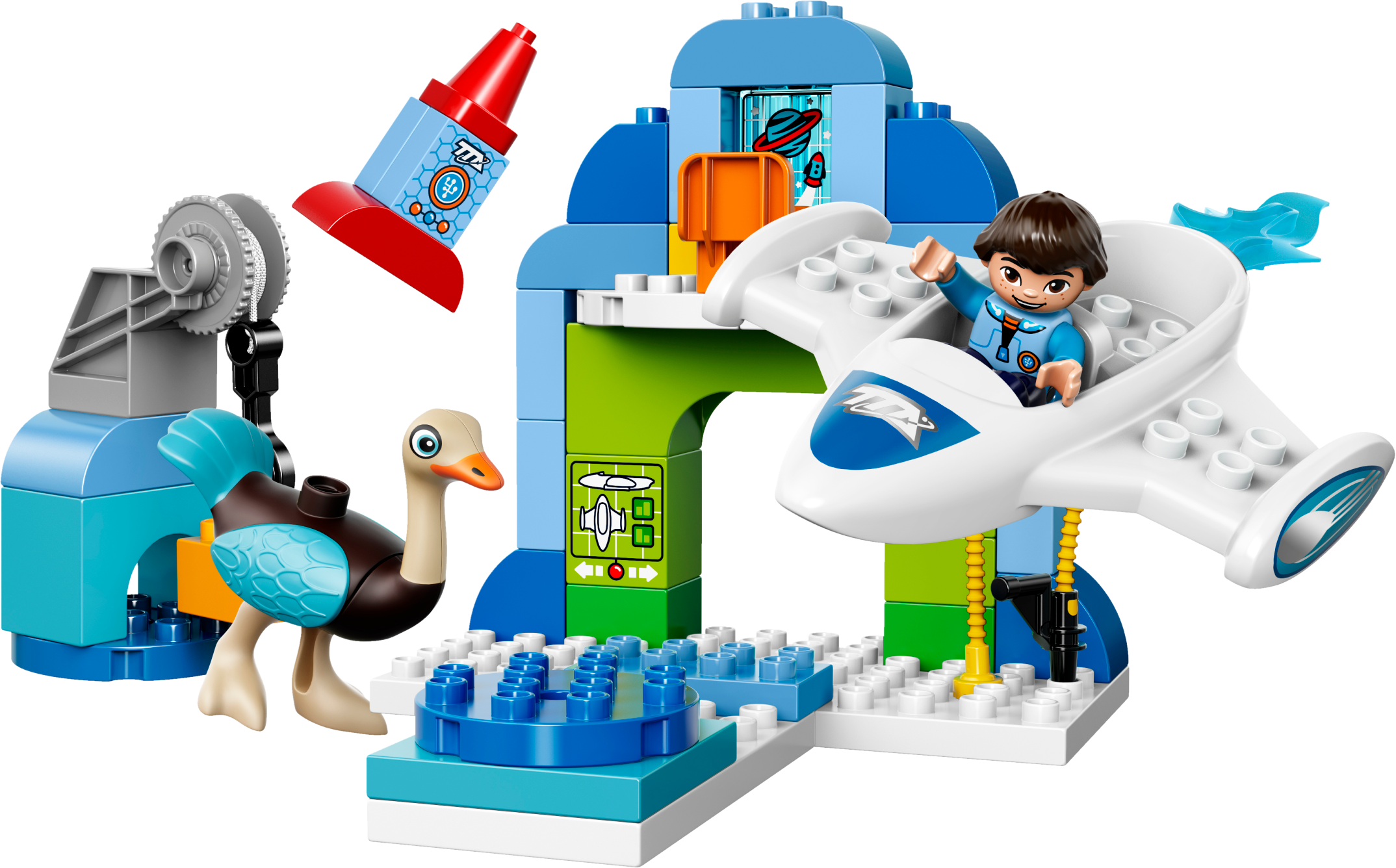 Cruise away on a space mission in Miles’ Spaceship! Little astronauts will love Disney Miles From Tomorrowland. The outer space environment provides endless opportunities for exploration and role play, with all the different tools any space explorer could need. Young children can build and rebuild the Stellosphere Hangar then blast off in Miles’ Spaceship! Includes a LEGO® DUPLO® figure: Miles plus Merc. Includes a LEGO® DUPLO® figure: Miles plus Merc. Features the Stellosphere Hangar with a spaceship, turntable, crane, rocket, refueling pump and a chair. Prepare Miles’ amazing spaceship for takeoff. Create your own space stories with these lovable Disney characters. With the hangar, crane, turntable and rocket to build, there are so many opportunities for creativity in this set. Accessory elements include a blue flame and bricks decorated as a planet monitor, spaceship monitorand rocket decoration as story starters. Help your child master basic construction skills by building and rebuilding this simple model. LEGO® DUPLO® products are specially designed to be fun and easy for little hands. Space station measures over 7” (19cm) high, 7” (19cm) wide and 8” (22cm) deep. Spaceship measures over 6” (17cm) long, 5” (15cm) wide and under 1” (2cm) high. Combine with 10824 Miles´ Space Adventures for even more Disney Miles From Tomorrowland fun.