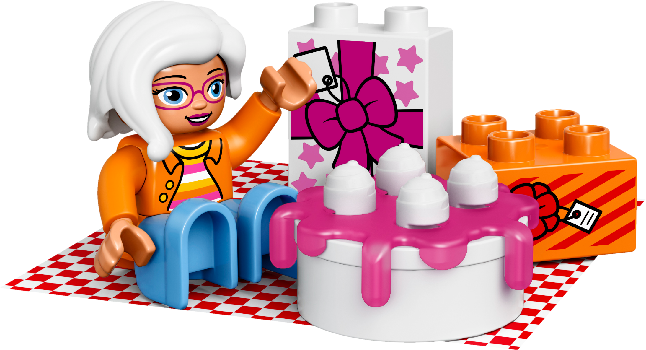 Play out real-life scenarios in LEGO® DUPLO® My Town: a recognizable world with modern DUPLO figures. Young children will love taking balloons and a birthday picnic to the park with Grandma. Have fun with the seesaw that really rocks, build the tree and spread out the blanket—it’s the perfect place for a picnic! Includes three DUPLO figures plus a squirrel figure. Includes three LEGO® DUPLO® figures: a grandma and two children, plus a squirrel figure. Features a rocking seesaw and a buildable tree. Includes bricks decorated as birthday gifts and nuts for the squirrel as story starters. Accessory elements include a fabric blanket, balloons, cake and a flower. Use the modern characters, accessories and play starters in this set to help your child practice everyday scenarios and routines. Toddlers will love helping Grandma rock the seesaw in the park and setting up a birthday picnic. LEGO® DUPLO® products are specially designed to be safe and suitable for small hands. This set offers an age-appropriate build and play experience for ages 2-5. Seesaw measures over 1” (3cm) high, 4” (12cm) wide and 1” (3cm) deep. Tree measures over 3” (10cm) high, 2” (6cm) wide and 2” (6cm) deep. There are several My Town products to collect and play out your child’s everyday life in a recognizable LEGO® DUPLO® world.