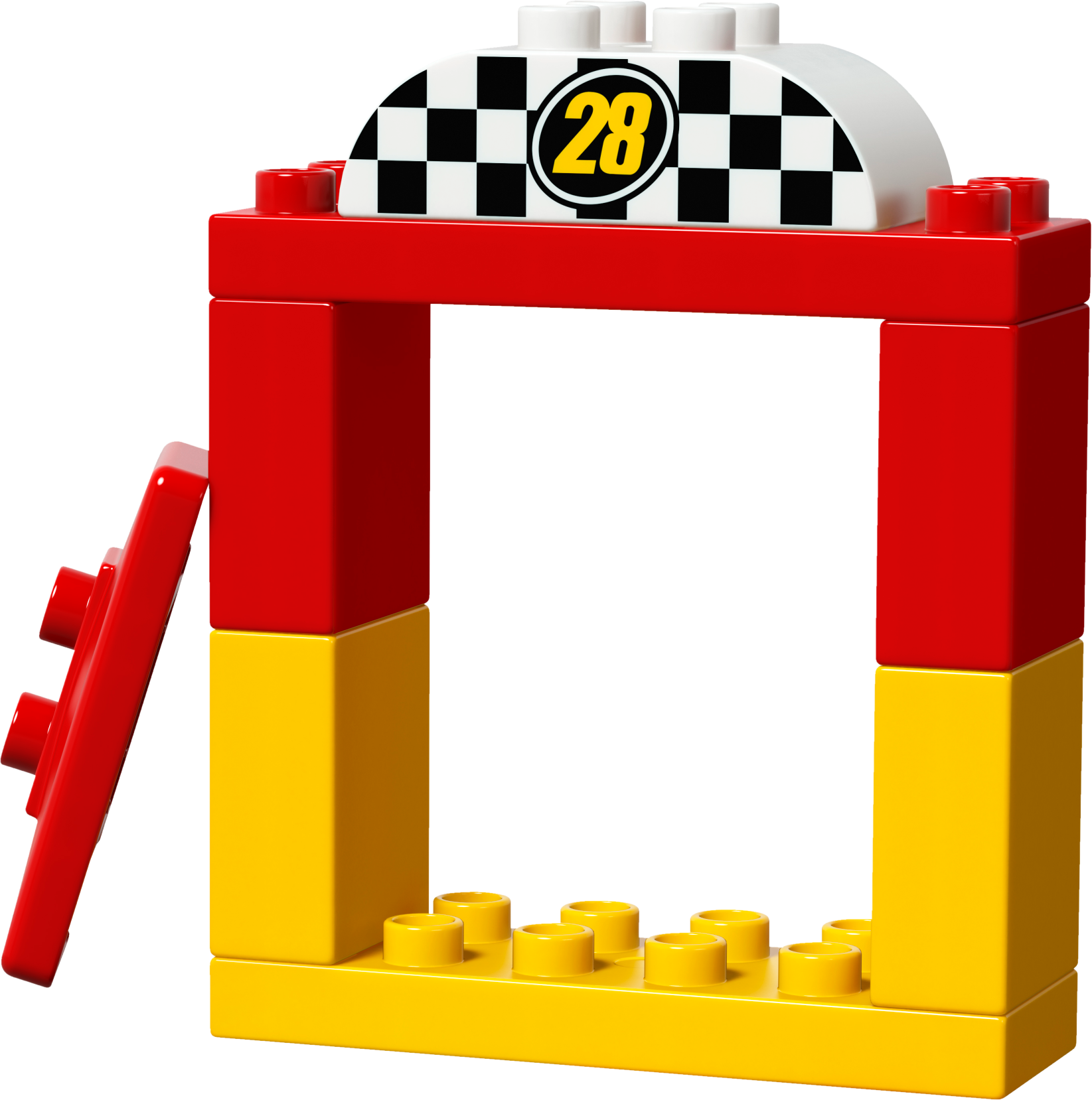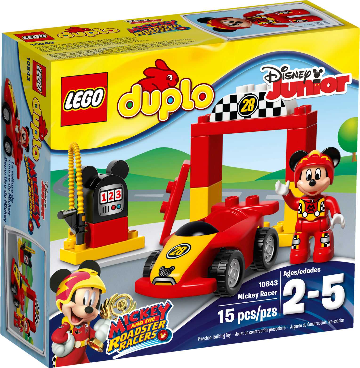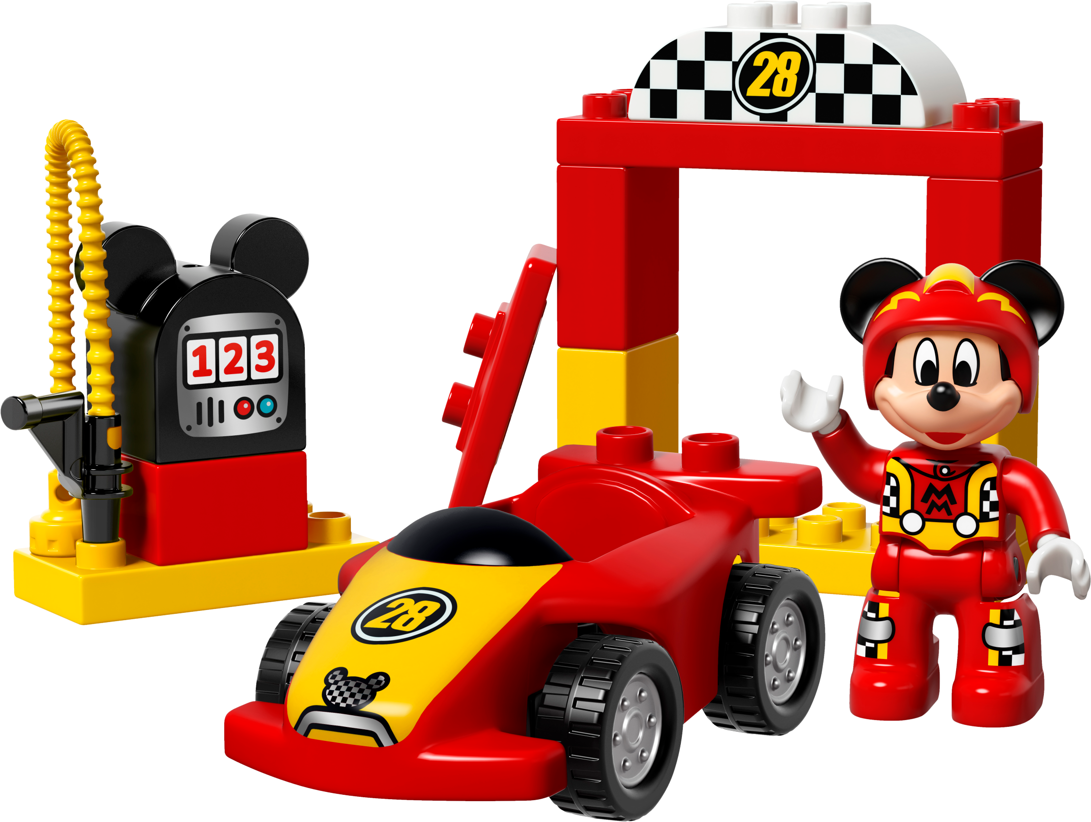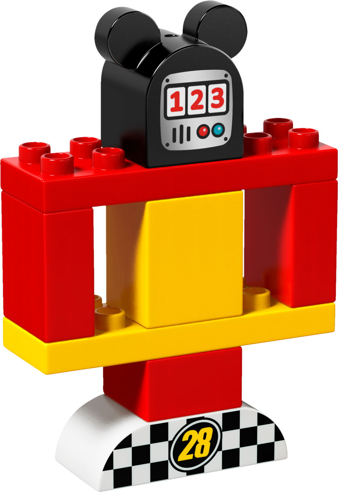 Little Mickey Mouse fans will love to build and rebuild the race car, starting gate and Mickey-shaped gas pump. Help them develop fine motor skills as they play at filling up the car and tuning it up for the race. Then line up at the starting gate—and he’s off! Includes a LEGO® DUPLO® figure: Disney’s Mickey Mouse. Includes a LEGO® DUPLO® figure: Disney’s Mickey Mouse in his racing outfit. Features a buildable roadster with removable spoiler, starting gate, and a gas pump shaped like Mickey Mouse’s iconic ears. Includes bricks decorated as a gas pump and a starting gate sign. Help your little Mickey and the Roadster Racers fan build and refuel the car ready for Mickey Mouse’s next big race. Create endless exciting racing stories with this iconic Disney character. Help your child master basic construction skills with this easy-to-build model. LEGO® DUPLO® products are specially designed to be fun and easy for little hands. Mickey Mouse’s roadster measures over 1” (4cm) high, 4” (11cm) long and 1” (5cm) wide. Starting gate measures over 4” (11cm) high, 3” (9cm) wide and 1” (3cm) deep.