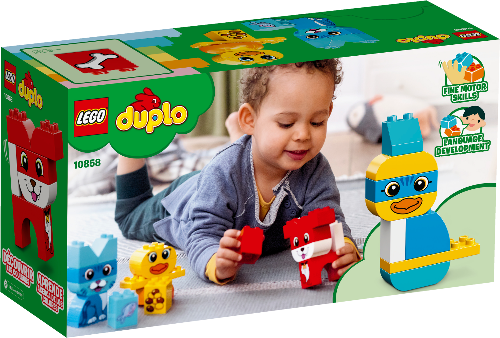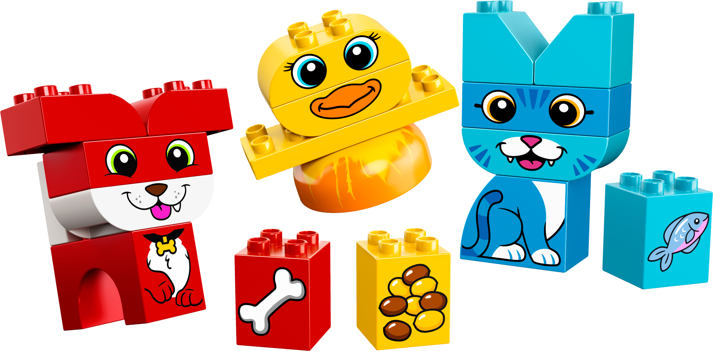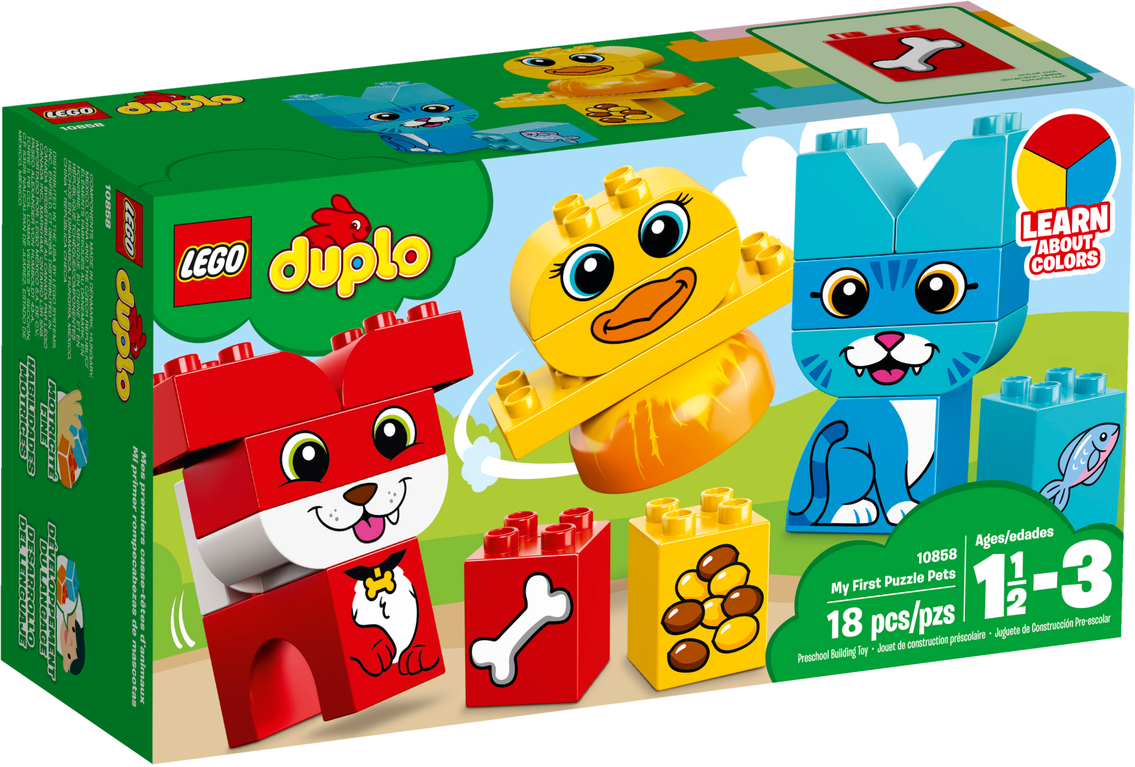 Help your child build these colorful 3-D puzzles out of chunky LEGO® DUPLO® bricks. Preschoolers will love sorting these baby bricks into 3 different colors, and seeing what animal they can build in each color. Use the decorated bricks to start stories and develop language as they learn what different pets like to eat. DUPLO bricks are specially designed to be fun and safe for small hands.