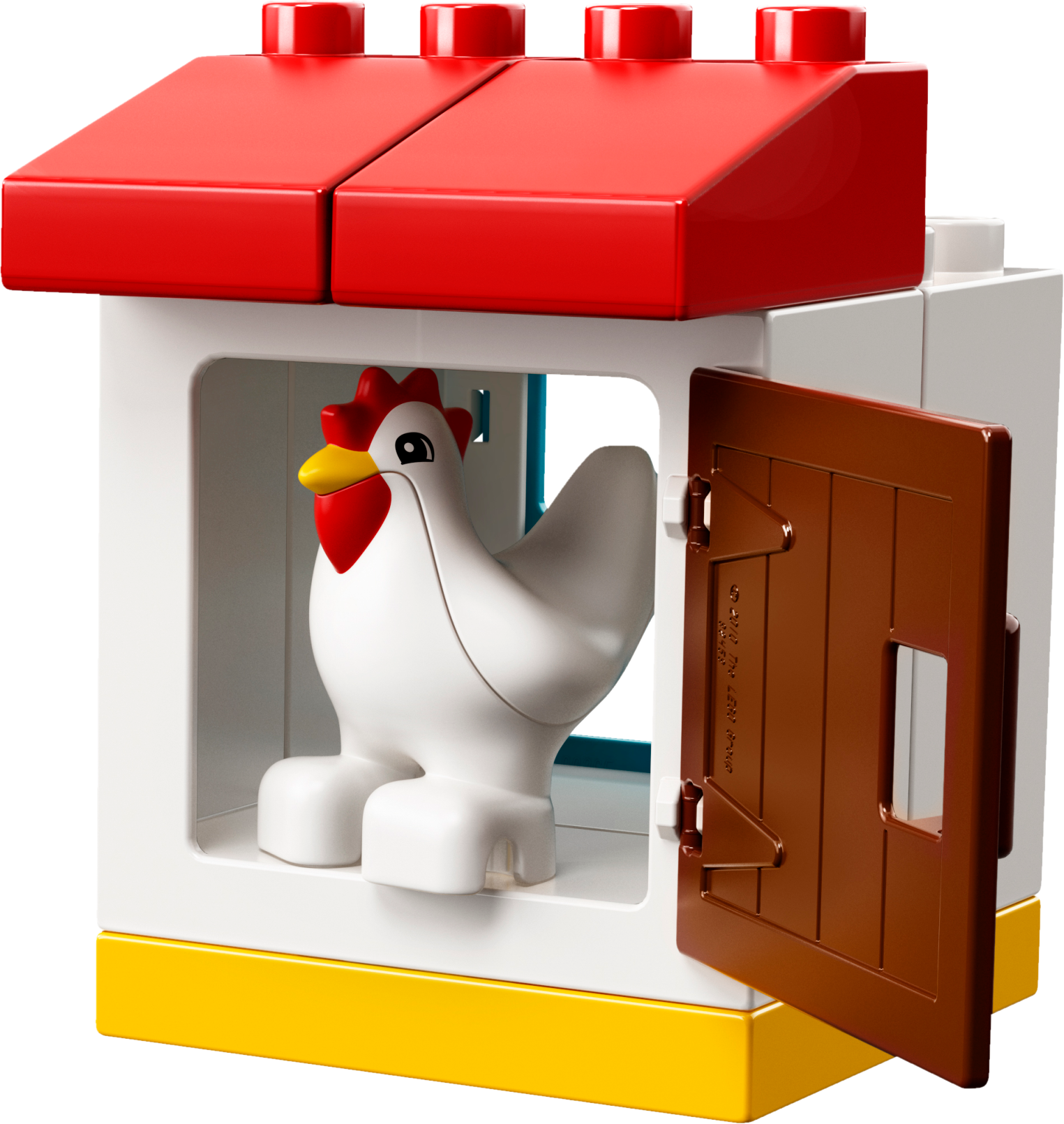 Features a chicken coop with opening door.
