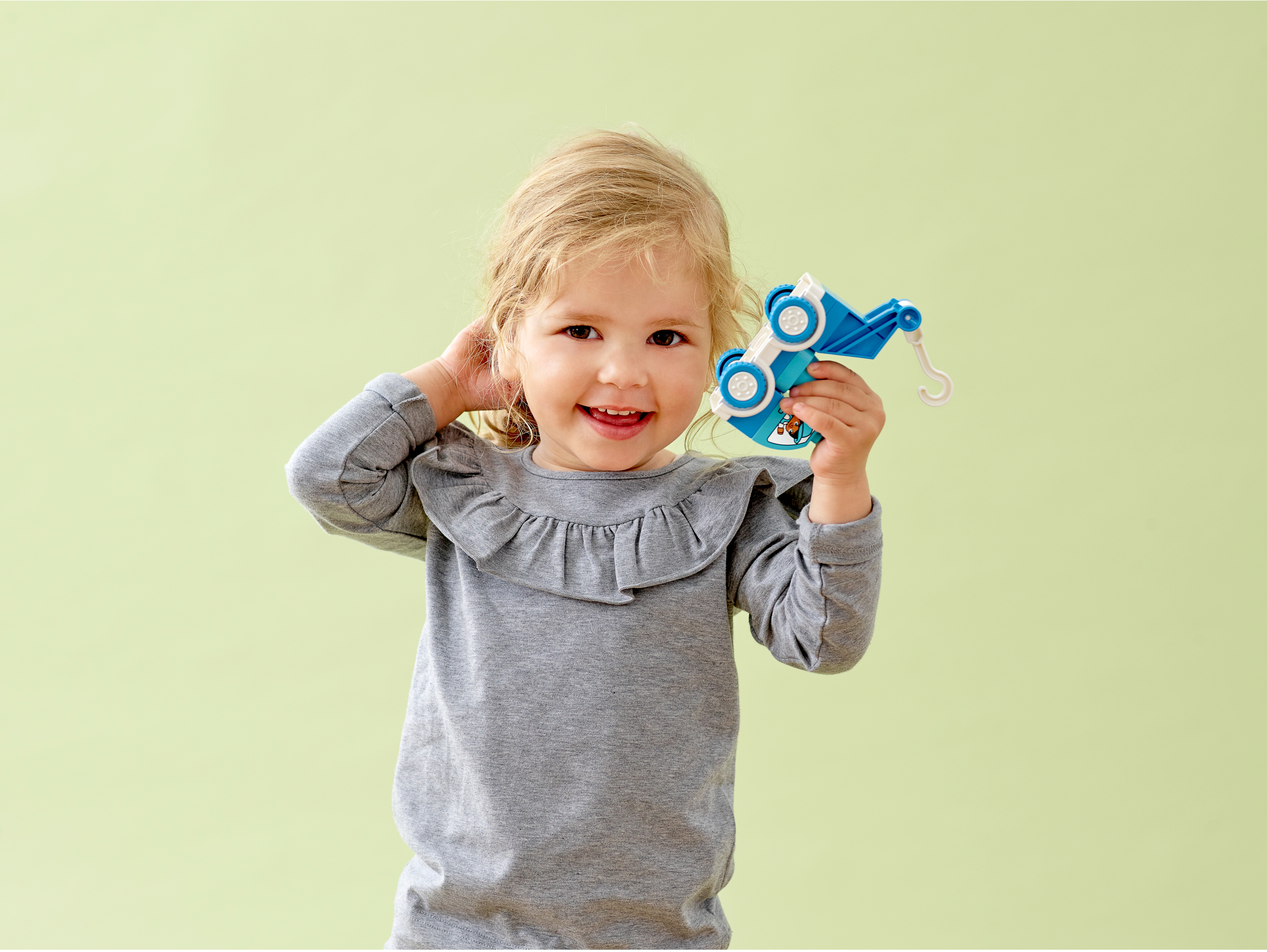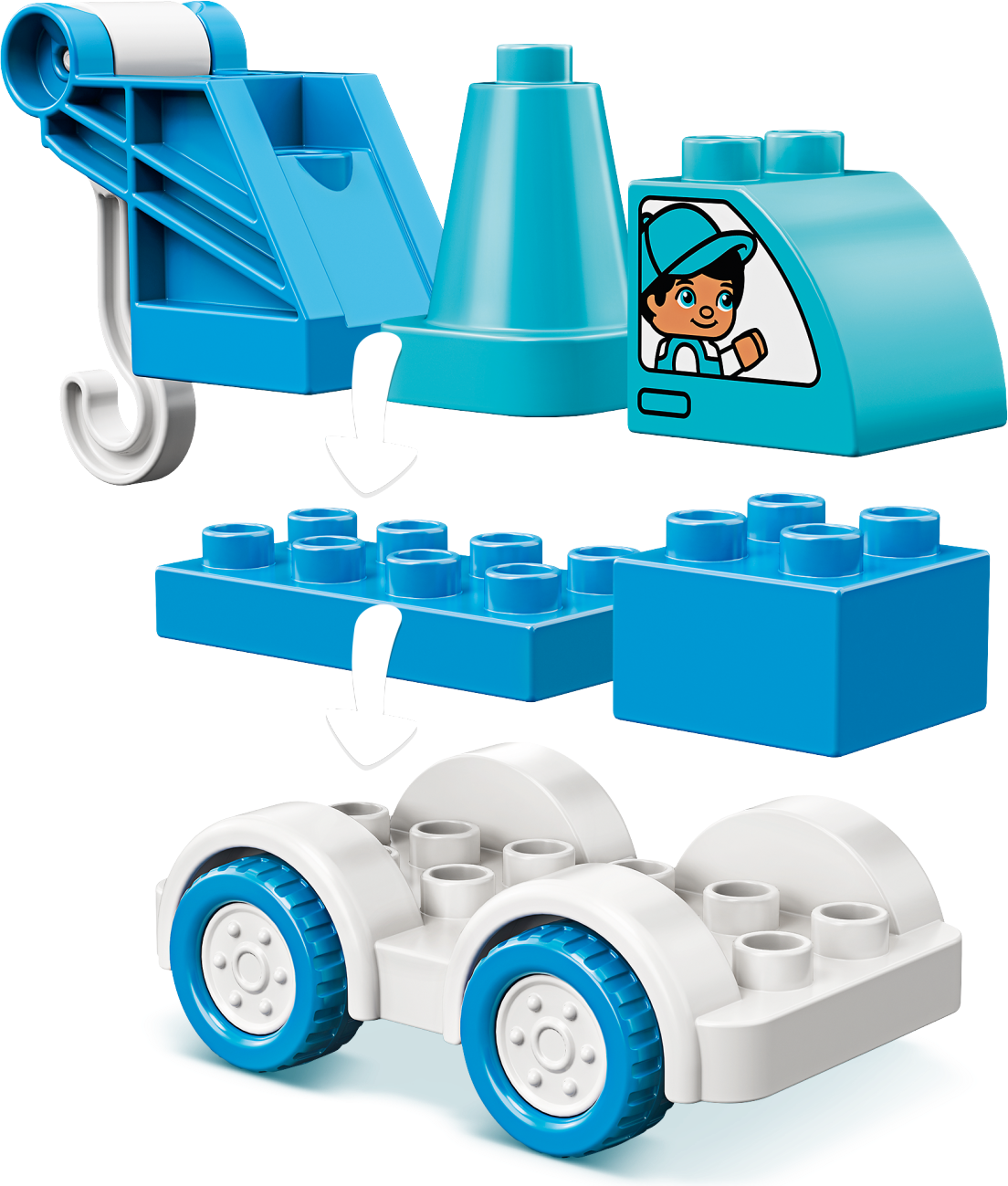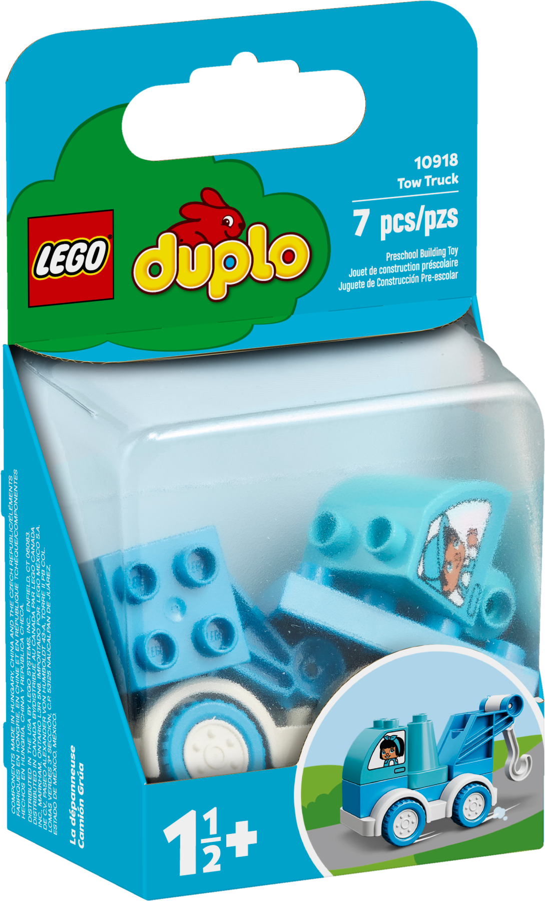Toddlers will pass all kinds of developmental milestones as they drive the blue tow truck to its next rescue mission! This small construction vehicle is a great first LEGO® toy to inspire young minds.Kids’ tow truck learning toyThis cute, push-along tow truck with adjustable crane is a great way for toddlers and parents work together as a team to help others in difficulty. Kids can push the truck to the scene of the emergency, then use their fine motor skills to position the cone then raise and lower the crane hook. With boy and girl decorations in the windows of the tow truck, this fun toy teaches kids how to work together as a team to get the job done.Educational construction toys for toddlersWith LEGO® DUPLO® playsets, preschoolers and parents can share precious developmental moments. Designed to give toddlers the best toys for their needs, LEGO DUPLO sets deliver open-ended play that encourages kids' self-expression and learning.As toddlers push the blue tow truck to its next rescue mission, they learn all about working together as a team to help others and get the job done! Great kids’ first construction and developmental toy.This LEGO® DUPLO® starter set includes a 4-wheel, push-along tow truck with boy and girl passenger decorations in the windows and a crane with a hook for kids to raise and lower as they carry out rescues.Toddlers can drive the tow truck to the scene of the emergency, move the crane's hook up and down, then assist anyone in need of help. There are endless exciting rescue missions to role-play!Any little car-lover or roadside superhero will want to get their hands on this push-along tow truck playset. Great Christmas, birthday or any-other-day gift for kids aged 18 months and up.The tow truck measures over 3” (9cm) long, 2” (7cm) high and 2” (6cm) wide – the perfect size to take the imaginative play wherever kids go. Combine with other LEGO® DUPLO® sets for even more fun.The LEGO® DUPLO® Tow Truck is fueled by kids’ imaginations – so no batteries are needed to enjoy endless tow-truck adventures.The tow truck fun starts straight from the box. Simple instructions provide ideas and inspiration to help parents and toddlers maximize the fun and developmental benefits from this versatile toy.LEGO® DUPLO® playsets unlock preschoolers' imaginations with building, learning and open-ended play. Designed to inspire young minds, the playsets feature familiar scenes, fun characters and easy-to-handle pieces.Ever since 1969, LEGO® DUPLO® playsets have met the highest industry standards, which ensures they are consistent, compatible and connect and pull apart easily every timeAt The LEGO Group, we drop, squash, twist, heat, bite, bend, scratch and stretch LEGO® DUPLO® bricks and pieces to make sure every building set for kids meets the highest global safety and quality standards.