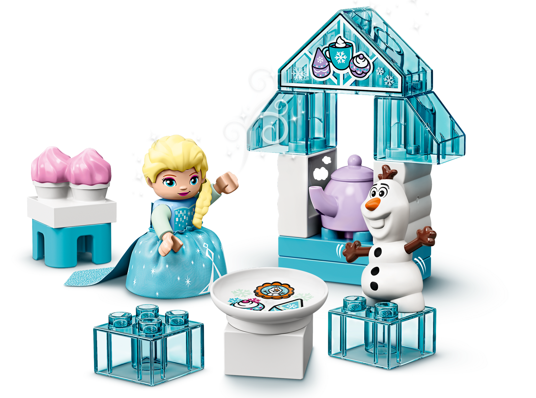 This versatile Disney Frozen building toy for toddlers provides a world of play and educational possibilities.Playful, buildable learning toy for young kids and Frozen fans!While they have fun, toddlers progress toward key developmental milestones. They relate to Elsa and Olaf, so role-play boosts emotional development. They can role-play a range of scenarios, from a tea party to hide and go seek among the ice blocks, which develop their creative and visual-spatial awareness. Each piece is easy for little hands to pick up and place, so kids can rearrange the set to create stories of their own – great for imagination and fine motor skills.LEGO® DUPLO® starter sets and developmental toysThese charming buildable playsets combine iconic themes, familiar settings, well-known characters and toddler-friendly bricks to stimulate preschooler development with creative fun. As play progresses from acting out simple scenes to role-playing make-believe stories, parents can join in and share precious moments with their children. Inspire imaginative adventures and playful learning with Disney’s Elsa and Olaf from the blockbuster Frozen movies. The fun starts straight from the box – the developmental benefits last a lifetime! Disney’s Elsa and her adorable snowman friend, Olaf, are playing in the snow and building an icehouse! With a teapot, hot chocolate and cakes on the table, the scene is set for a super-cool tea party! Children can explore imaginative fun with Disney's Elsa and Olaf. As they role-play endless adventures, they also build their creative-thinking, fine-motor, visual-spatial and emotional skills. A great LEGO® starter set for budding builders and little Disney Frozen fans. With safe, toddler-friendly pieces, this buildable imaginative playset makes a great Christmas, birthday or any-other-day gift for kids aged 2 and up. With the assembled ice house measuring over 3” (12cm) high, this captivating construction playset is big enough for serious play and small enough to pack up and take wherever kids go. No batteries needed. Because it’s powered solely by kids’ imaginations, this great developmental toy boosts critical thinking and problem-solving skills. It gives kids control over the action… and the fun never ends! Open the box and the imaginative role-play begins. There's no complex setting up and no fiddly pieces to assemble. Simple instructions ensure instant delighted smiles and captivated minds. Introduce preschoolers to real-life scenarios, familiar characters, cute animals and free-thinking fun with LEGO® DUPLO® gifts for kids – buildable playsets that encourage open-ended creative play and grow young minds. LEGO® DUPLO® building sets meet the highest industry standards. This ensures they are easy for little fingers to pick up, place and pull apart – and it's been that way since 1969! At The LEGO Group, we drop, squash, twist, heat, bend, scratch and stretch LEGO® DUPLO® bricks and pieces to make sure every little builder's DUPLO playset meets the highest global safety and quality standards.