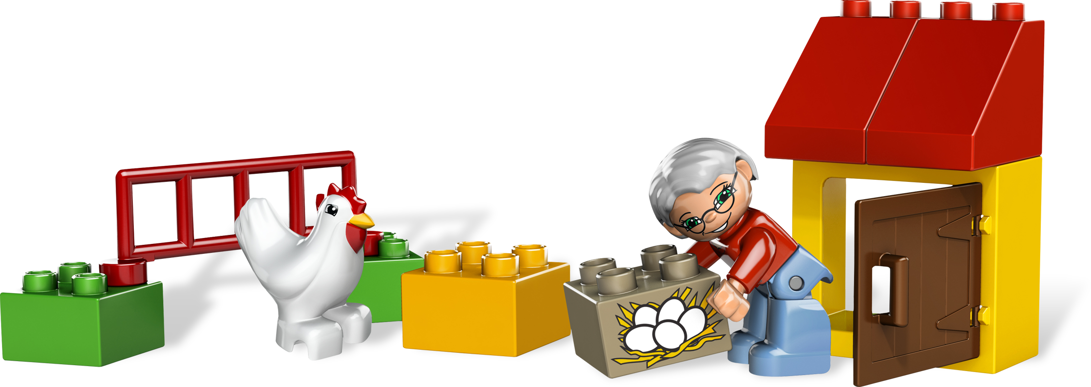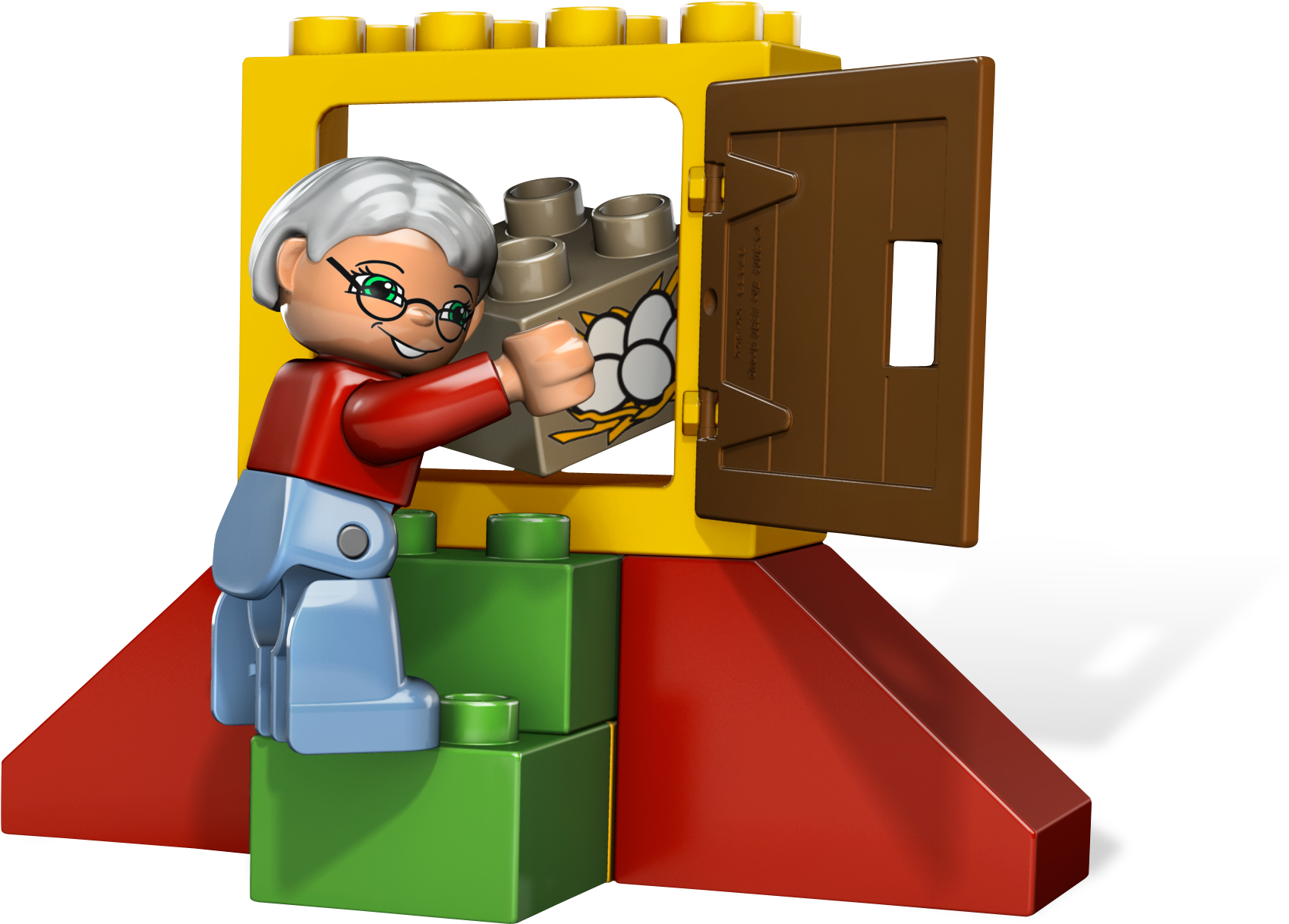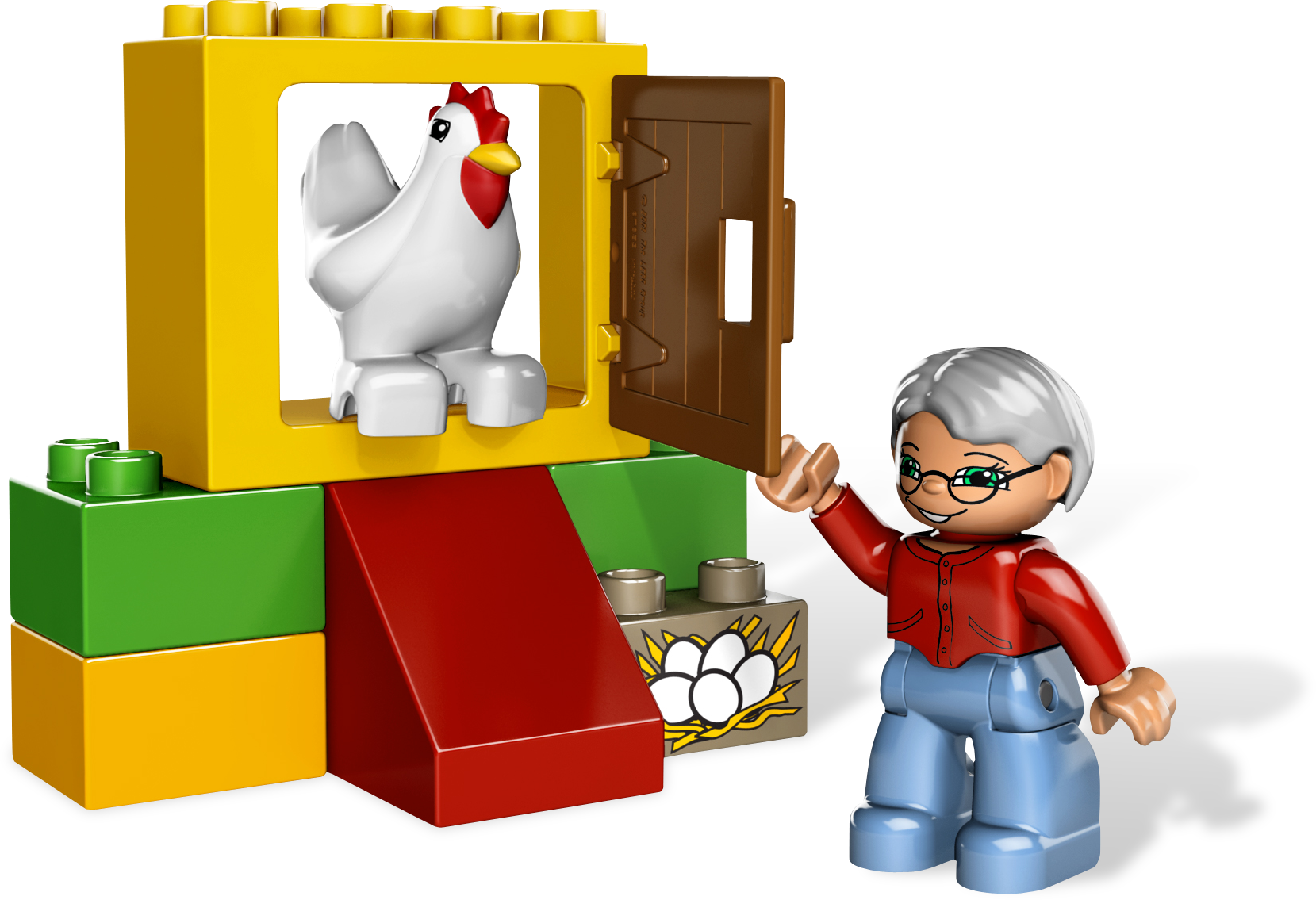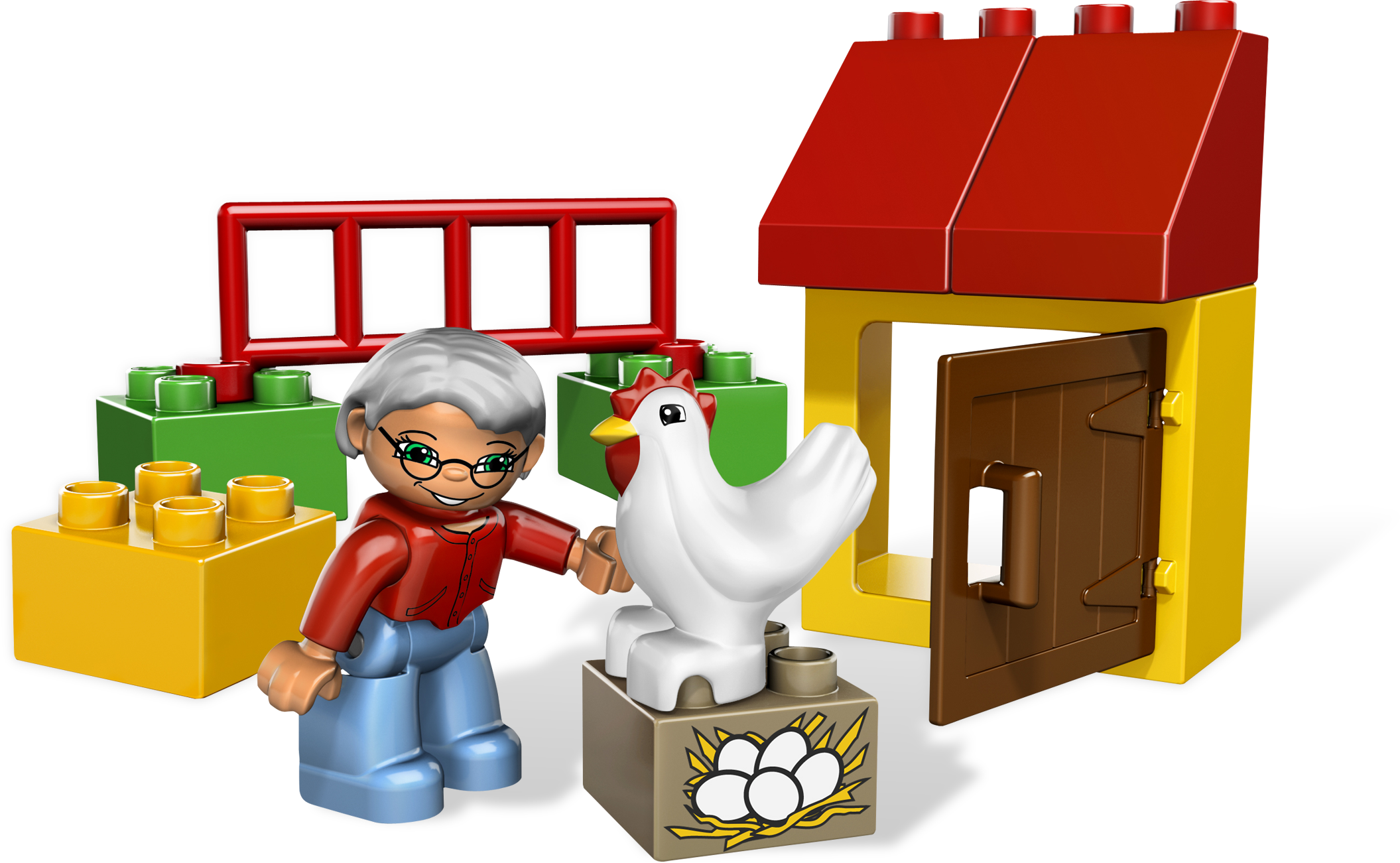 It’s time to collect the eggs from the chicken! Help Grandma tidy up the chicken coop and collect the eggs. This sturdy, colorful coop is sure to keep those chickens safe!Includes Grandma, hen, chicken coop, nest box and lots more