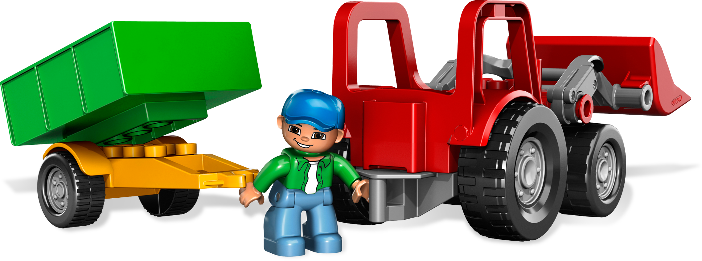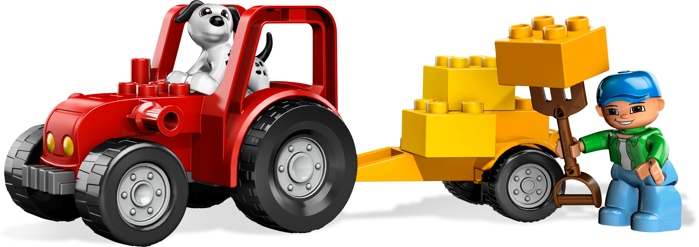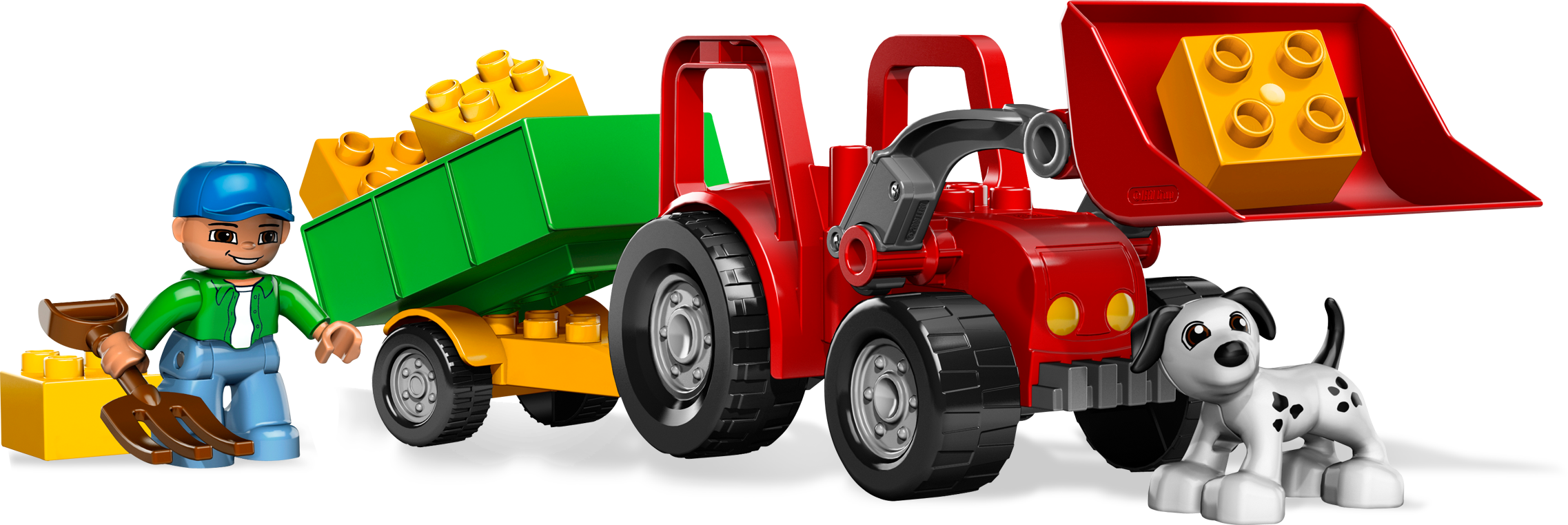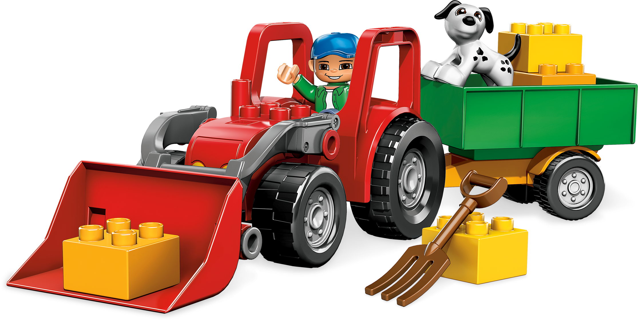Farm work is hard, but this trusty red Tractor is here to help! It’s harvest time on the farm, and the Farmer and his cute dog are going to be busy with work. Good thing they have this sturdy, safe tractor to help them get around! Includes tractor, cart, farmer and moreFarm tractor and wheeled cart help the farmer harvest his crop!Tractor and cart measure over 15" long