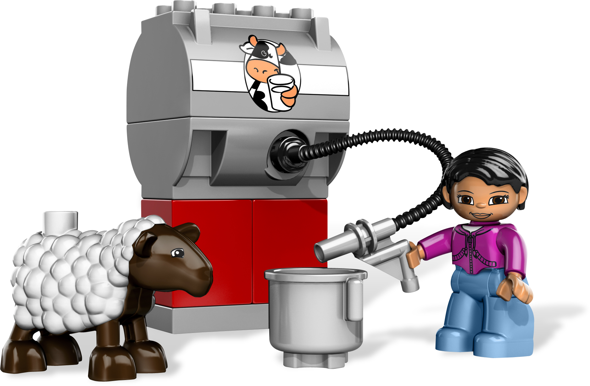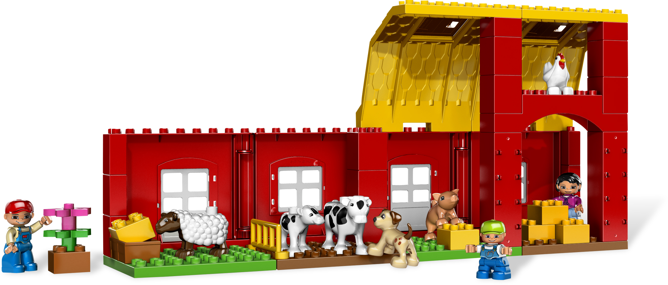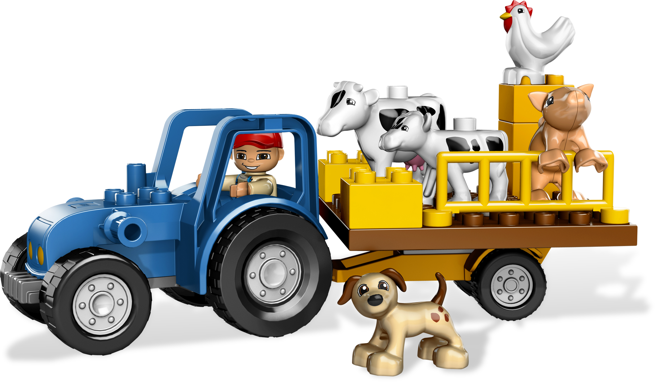 It’s another big day at the Big Farm! There’s always something to help with on a farm. Mom is feeding the cows, Dad is bringing the milk to the dairy, and the little boy is taking great care of the baby calf! Now, where did that cute little puppy go? LEGO® DUPLO® pieces are fun, colorful and safe for younger hands! Includes barn, farm family figures, plus a puppy, and more Also includes livestock, truck, milk tank and more farm accessoriesHook hale bales and hoist 'em up to store in the barn!Award Winner: National Parenting Seal of Approval