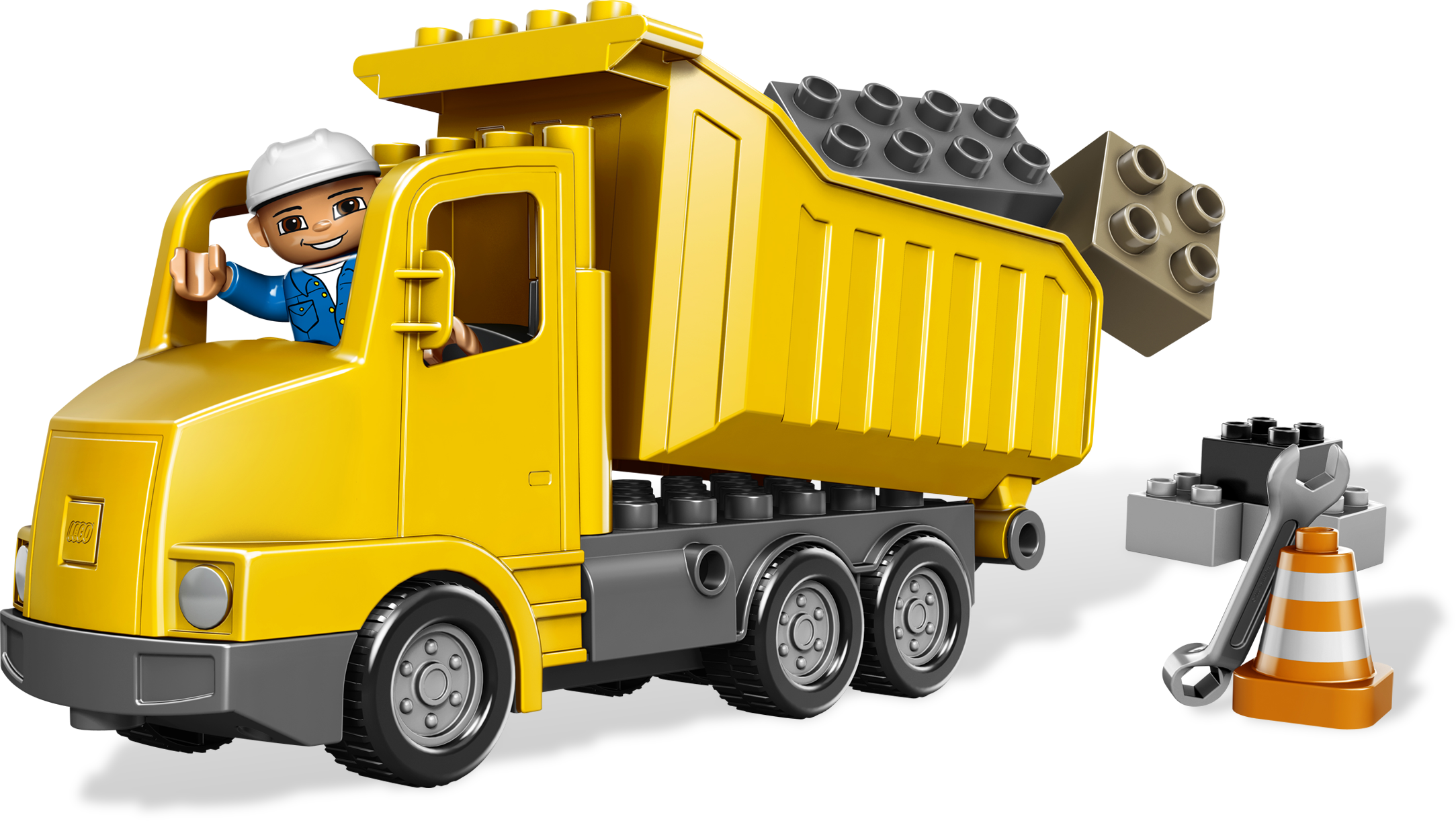 This big Dump Truck is ready for heavy duty work! Transport your LEGO® DUPLO® bricks in the big, sturdy Dump Truck and get the job done! This colorful set comes with a safety cone and a wrench for extra creativity and fun. Includes dump truck, safety cone and more