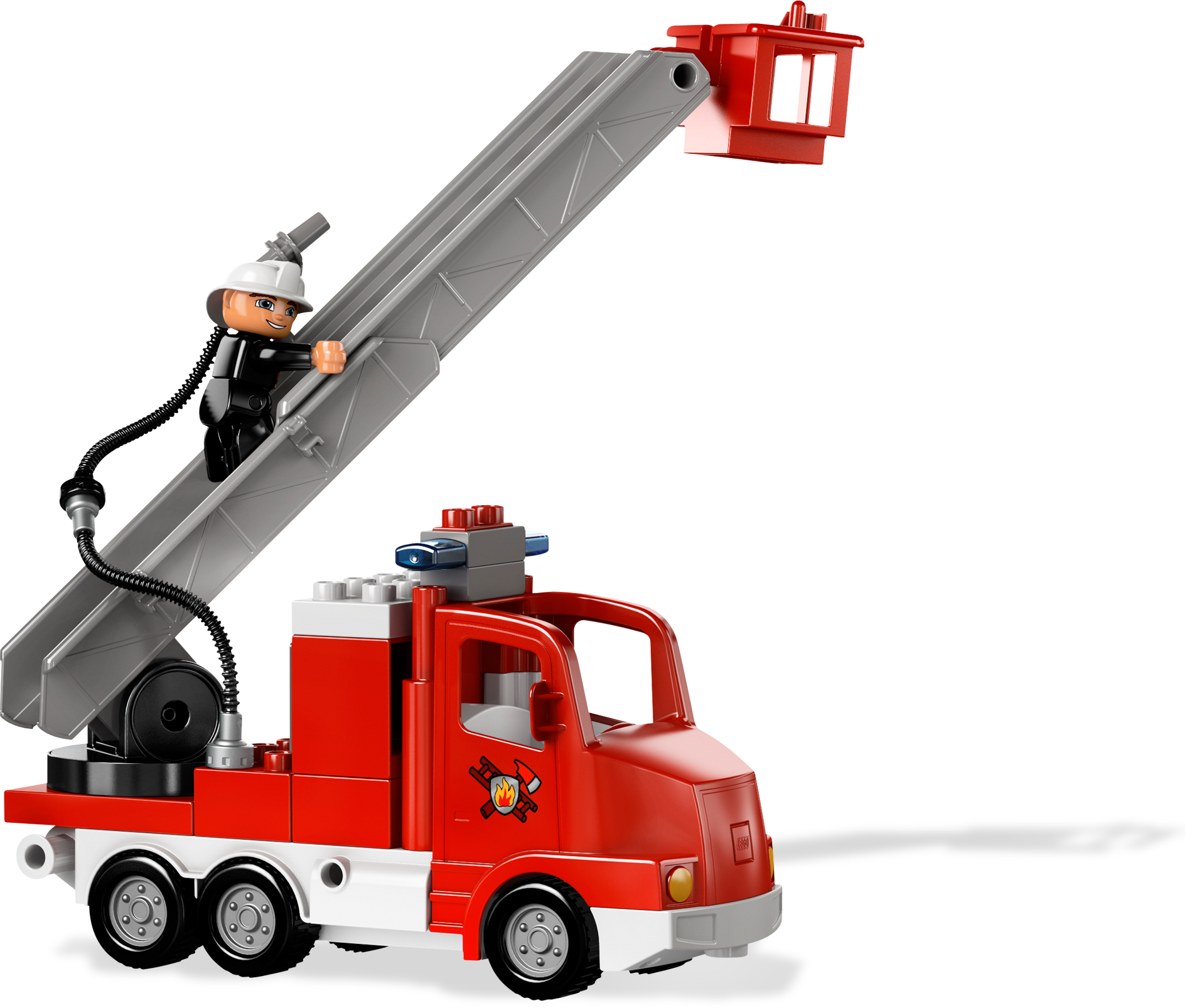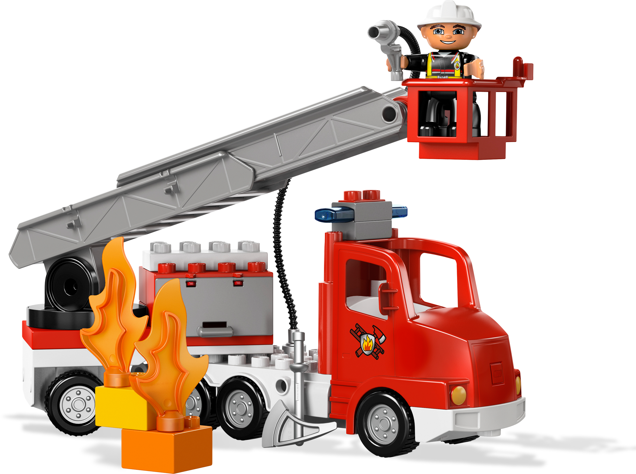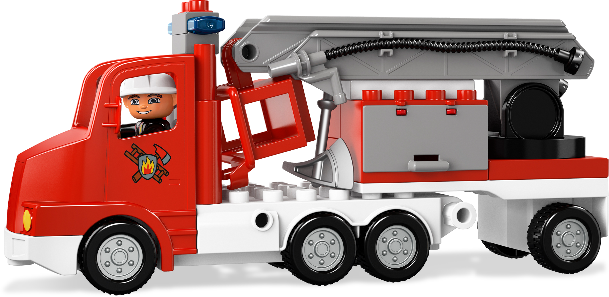 Race to the rescue in the Fire Truck! Emergency! Race to the scene and put out the fire! Use the extendable ladder and basket to rescue someone! Grab the Fire Truck’s hoses to douse the flames! LEGO® DUPLO® figures and animals are colorful, safe and sturdy for little hands and big imaginations. Includes LEGO® DUPLO® fireman figure Extend the ladder for high-rise rescues! Put out the fire with the Fire Truck’s hoses! Includes rescue axe, flames and LEGO DUPLO bricks! Fire Truck features light and sound siren! LEGO DUPLO products are fun and safe for younger hands