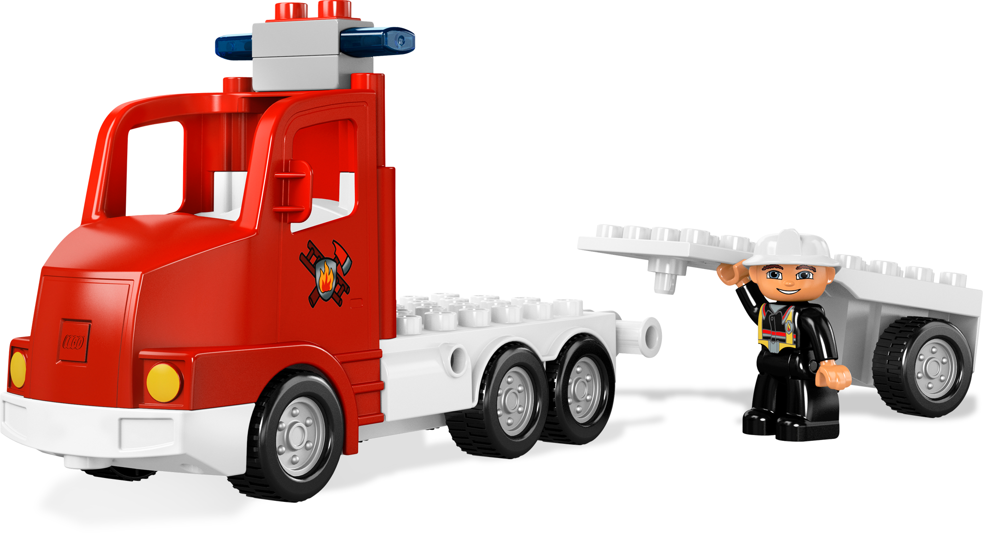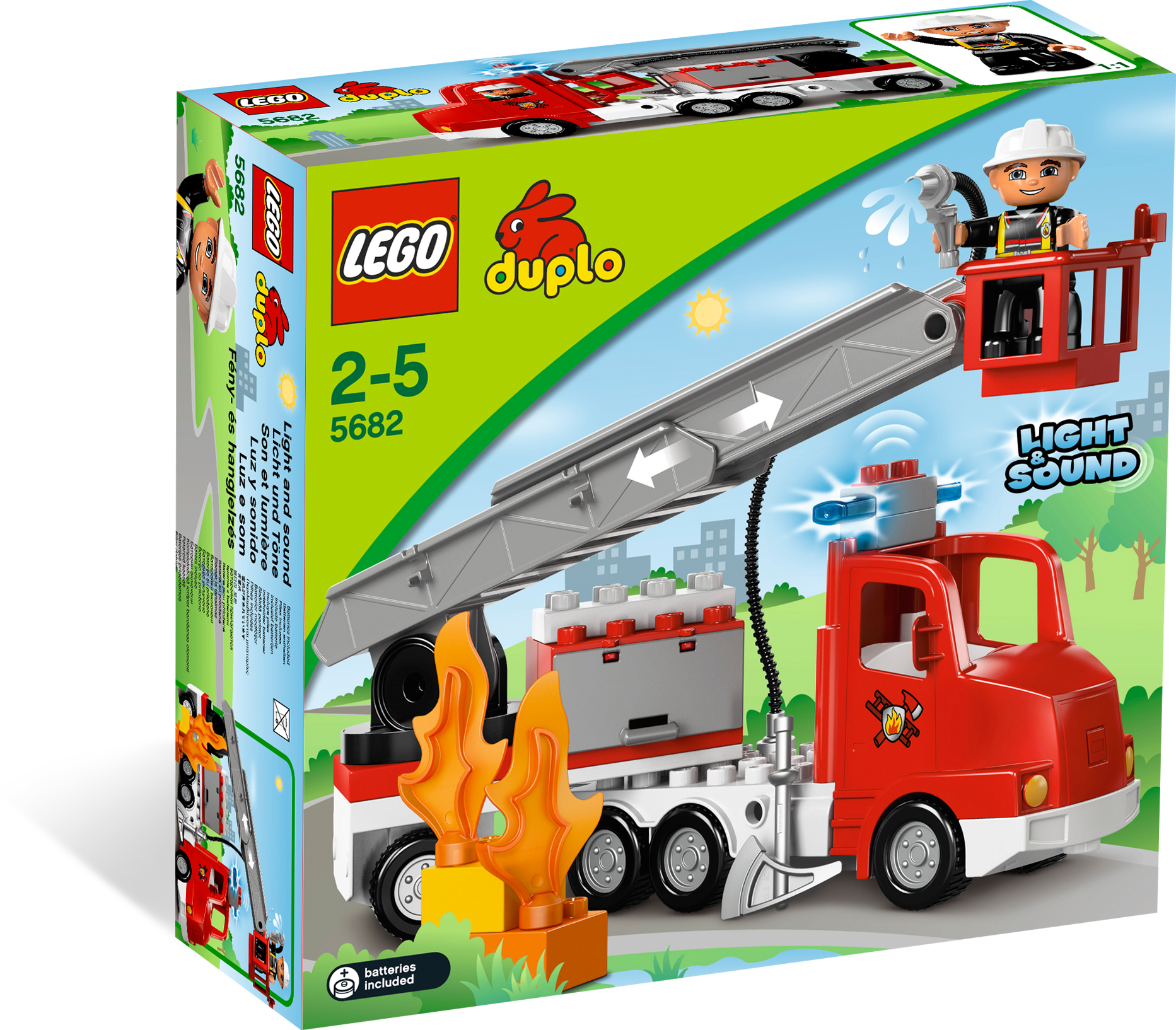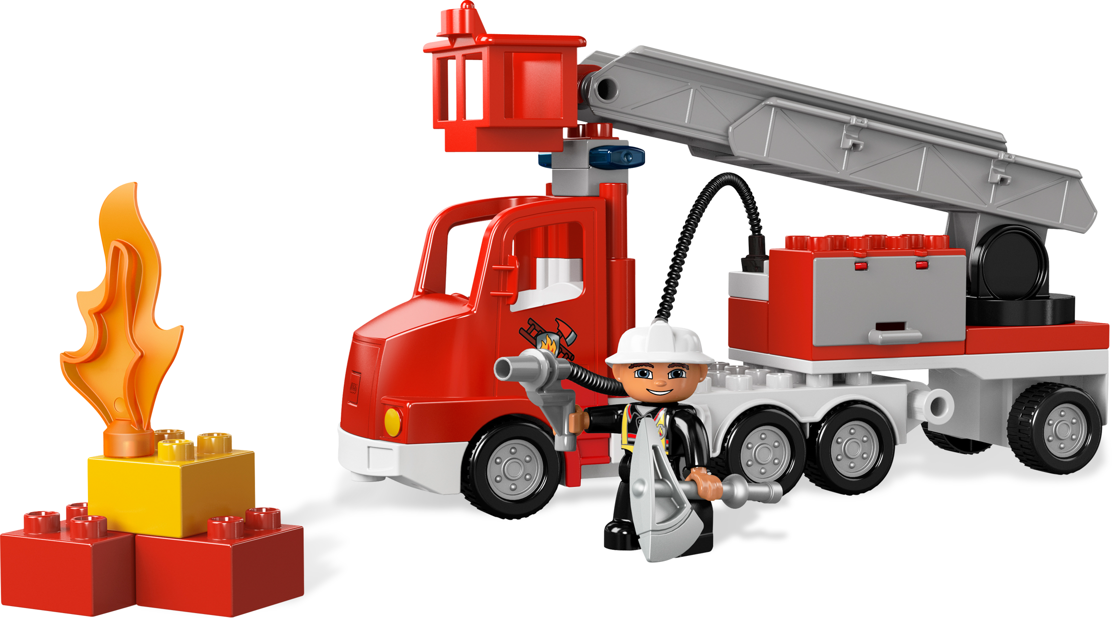 Race to the rescue in the Fire Truck! Emergency! Race to the scene and put out the fire! Use the extendable ladder and basket to rescue someone! Grab the Fire Truck’s hoses to douse the flames! LEGO® DUPLO® figures and animals are colorful, safe and sturdy for little hands and big imaginations. Includes LEGO® DUPLO® fireman figure Extend the ladder for high-rise rescues! Put out the fire with the Fire Truck’s hoses! Includes rescue axe, flames and LEGO DUPLO bricks! Fire Truck features light and sound siren! LEGO DUPLO products are fun and safe for younger hands