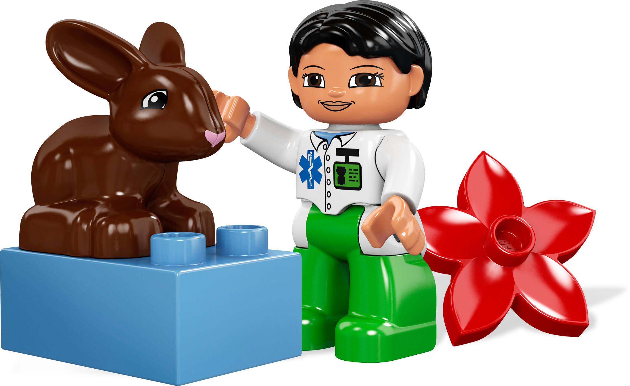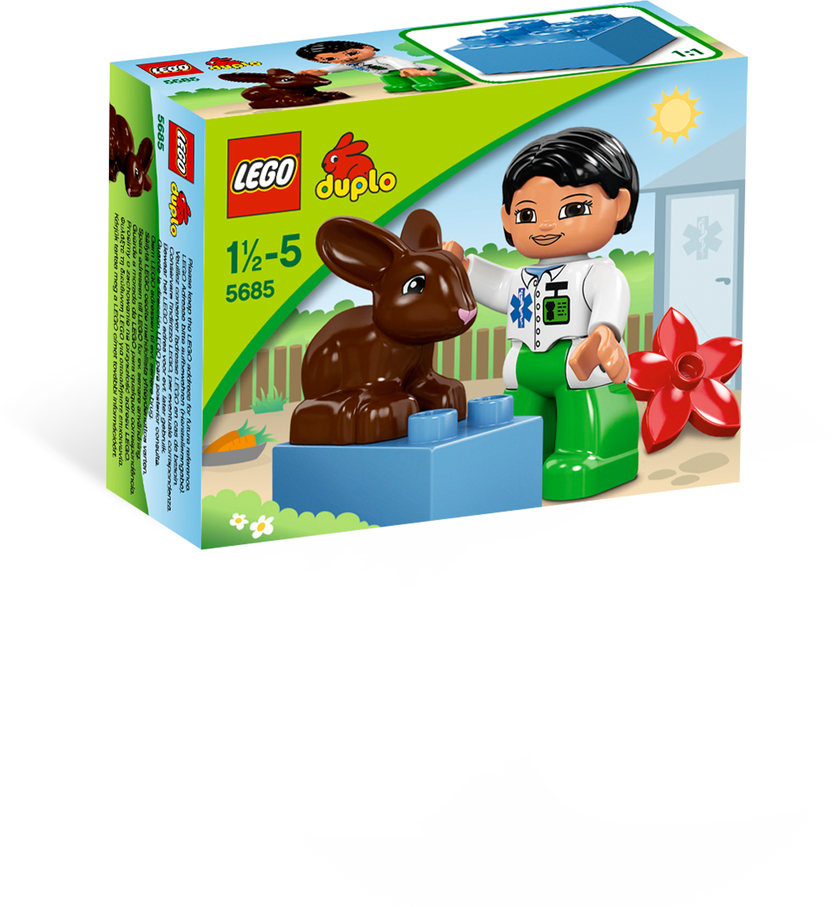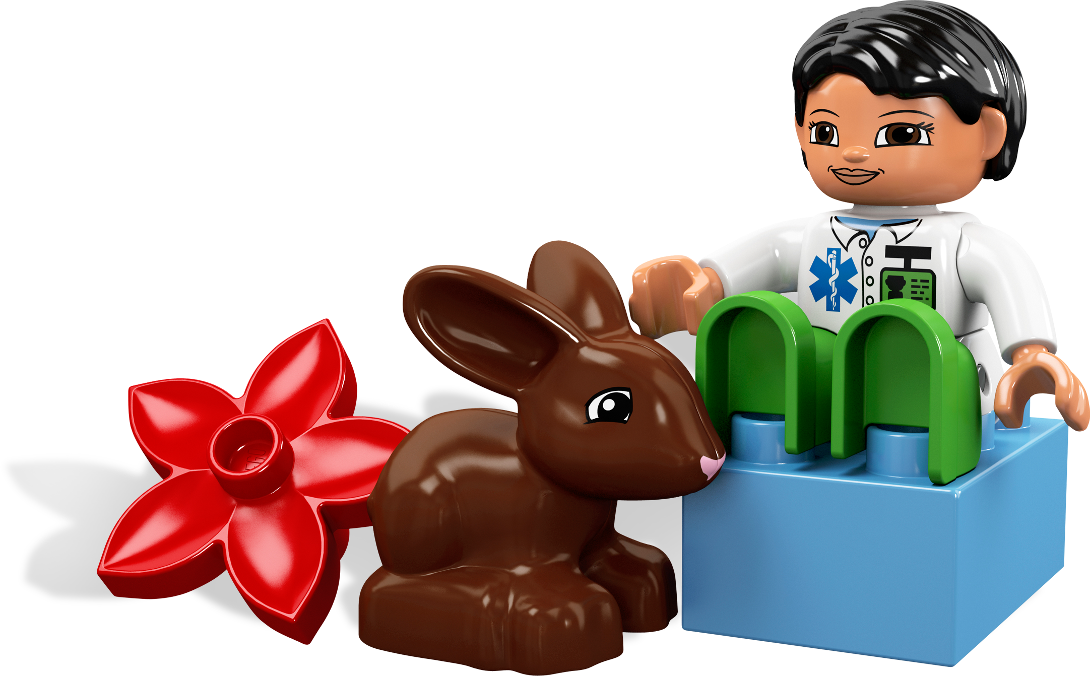 Help the little rabbit feel better! Oh no! The little brown rabbit is sick! Help the vet to examine the rabbit and make it feel better again! Use your stethoscope to listen to examine the rabbit! LEGO® DUPLO® figures and animals are colorful, safe and sturdy for little hands and big imaginations. Includes LEGO® DUPLO® veterinarian and rabbit figure Easy to build! Includes stethoscope, flower and LEGO DUPLO bricks! LEGO DUPLO products are fun and safe for younger hands