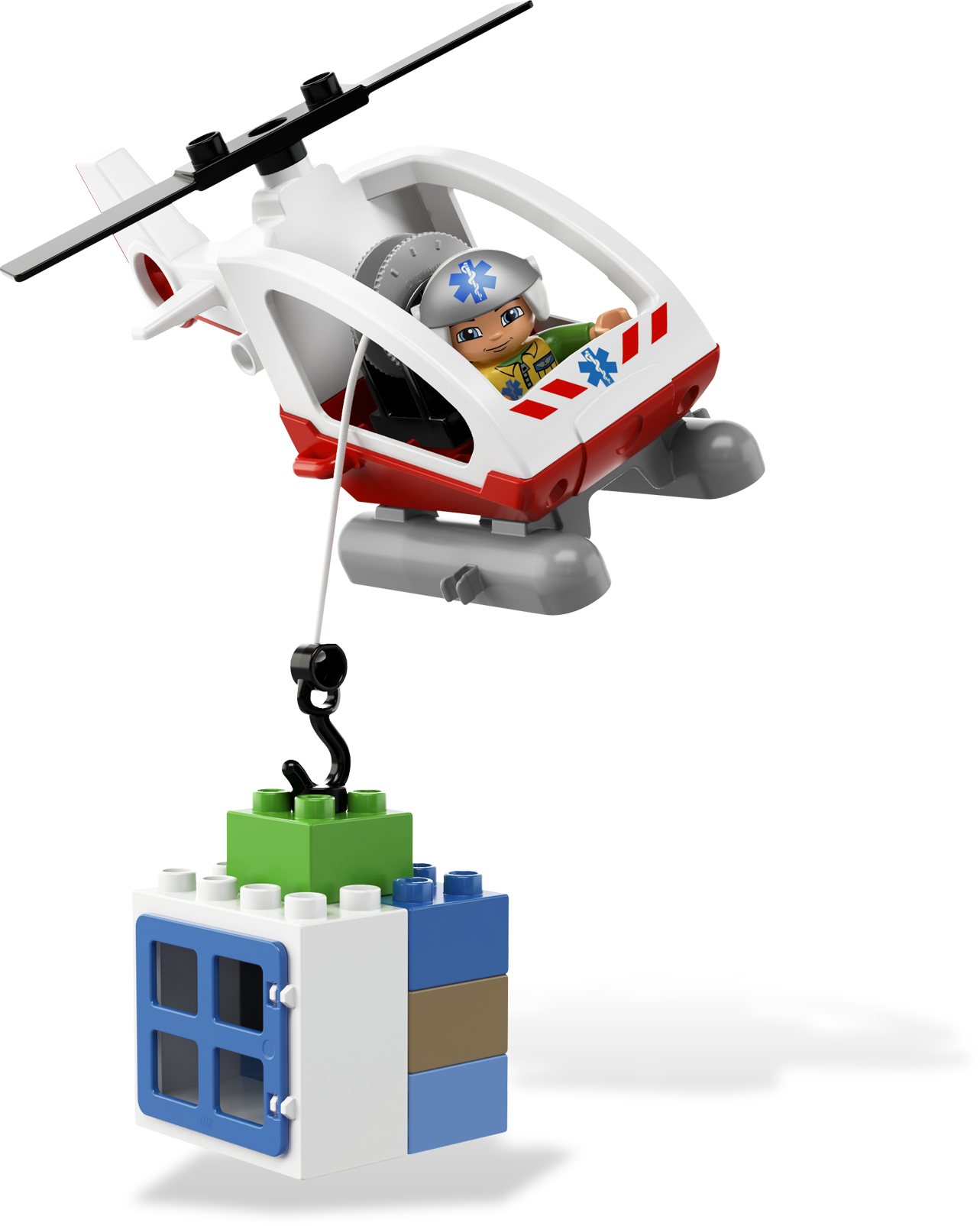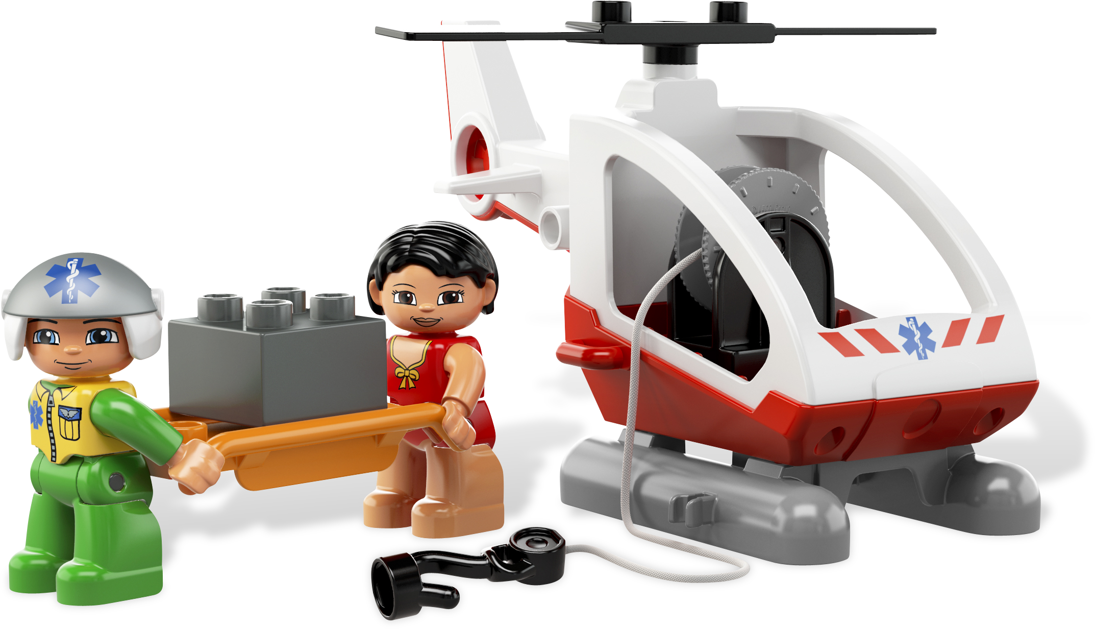Build a high-flying rescue mission! The rescue helicopter is flying at full speed! It’s an exciting mission to rescue a woman who needs urgent help. Help the pilot to load her onto the stretcher! Then rush her to the hospital where the doctor is waiting for your arrival! Includes 2 LEGO® DUPLO® figures: woman and pilot with medical bag Features rescue tower Spin the helicopter’s propellers! Load the stretcher into the helicopter! DUPLO products are fun and safe for younger hands. Measures over 11 ” (27 cm) long and 10” (25cm) wide
