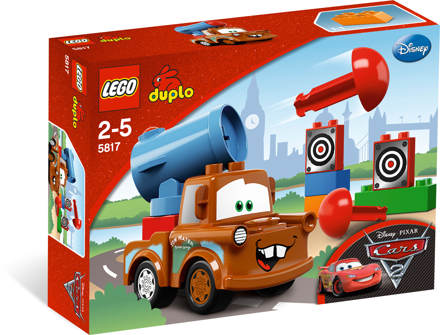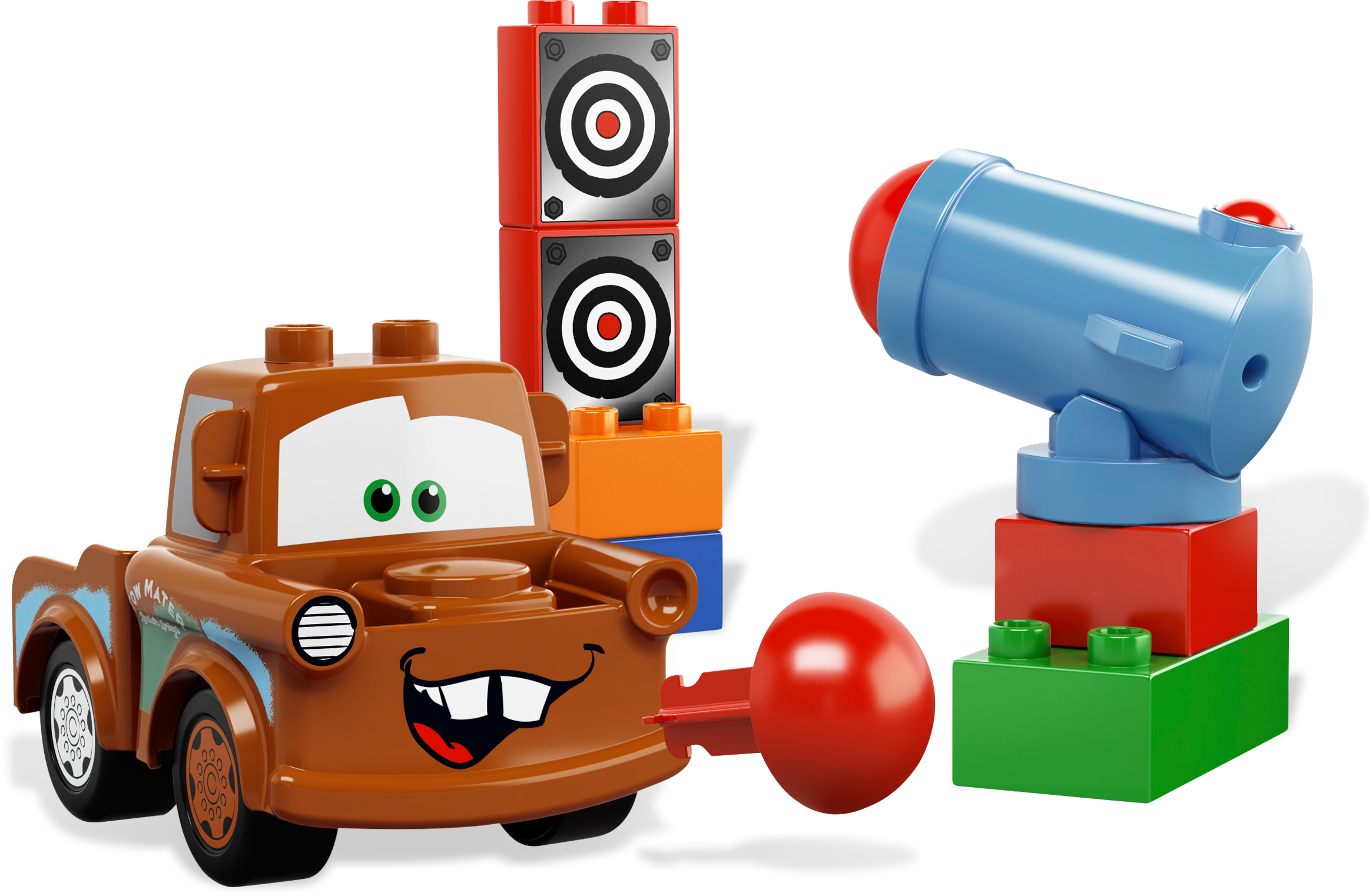 Fire away with Agent Mater’s new cannon! It’s spying time! Mater’s super-spy friends have outfitted him with a big cannon for his next mission. He would be ready to roll, if he knew how to use it! Help him fire at the targets until he becomes a real sharpshooter! Features Mater with all-new cannon, 2 cannon balls and firing mechanism Includes LEGO® DUPLO® bricks with targets Fire cannon missiles! DUPLO products are fun and safe for younger hands Measures over 3” (7cm) long and 2” (5cm) tall