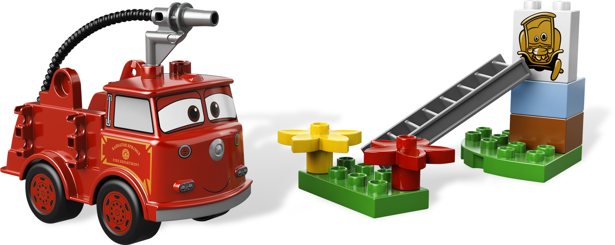 Help Red keep the flowers watered! When he's not putting out fires, Red loves using his hose to water the flowers by the town hall. He helps to keep the town looking nice. Includes Red character with fire hose, DUPLO bricks and flowers.• Includes Red character• Accessories include fire hose, decorated brick, flame element, DUPLO bricks and flowers• Familiar Disney/Pixar Cars theme provides instant role-play appeal!• LEGO DUPLO products are fun and easy for younger hands• DUPLO products are fun and safe for younger hands• Measures over 5” (15cm) long, 2” (6cm) wide and 2” (7cm) tall