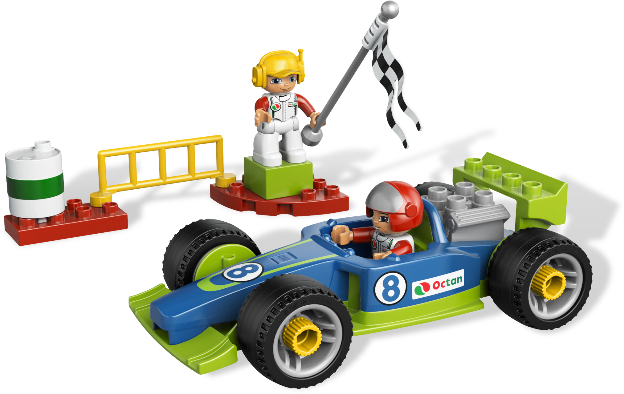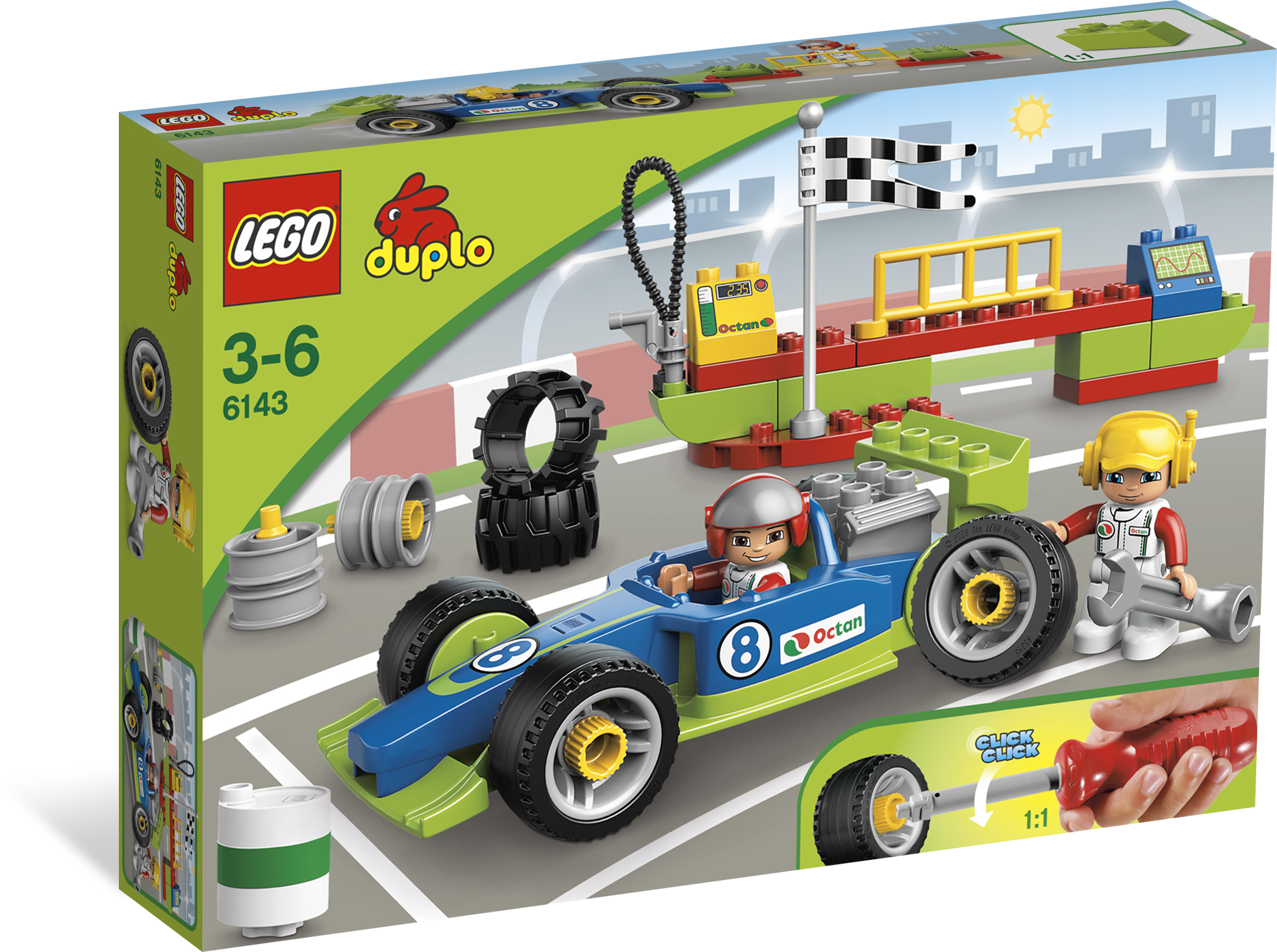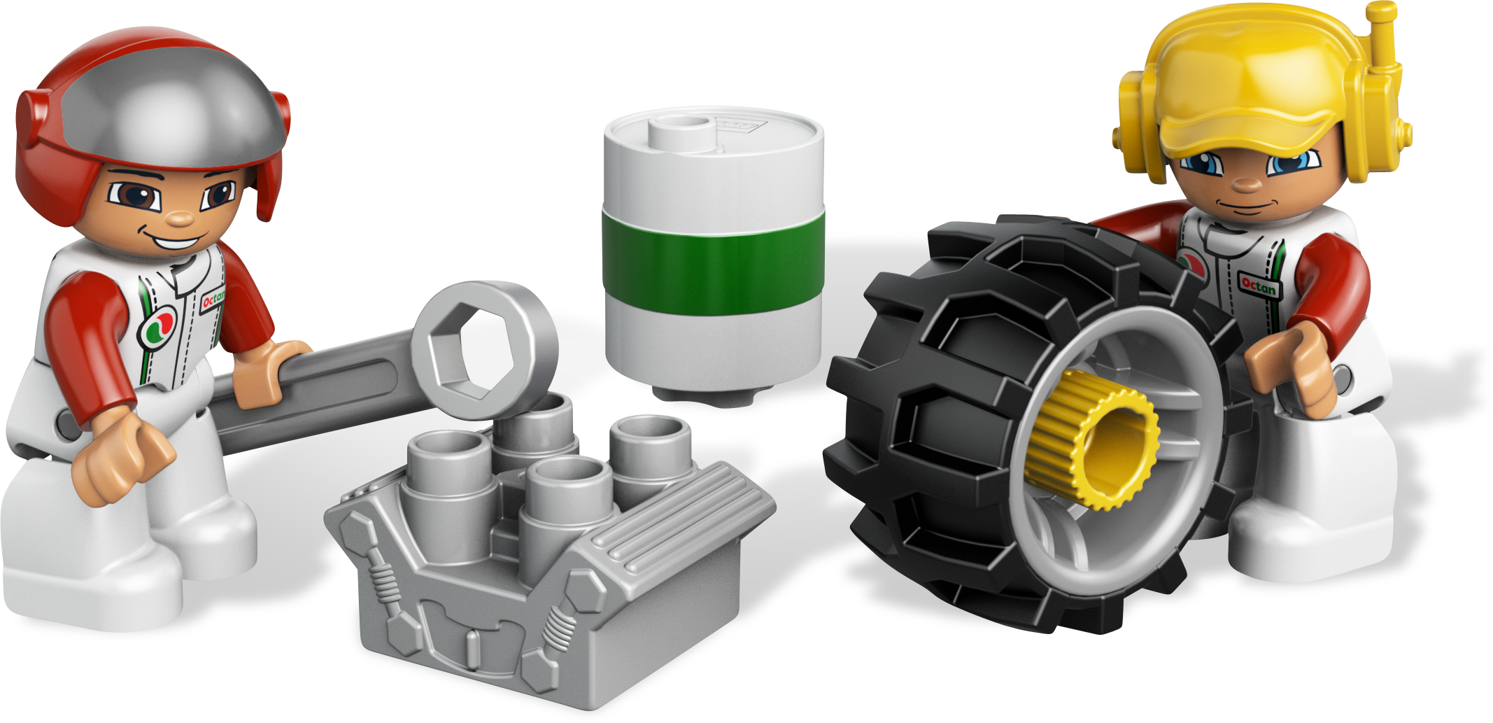 Win the race with the LEGO DUPLO racing team! The LEGO DUPLO race team is getting ready for the big race! Fill up the racing car with fuel, check the oil and change the tires with the DUPLO screwdriver. It's time to go racing! Includes big race car and 2 DUPLO figures.• Includes 2 LEGO DUPLO figures: racing car driver and mechanic• Features big racing car, DUPLO screwdriver and 6 changeable tires (4 all-weather and 2 off-road)• Accessories include DUPLO tools, fuel, hose, oil drum, computer, flag and selection of basic DUPLO bricks• Race the racing car!• Change the tires!• Make a quick pit stop!• Win the race!• DUPLO products are fun and safe for younger hands• Race car measures over 7” (20cm) long, 4” (12cm) wide and 2” (7cm) tall• Pit stop measures over 10” (26cm) long, 2” (6cm) wide and 5” (14cm) tall