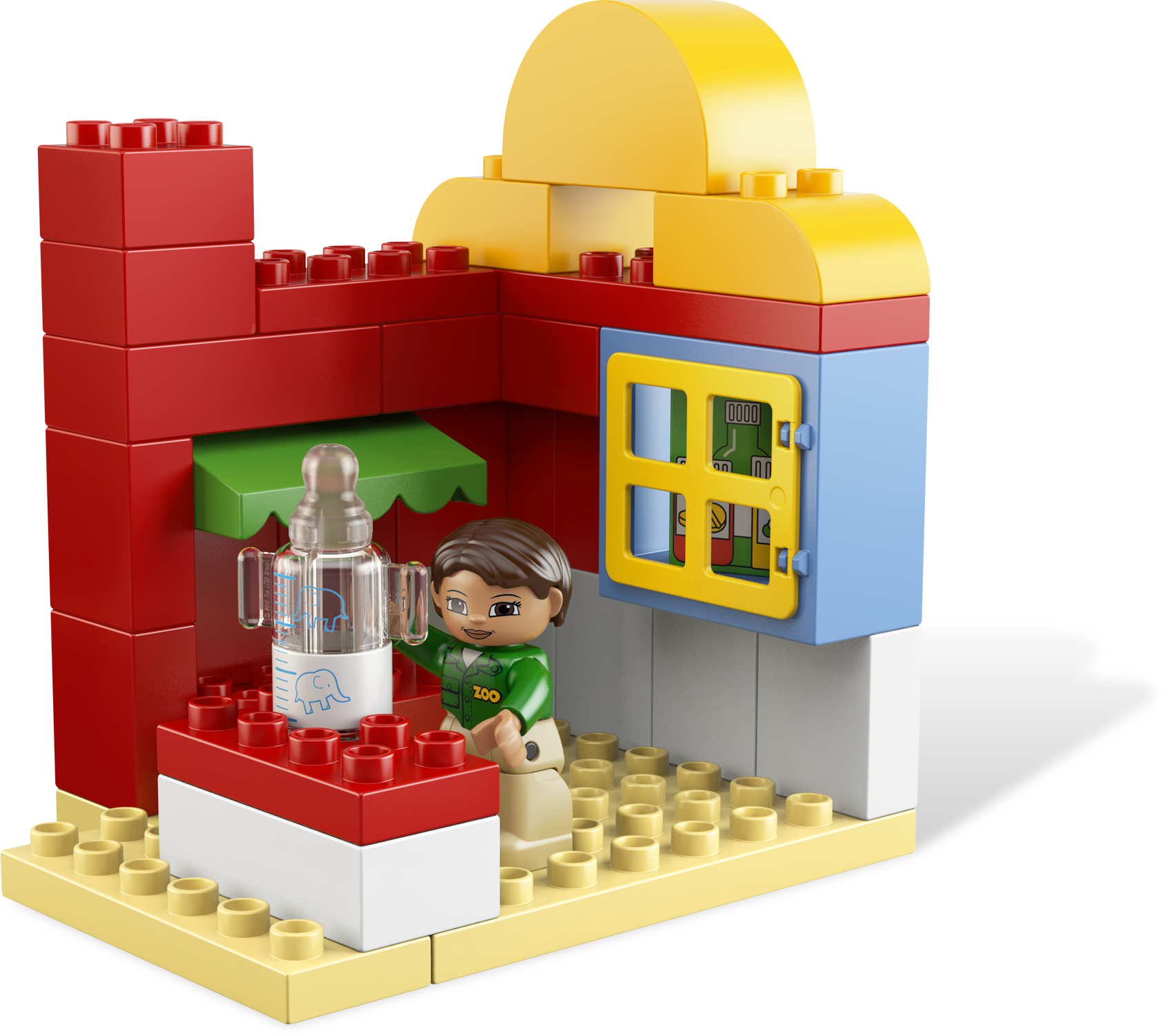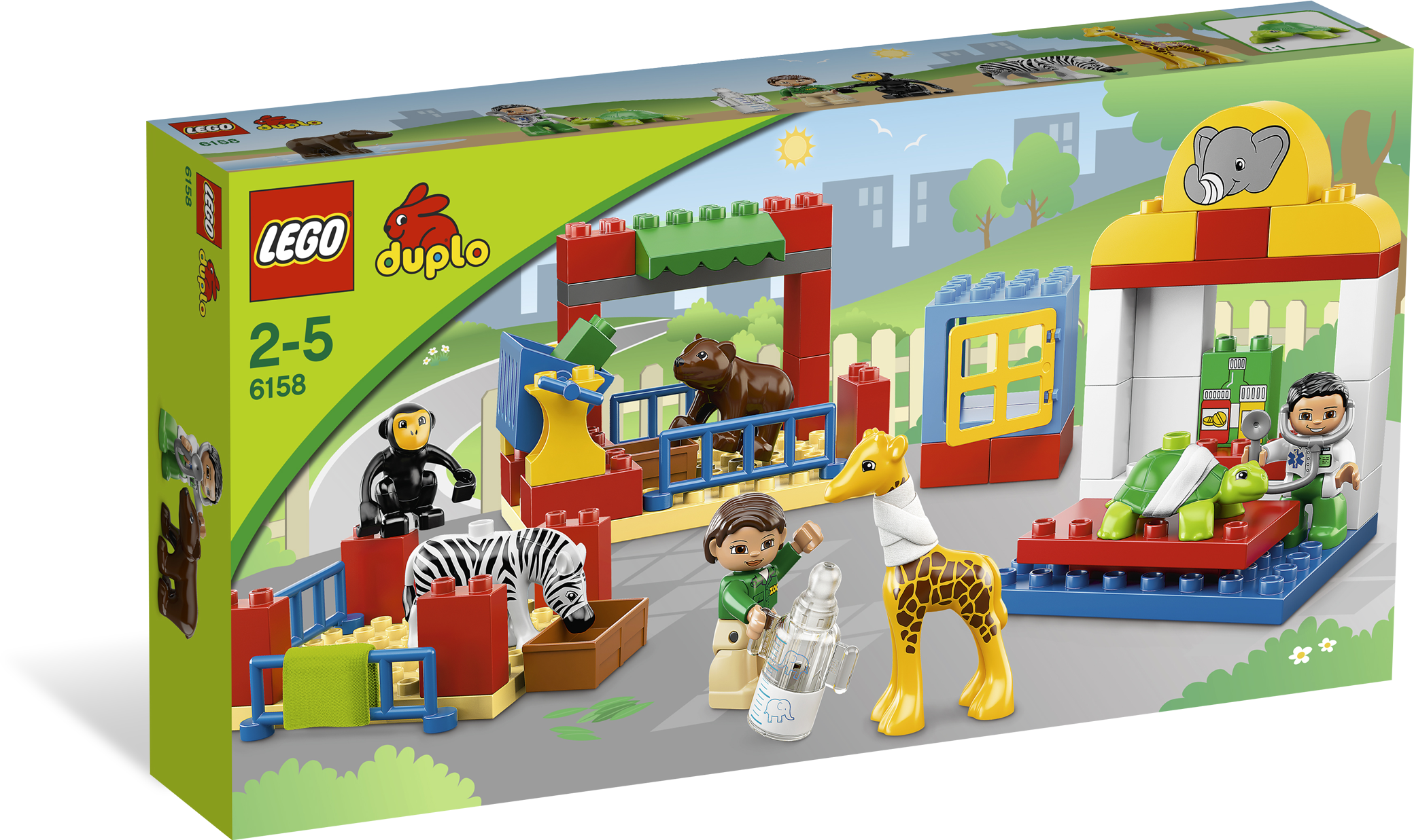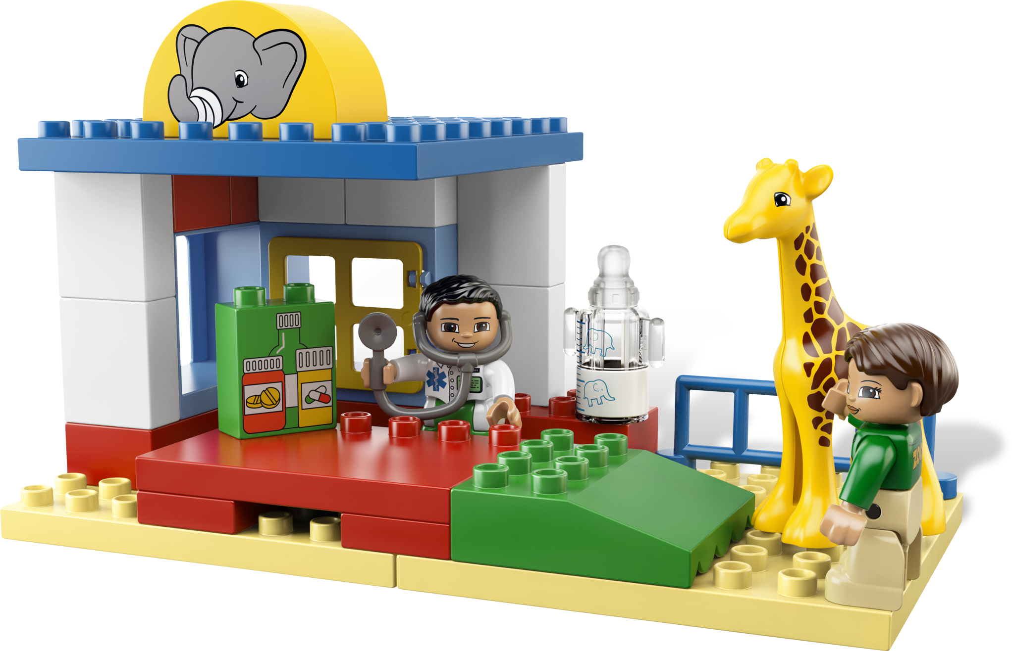 Make all of the animals feel better again! At the Animal Clinic, the vets are helping the poorly animals get well again. Whether they are putting a bandage around the giraffe’s neck or feeding the baby animals warm milk, there’s always something to do for the busy vets. Includes 5 LEGO® DUPLO® animals and 2 vet DUPLO figures.Includes 2 vet LEGO® DUPLO® figuresFeatures treatment room, feeding areas, feeding bottle, bandage, blanket and assorted decorated DUPLO bricksIncludes 5 animals: turtle, giraffe, monkey, zebra and bear cubFeed the baby animals milk from the feeding bottle!Put a bandage on the animals!Familiar animal theme helps children to develop imaginationDUPLO products are fun and safe for younger handsAnimal Clinic measures over 19” (50cm) long, 11” (30cm) wide and 7” (18cm) tall