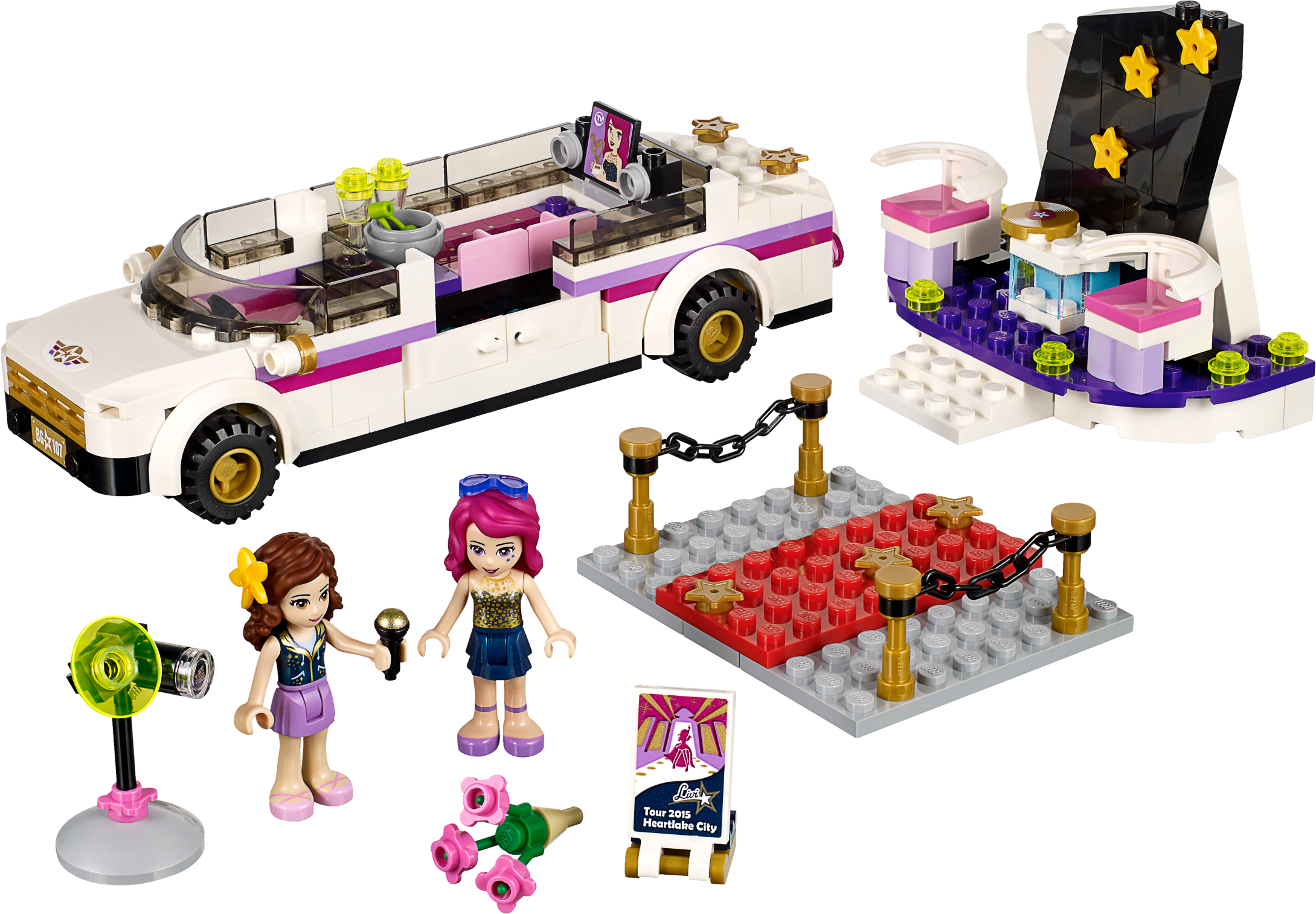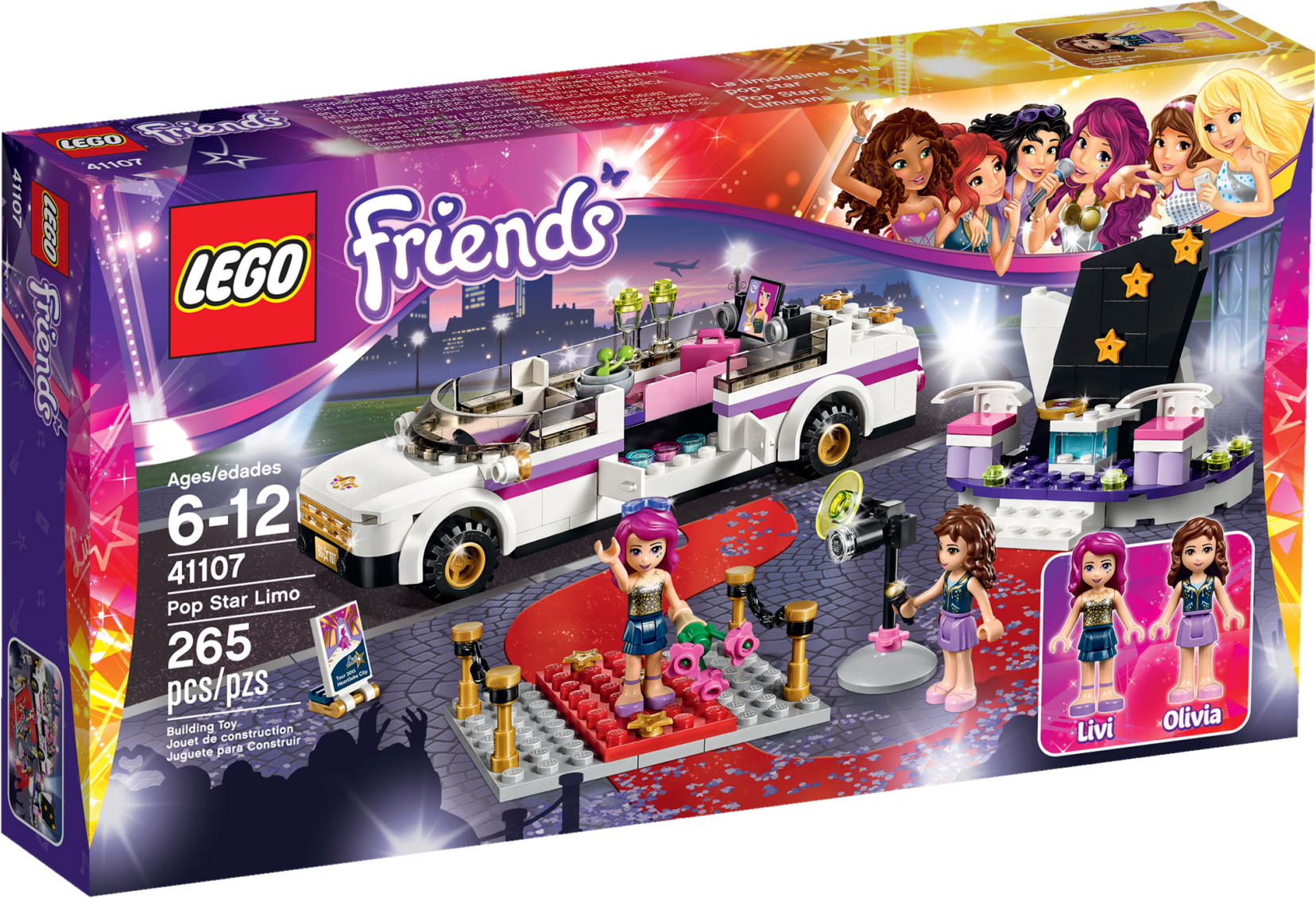Travel in pop star style with Livi’s amazing Limo! Stretch out with Livi the pop star in her luxurious Limo. Help yourself to a drink from the mini bar while you watch TV. Look on as Livi poses for the camera on the red carpet before she meets Olivia at the interview booth to talk about her latest show. Includes 2 mini-doll figures: Livi the pop star and Olivia. Includes 2 mini-doll figures: Livi the pop star and Olivia Features a Limo, red carpet tile with barriers and an interview booth Limo features a mini bar and TV elements as well as opening doors and trunk Accessory elements include a professional camera, microphone, CD, 2 glasses, fruit bowl, cherries, sunglasses, hair decoration, show announcement board and a bag Enjoy travelling in luxury with Livi and Olivia Pose for photos on the red carpet with Livi Interview Livi abouther latest album Put Livi’s bag in the trunk and head off to her next glamorous destination Pop Star Limo measures over 1” (4cm) high, 6” (17cm) long and 1” (5cm) wide Interview booth measures over 3” (8cm) high, 3” (9cm) wide and 1” (4cm) deep