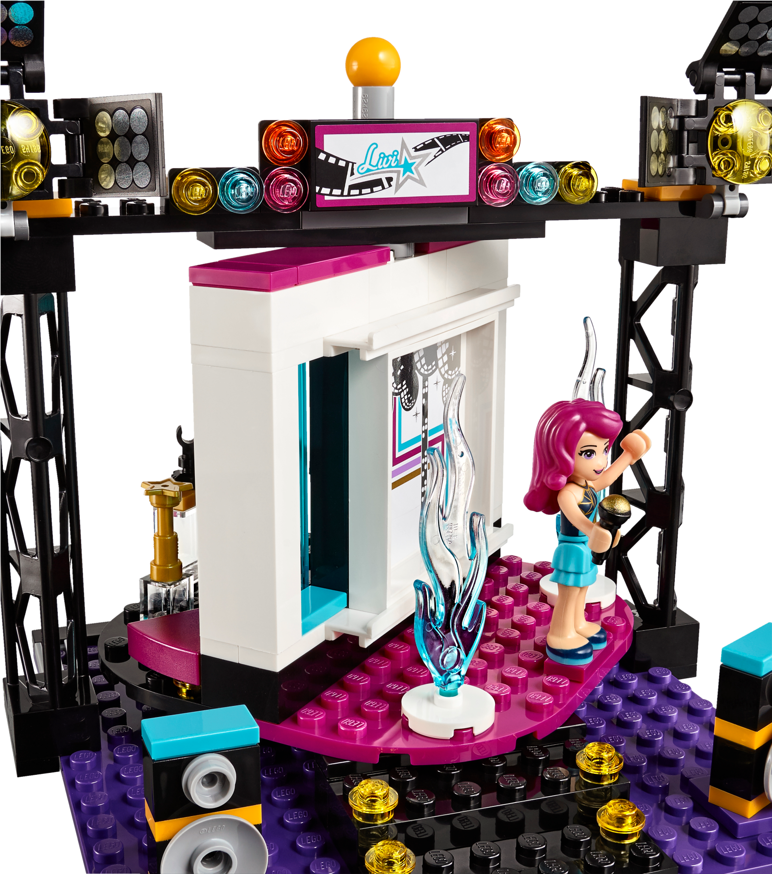 Film the new music video for pop star Livi! Lights… camera… action! Livi is on set shooting the music video for her next big single. Help her polish off her moves, then work the camera and move the slider for an amazing background change. Head back to the studio later that evening where there’s a new set and Livi is performing at a glitzy awards ceremony—but will she win the award for Best Artist and give a speech? Includes a Livi mini-doll figure. Features a TV Studio with steps up to the reversible set featuring an awards ceremony on one side and a music video set with changing background function on the other. Includes a buildable film camera, adjustable spotlights, speakers and a monitor. Accessory elements include a microphone, clapper board, 2 water jets and an award. Slide a different background across and choose the props to change the set for the music video. Turn the set around to host an awards ceremony where Livi is nominated. This set offers an age-appropriate building experience for ages 6 -12. This set includes 194 bricks. TV Studio measures over 5” (14cm) high, 5” (13cm) wide and 5” (13cm) deep.