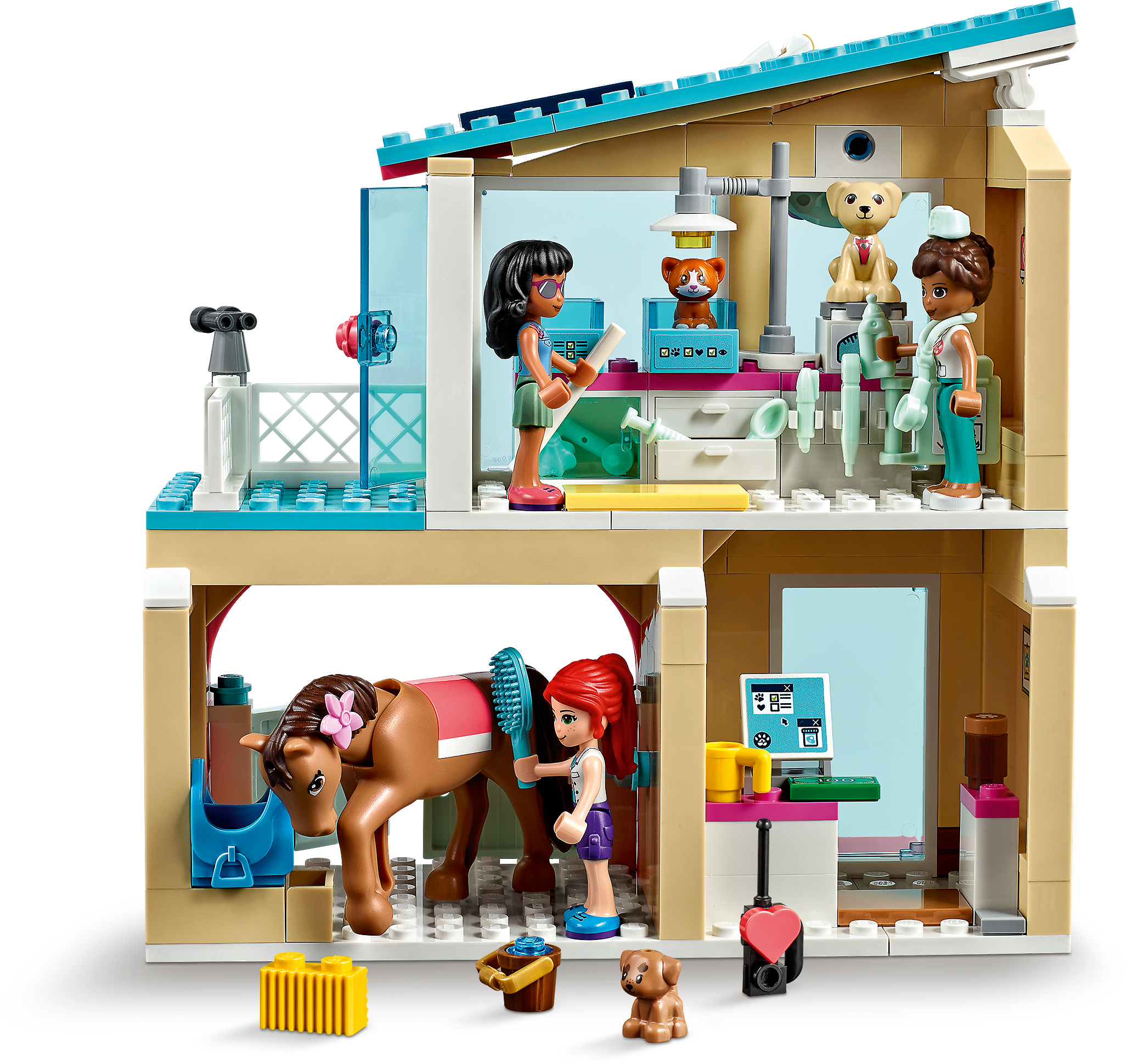 Do you know a kid who loves character role play and caring for animals? The Heartlake City Vet Clinic (41446) is just the creative gift for them! It comes with a total of 8 yes, 8! LEGO Friends characters, including mini-dolls and a range of baby animal toys, so kids can play out any role they want. Packed with features to spark hours of playThe model comprises a reception area, a stable for LEGO Friends Mia's horse, an examination room stocked with children's vet kit and a look-out balcony. The set also comes with a road scene to add an element of rescue drama to the LEGO Friends animal play. Kids can pretend to be Savannah bringing her guide dog in for a check-up, look after the cute baby animals in the clinic or act out an exciting horseback rescue. And as with all the popular Heartlake City toys, boys and girls can explore their passions in the company of their BFFs. Kids can channel their love of creatures into creative play with the Heartlake City Vet Clinic (41446), where they can be the hero of the day, or simply care for animals in need.