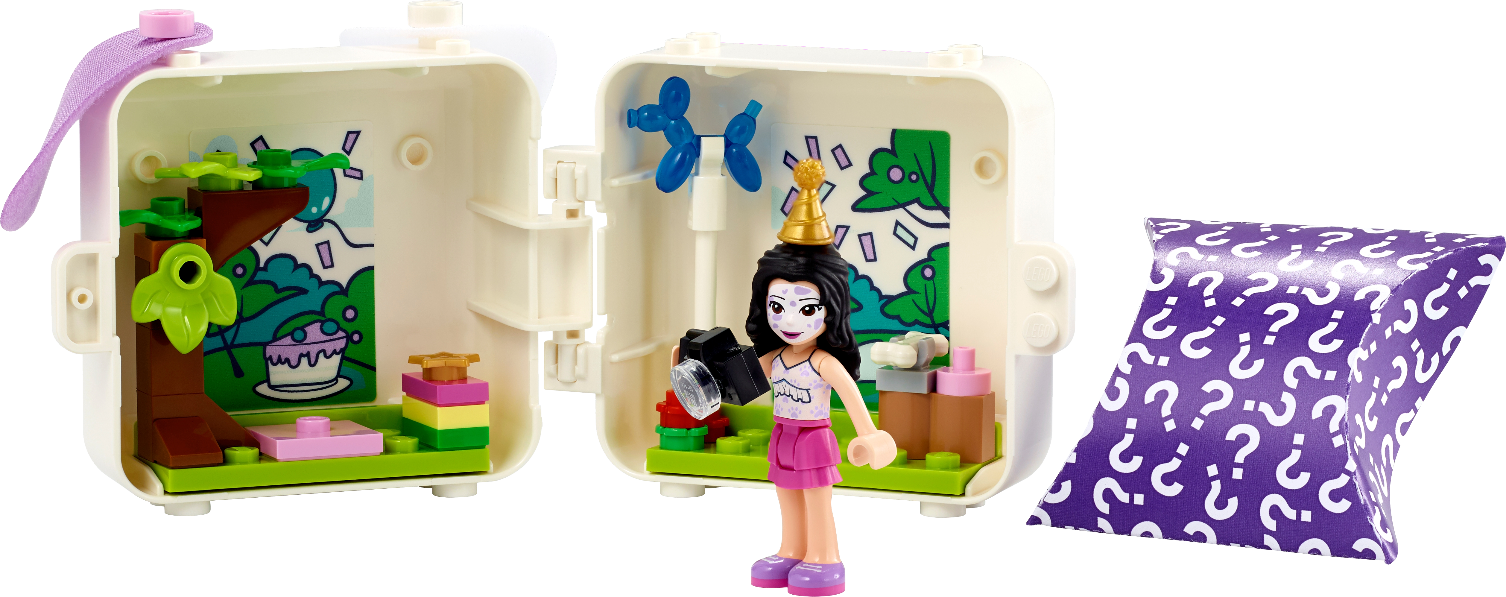 Provide adventures on the move with LEGO® Friends Emma’s Dalmatian Cube 41663 portable animal toy set. Kids can play out a pet party scene then close the box of their new toy for fun on the go.