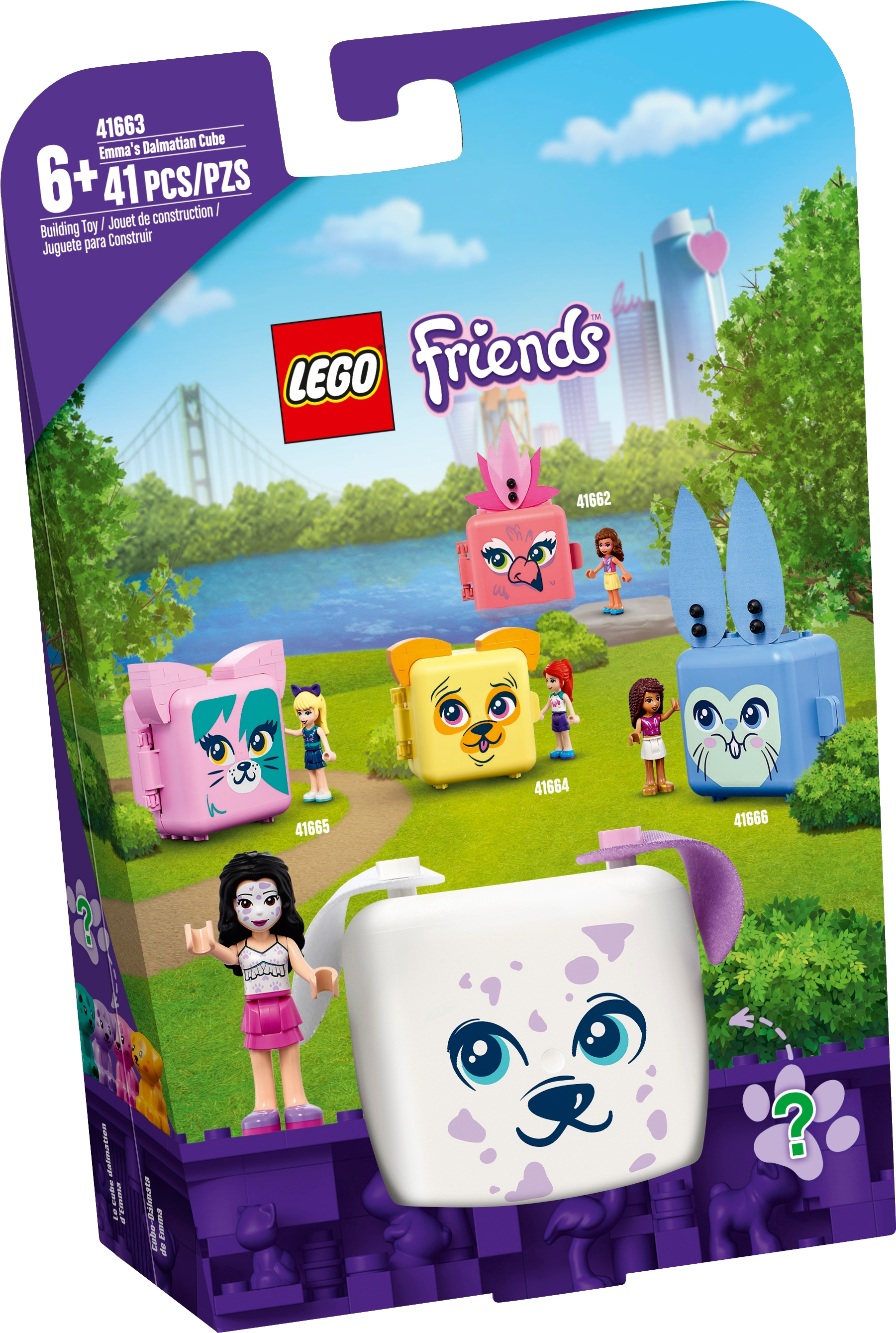 Looking for a spot of LEGO fun to reward a little builder? LEGO Friends Emma s Dalmatian Cube (41663) toy is the portable playset that will keep animal-mad kids happy on the move. Inside this birthday gift for kids is a LEGO Friends Emma mini-doll toy, celebrating her Dalmatian puppy's birthday. Doggy treats on the go: Small enough to slip into a bag, this cute portable toy packs in the animal play to brighten up the longest journeys. It's also perfect for a pop of LEGO Friends fun at school recess, or on a playdate. And if you think Dalmatians are always black and white, think again! Kids will find out the color of their dog only once they open the box! Passions at playIntroduce kids to popular LEGO Friends Cubes toys, which let kids play out their love for animals wherever they are!