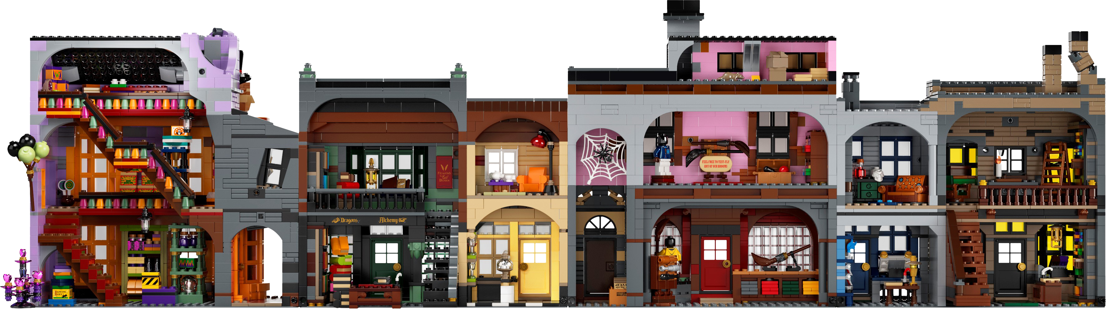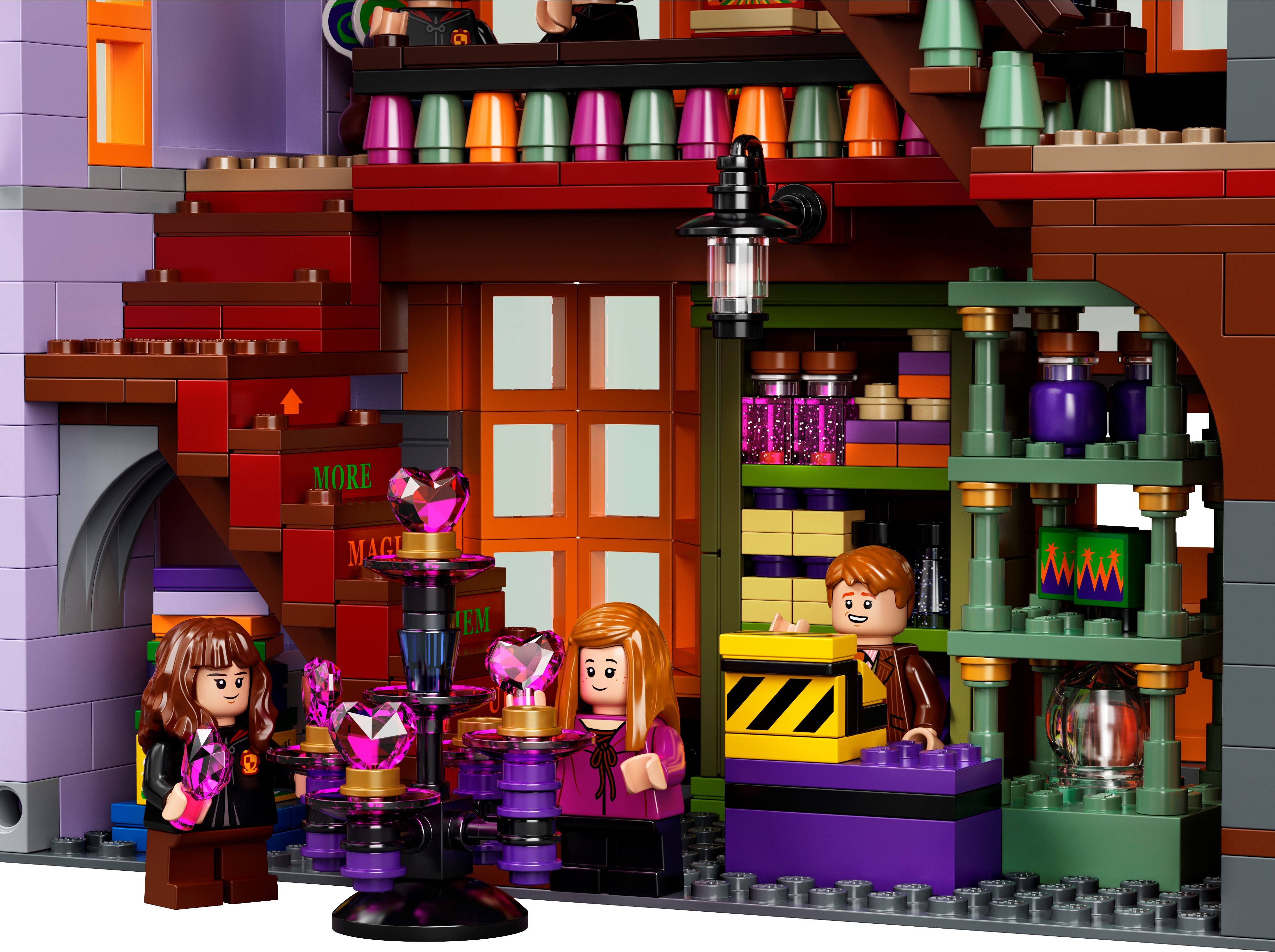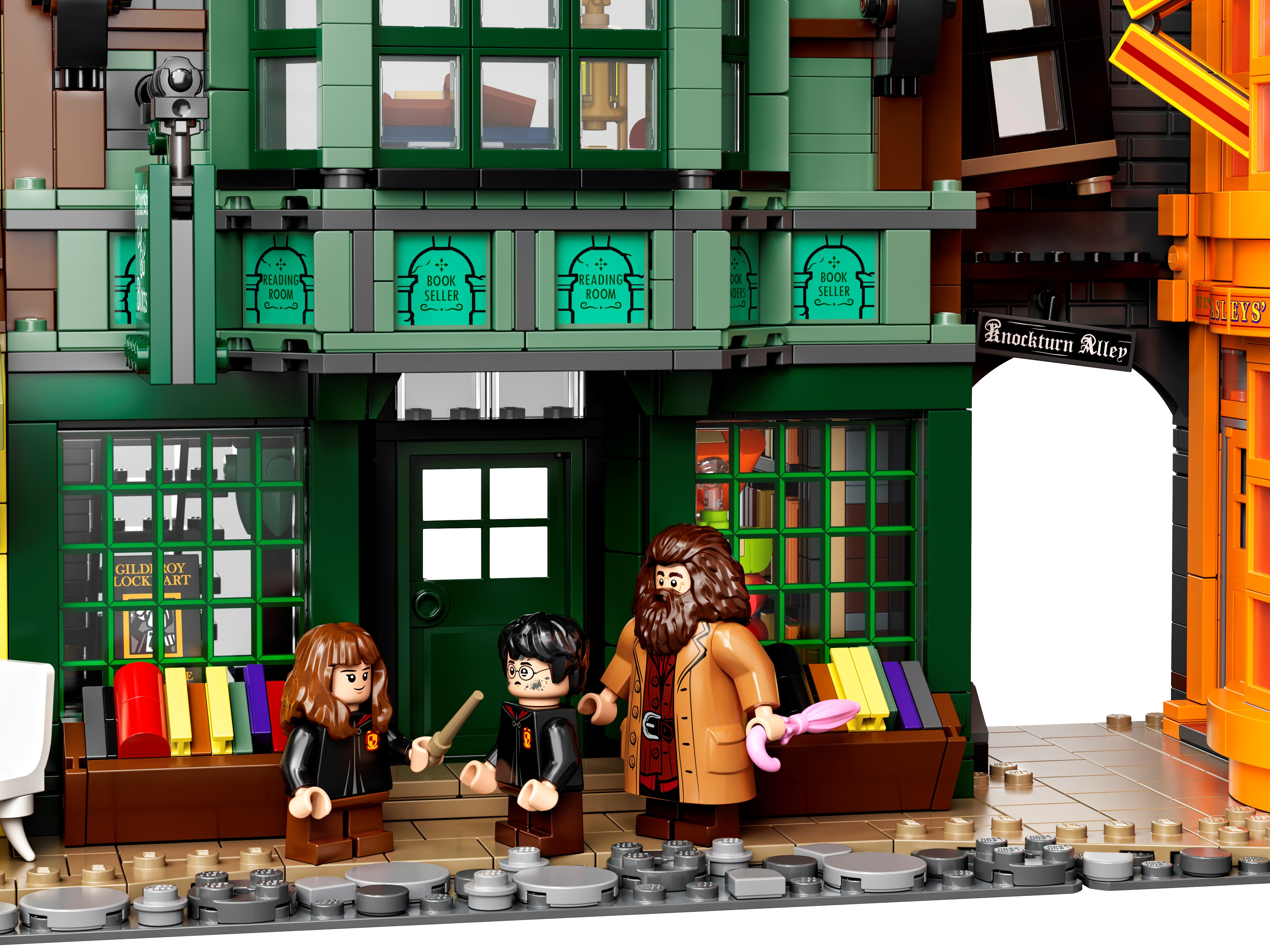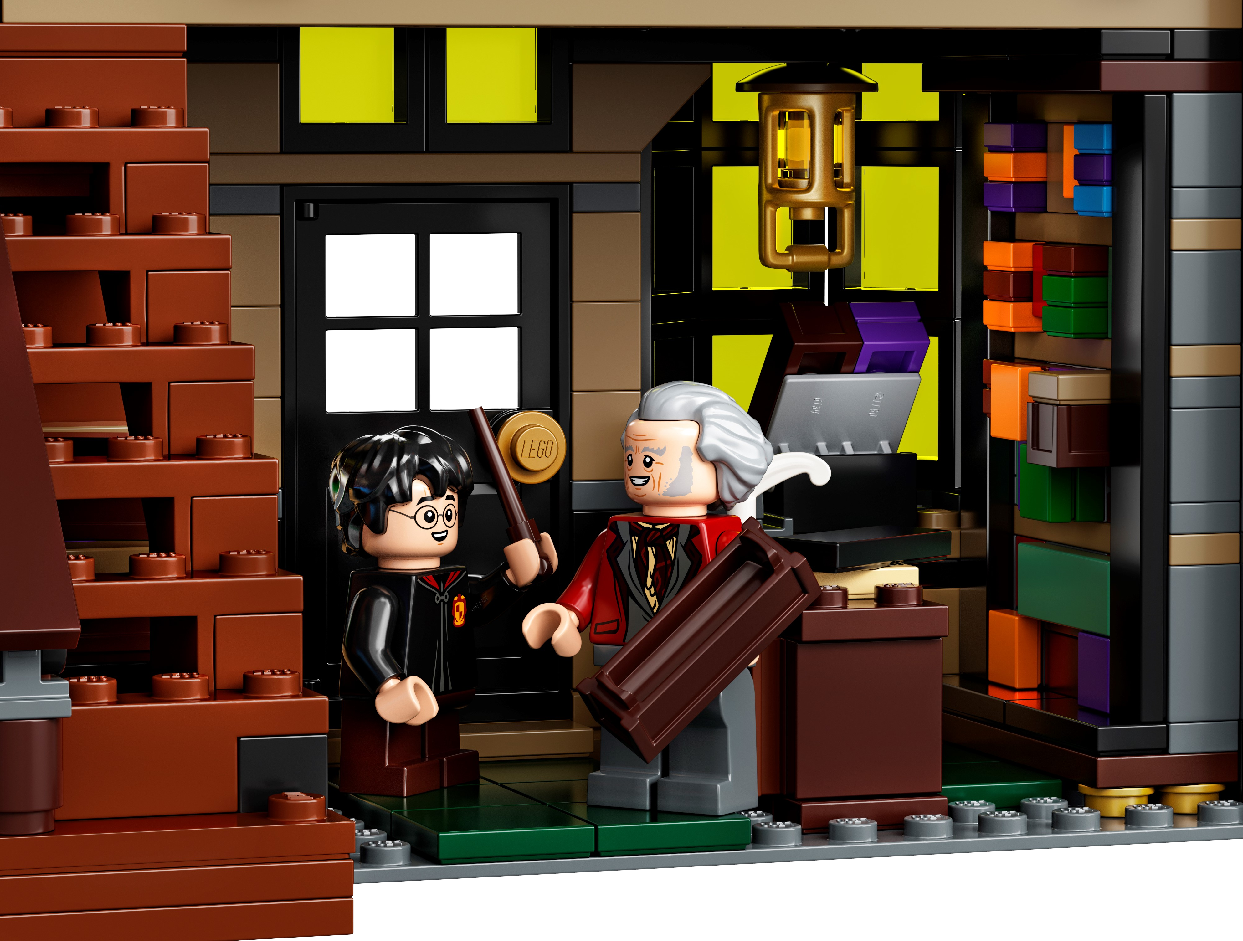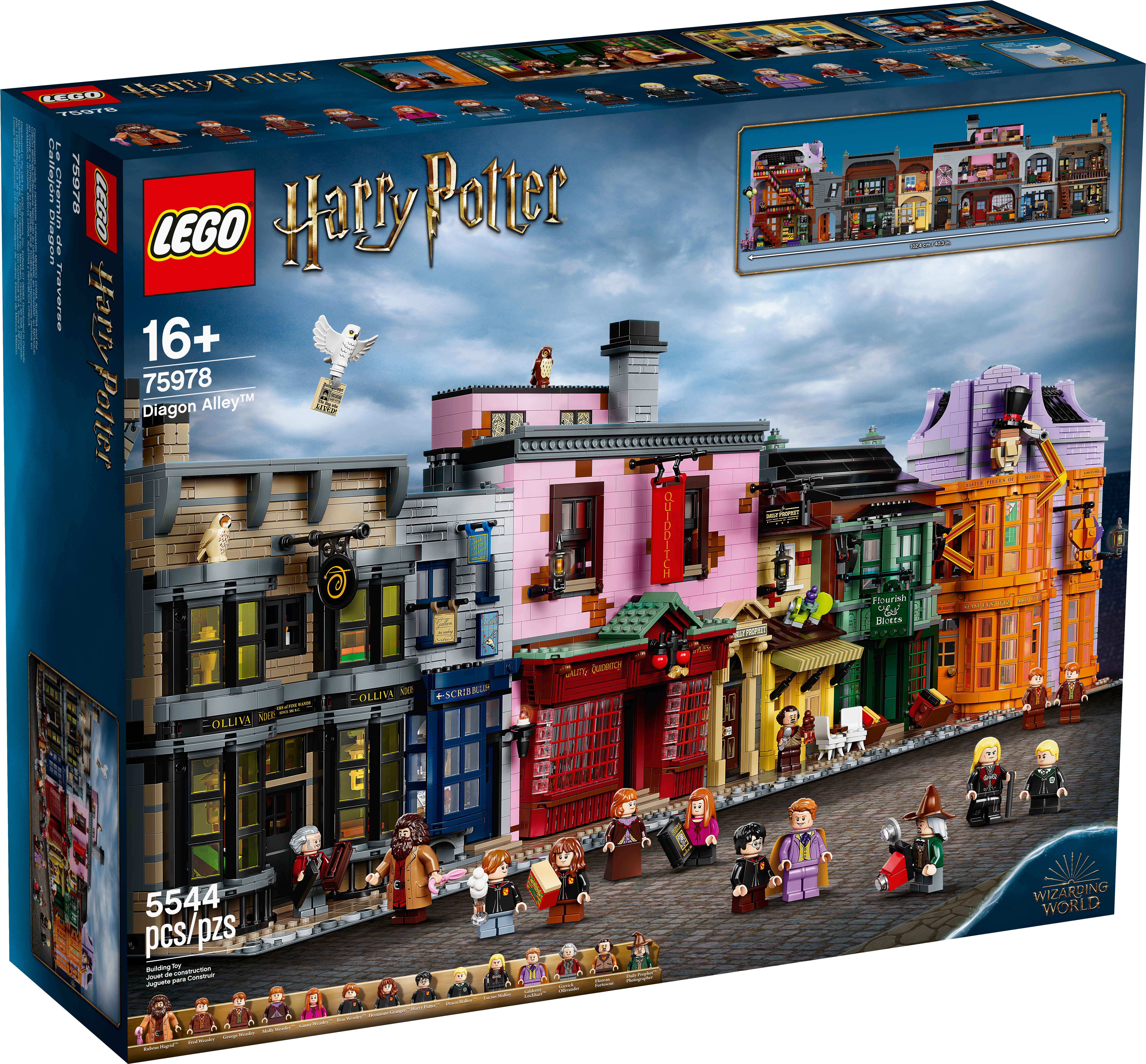 LEGO® Harry Potter™ Diagon Alley™ (75978) is a superb recreation of London’s most magical shopping street for fans of the Harry Potter movies aged 16 and up.Iconic stores packed with authentic movie detailsMeasuring more than a meter wide, the impressive model captures the scale and ambience of the bustling magic-supplies hub. Behind magnificent facades lie intriguing interiors, fascinating features and familiar characters. Check out the wands at Ollivanders™; drop in on Gilderoy Lockhart™'s book-signing event at Flourish & Blotts™ bookseller; obtain a love potion from Weasleys' Wizard Wheezes™; and peruse the products and paraphernalia at Scribbulus™ Writing Implements, Quality Quidditch™ Supplies, Florean Fortescue's Ice Cream Parlor and the Daily Prophet™.Cool collectible building toysThe extensive range of LEGO models and playsets provide fans of the Harry Potter Universe with endless imaginative fun and creative display possibilities.This large LEGO® Harry Potter™ Diagon Alley™ (75978) display model gives fans of the Harry Potter movies aged 16 and up a chance to recreate magical London’s most magical shopping street.Includes Ollivanders™ Wand Shop, Scribbulus™ Writing Implements, Quality Quidditch™ Supplies, Florean Fortescue's Ice Cream Parlor, Flourish & Blotts™ bookseller, Weasleys' Wizard Wheezes™ and the Daily Prophet™ entrance.Authentic accessories and familiar minifigures from the Harry Potter™ movies makeit possible to create a ‘living model’ with endless possibilities to rearrange and create new narratives.This challenging and rewarding construction set makes a great Christmas or birthday gift for kids, Harry Potter™ fans, model enthusiasts and lovers of LEGO® brick building aged 16 and up.Measuring over 11” (29cm) high, 40” (102cm) wide and 5” (13cm) deep, this LEGO® Harry Potter™ Diagon Alley™ set is crammed to the rooftops with authentic details.No batteries required. This modular construction set provides a hands-on, fulfilling building experience. Even the famous hat-lifting entrance to Weasleys' Wizard Wheezes™ is powered by hand.If you’re thinking of buying this remarkable model as a gift for someone new to LEGO® building kits, don't worry – it comes with easy-to-follow, printed building instructions. Open the box and let the building fun begin!LEGO® Harry Potter™ sets contain favorite characters, amazing features and familiar locations from the popular movies. They make ideal gifts for anyone wanting to recreate the movie magic.LEGO® construction toys meet the highest industry standards to ensure every brick is consistent and compatible, connecting and pulling apart perfectly every time – no magic required!All LEGO® bricks and pieces are dropped, heated, crushed, twisted and analyzed to make sure each one meets the highest safety standards in the world.